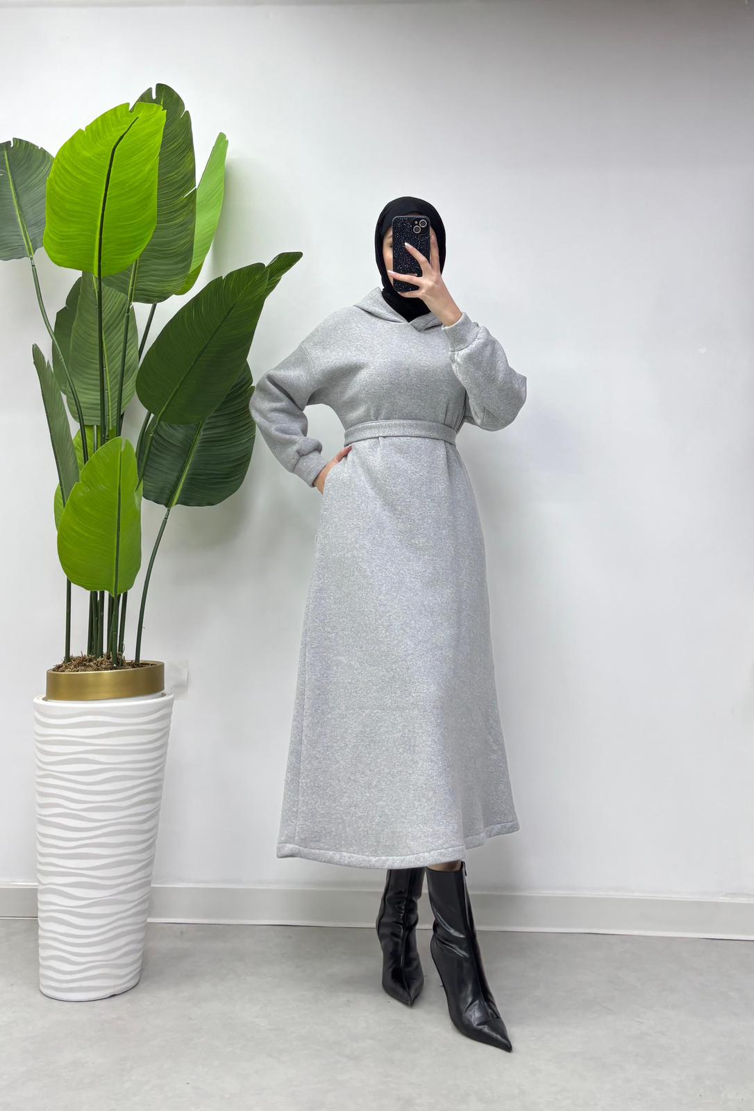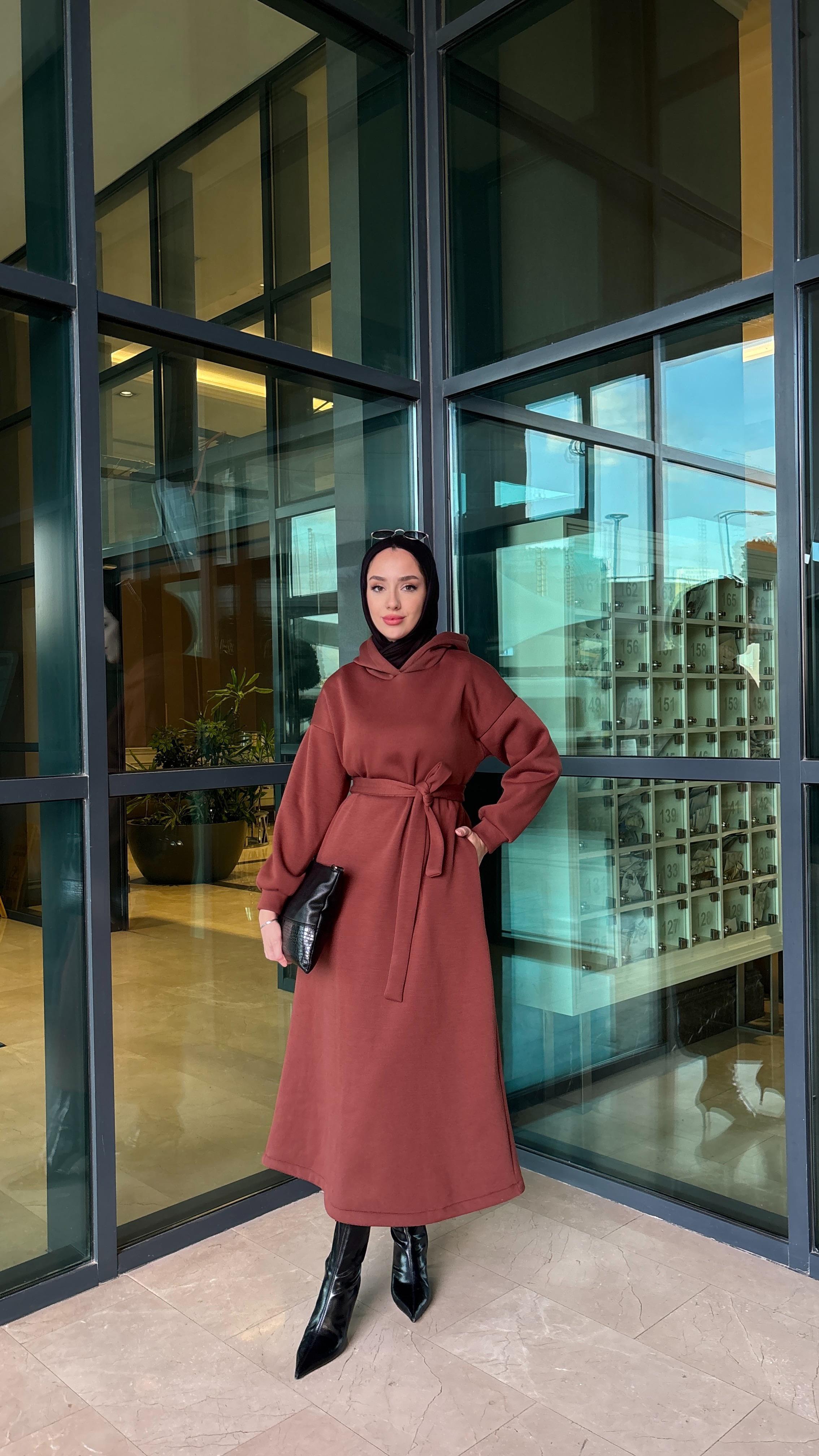 Ürünümüz birinci kalite üç iplik şardonlu kumaştan üretilmiştir. Kapşonludur. Ürün boyu 135cm’dir. 36/38/40/42/44 bedenleri mevcuttur. Seyyar kemerlidir. Ceplidir.Manken 170/60kg 38 beden tercih etmektedir.