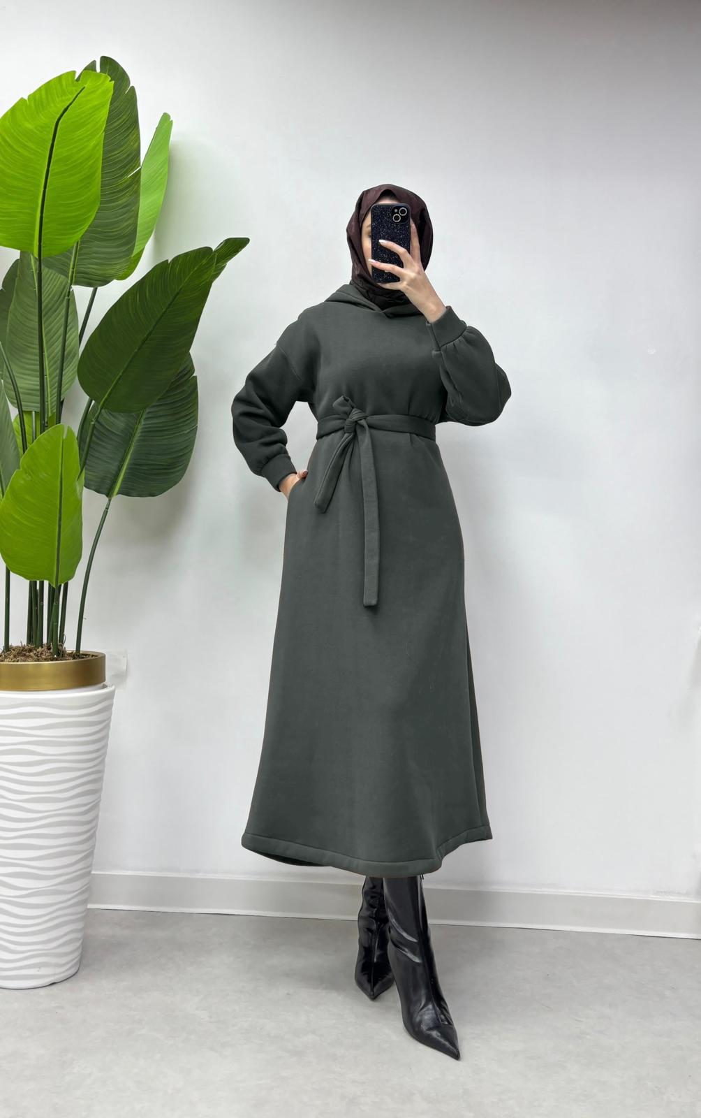 Ürünümüz birinci kalite üç iplik şardonlu kumaştan üretilmiştir. Kapşonludur. Ürün boyu 135cm’dir. 36/38/40/42/44 bedenleri mevcuttur. Seyyar kemerlidir. Ceplidir.Manken 170/60kg 38 beden tercih etmektedir.