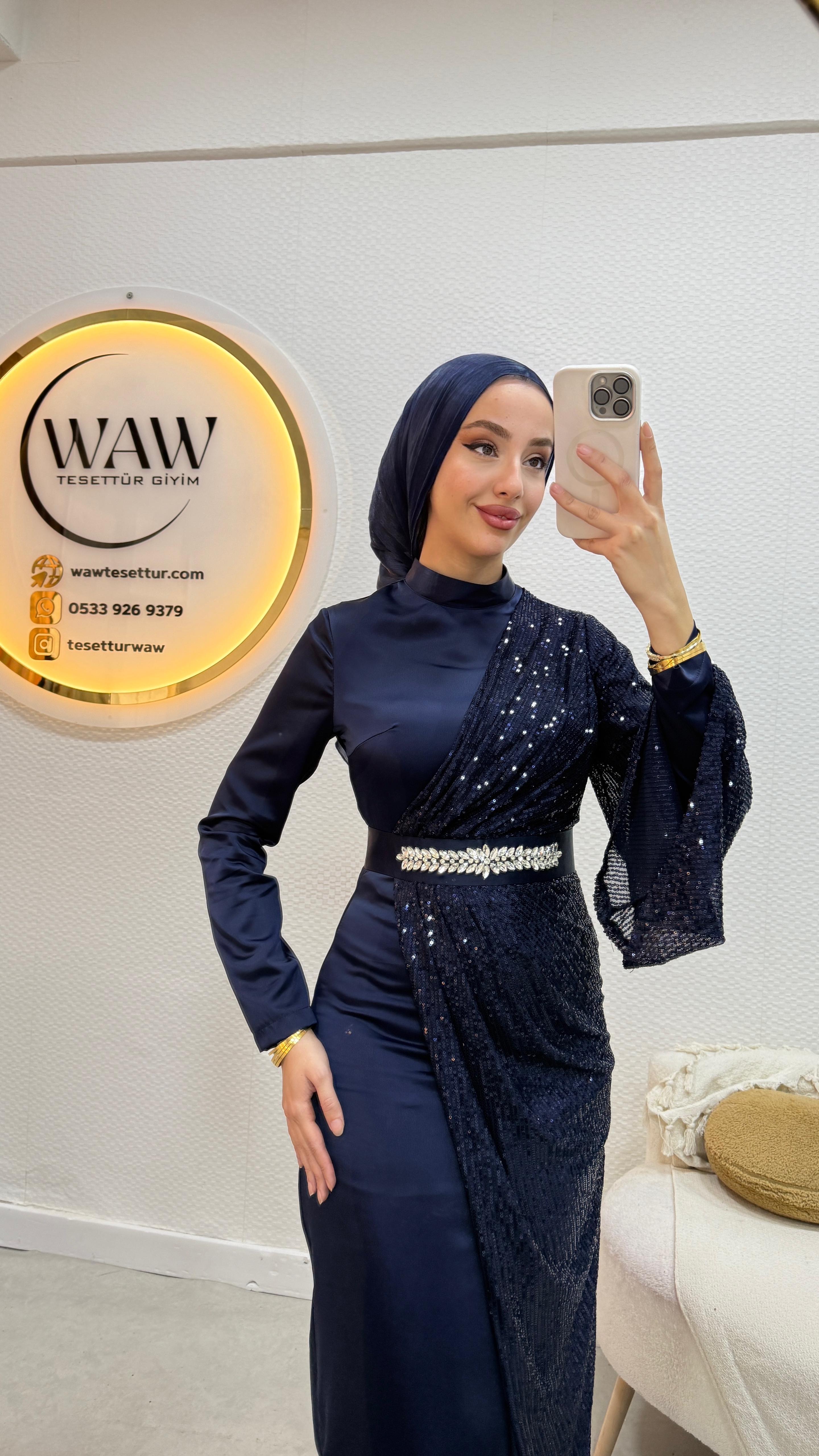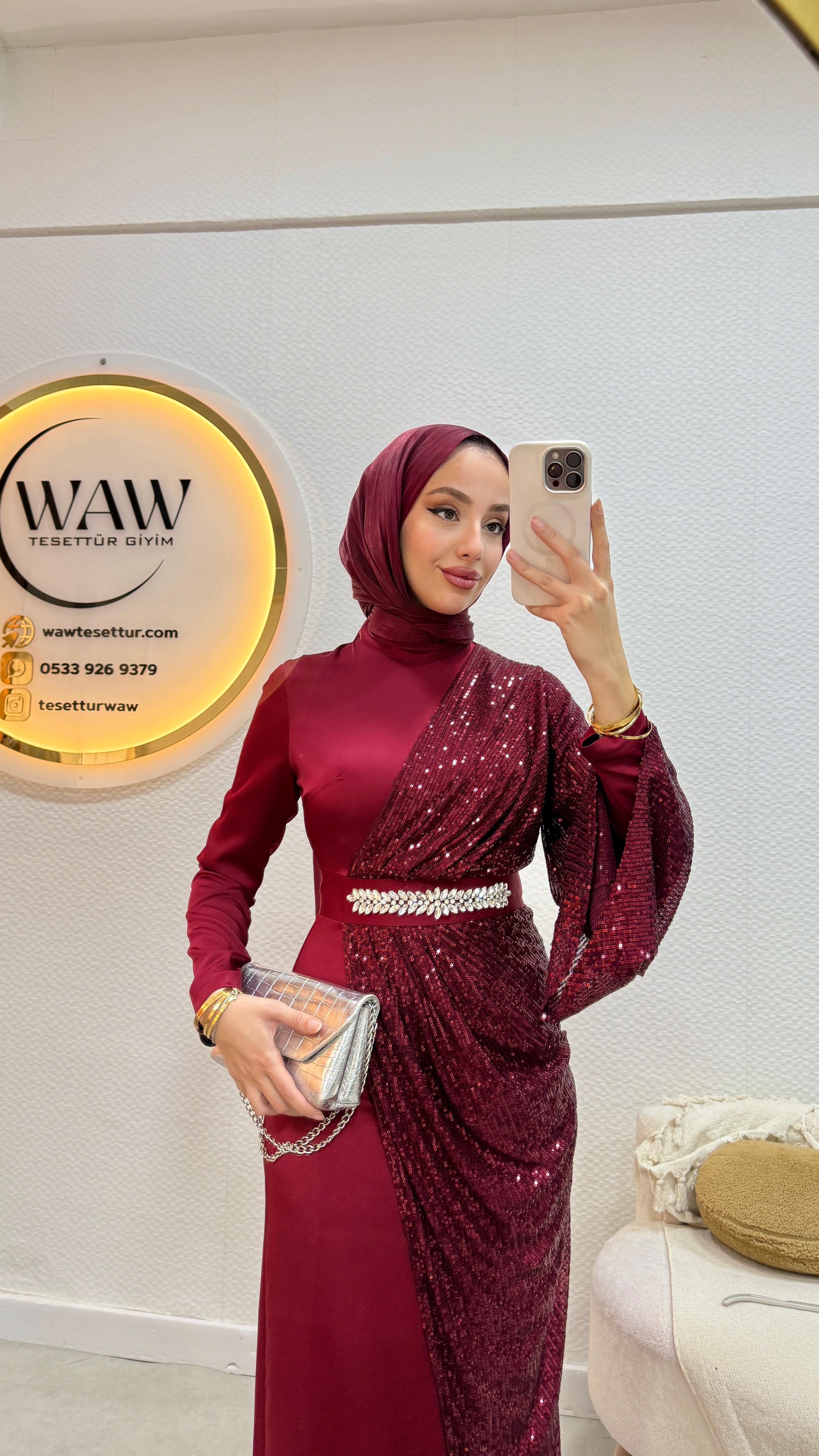 Bel kısmında taş detayları mevcuttur.