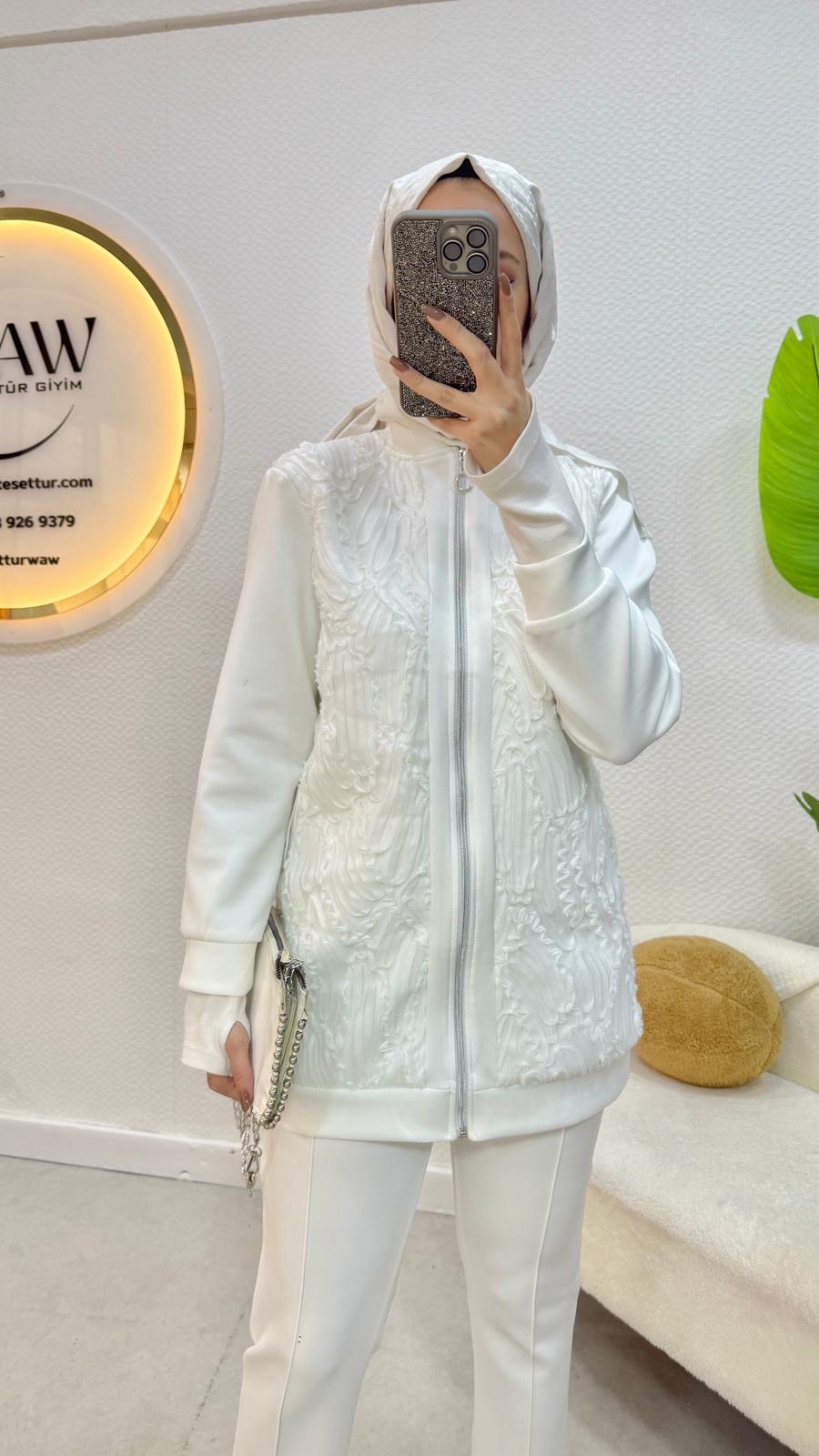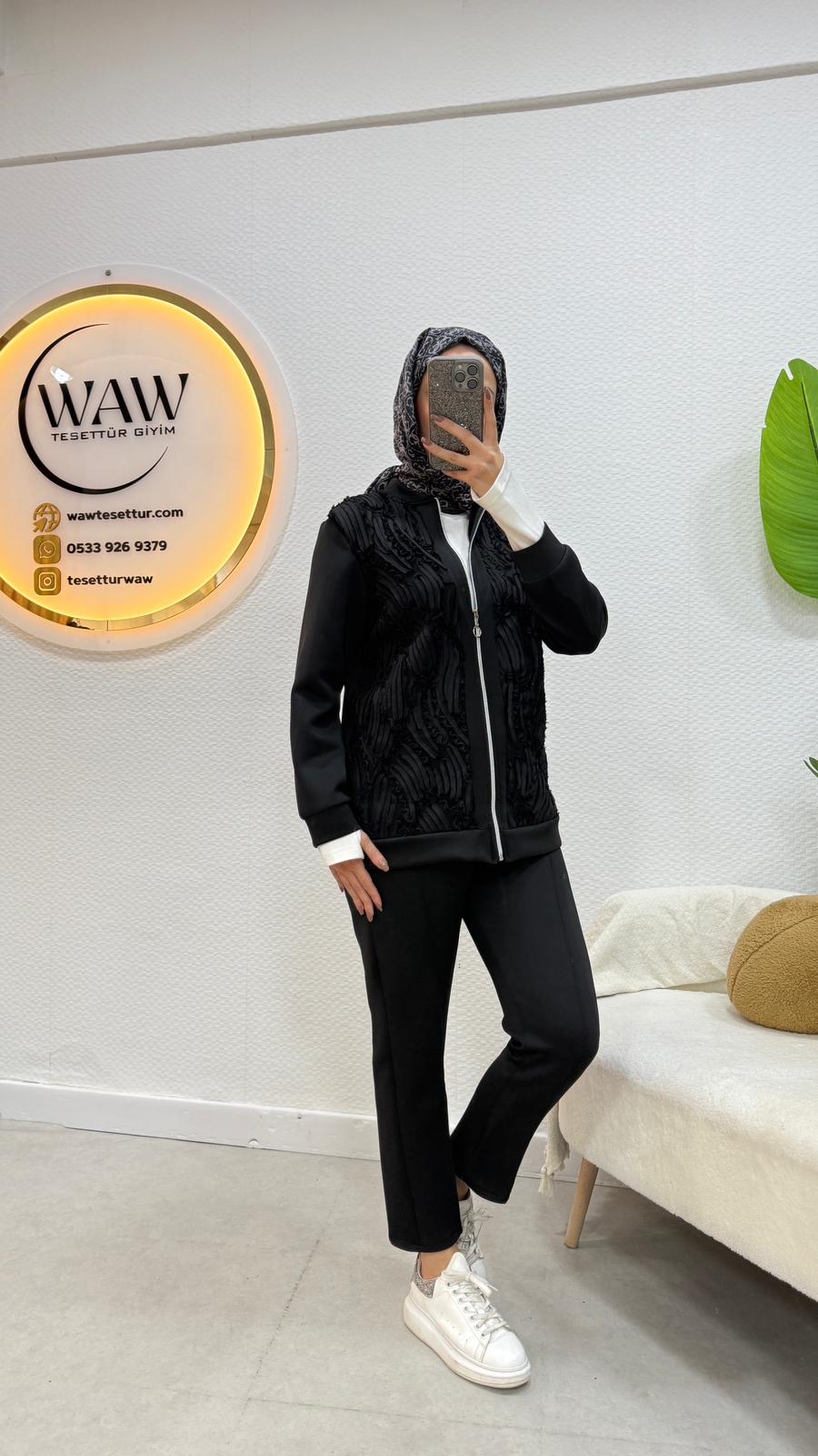Ürünümüz ithal scuba krep kumaştan üretilmiştir.