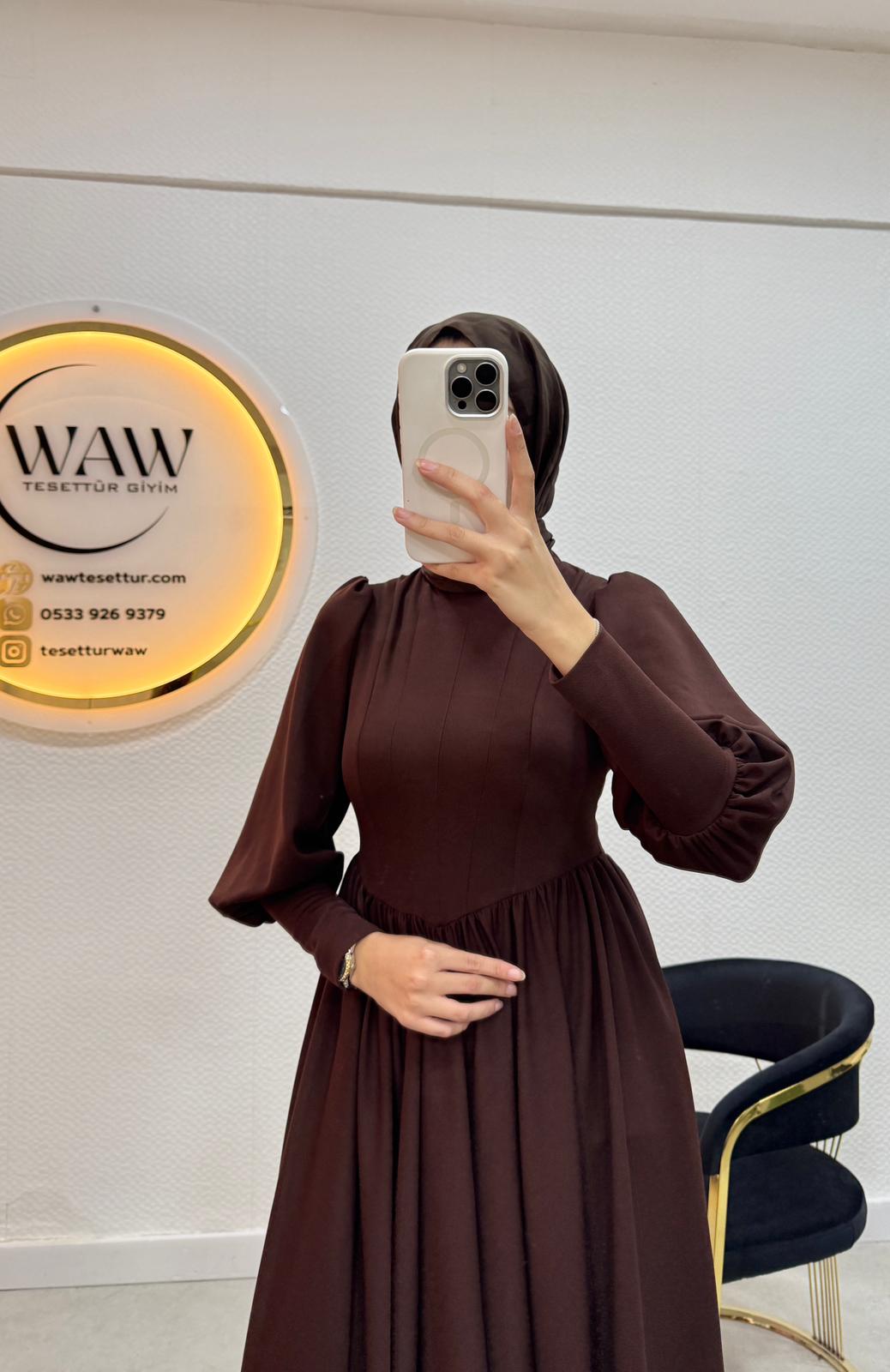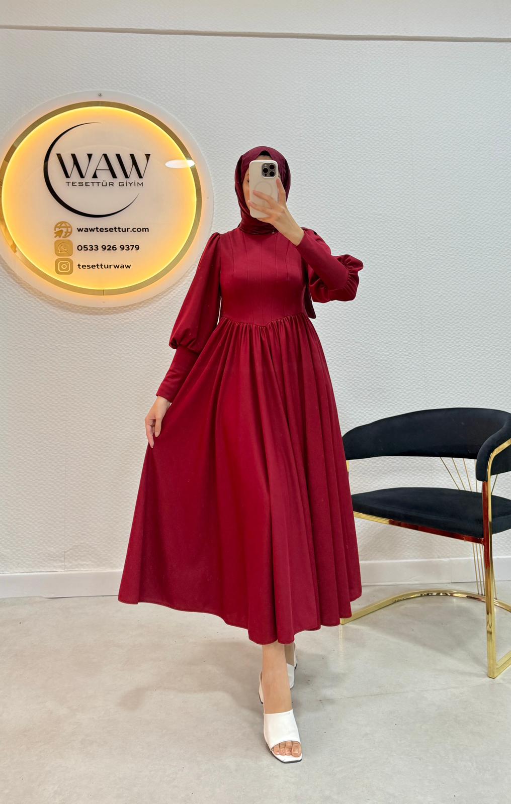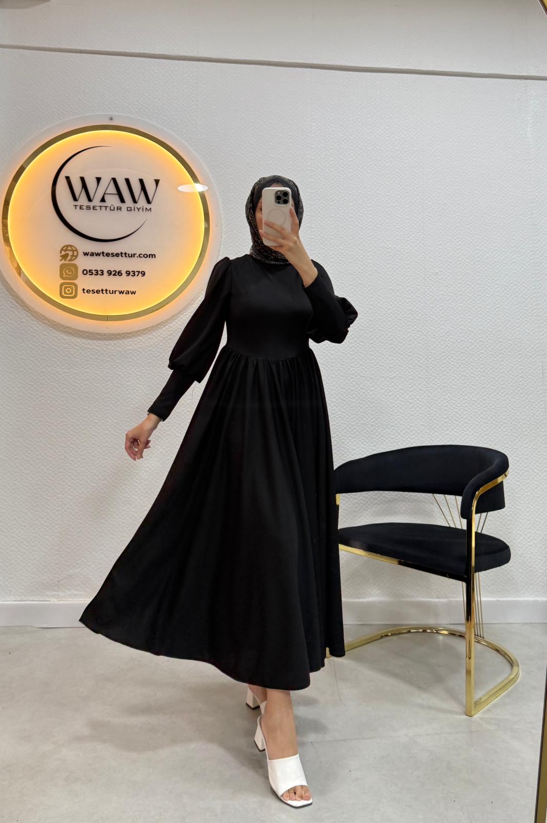 Zara krep kumaştan üretilmiştir.Hakim yakadır, arka orta gizli fermuarlıdır.Boyu 130 cm’dir.36/38/40/42/44 bedenlerimiz mevcuttur.Çekim mankenimiz 170/60kg 38 bedeni tercih etmektedir.