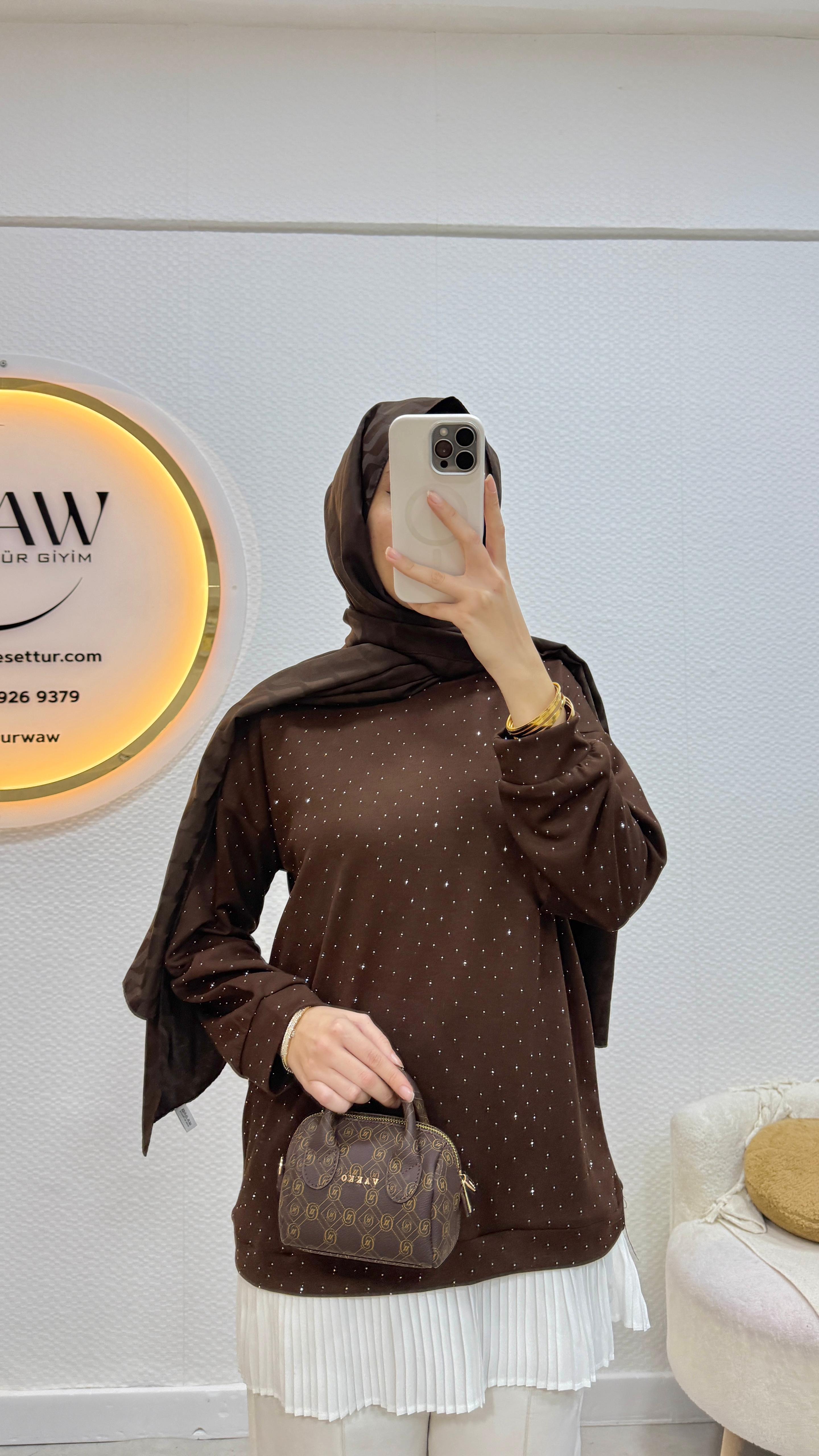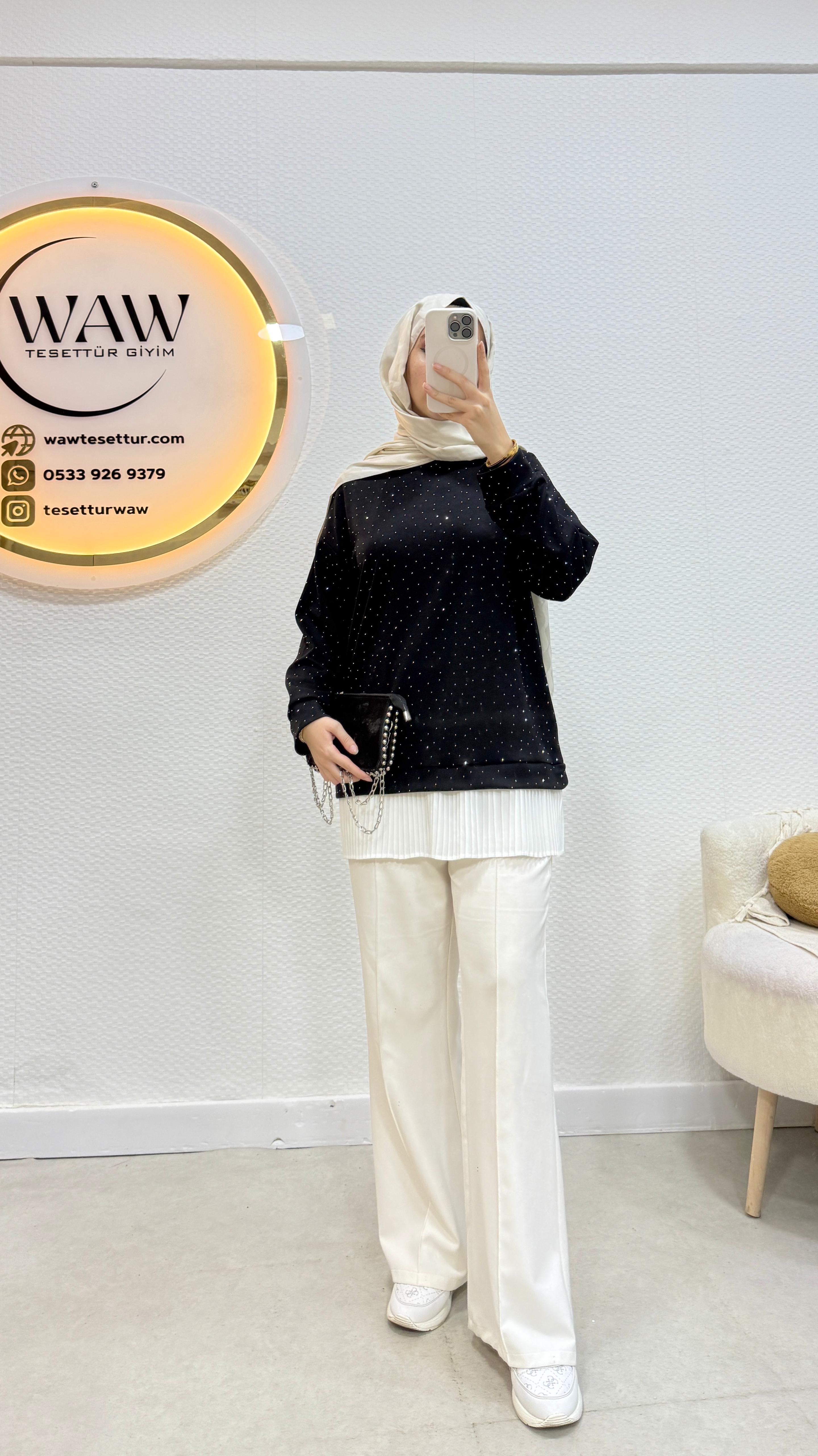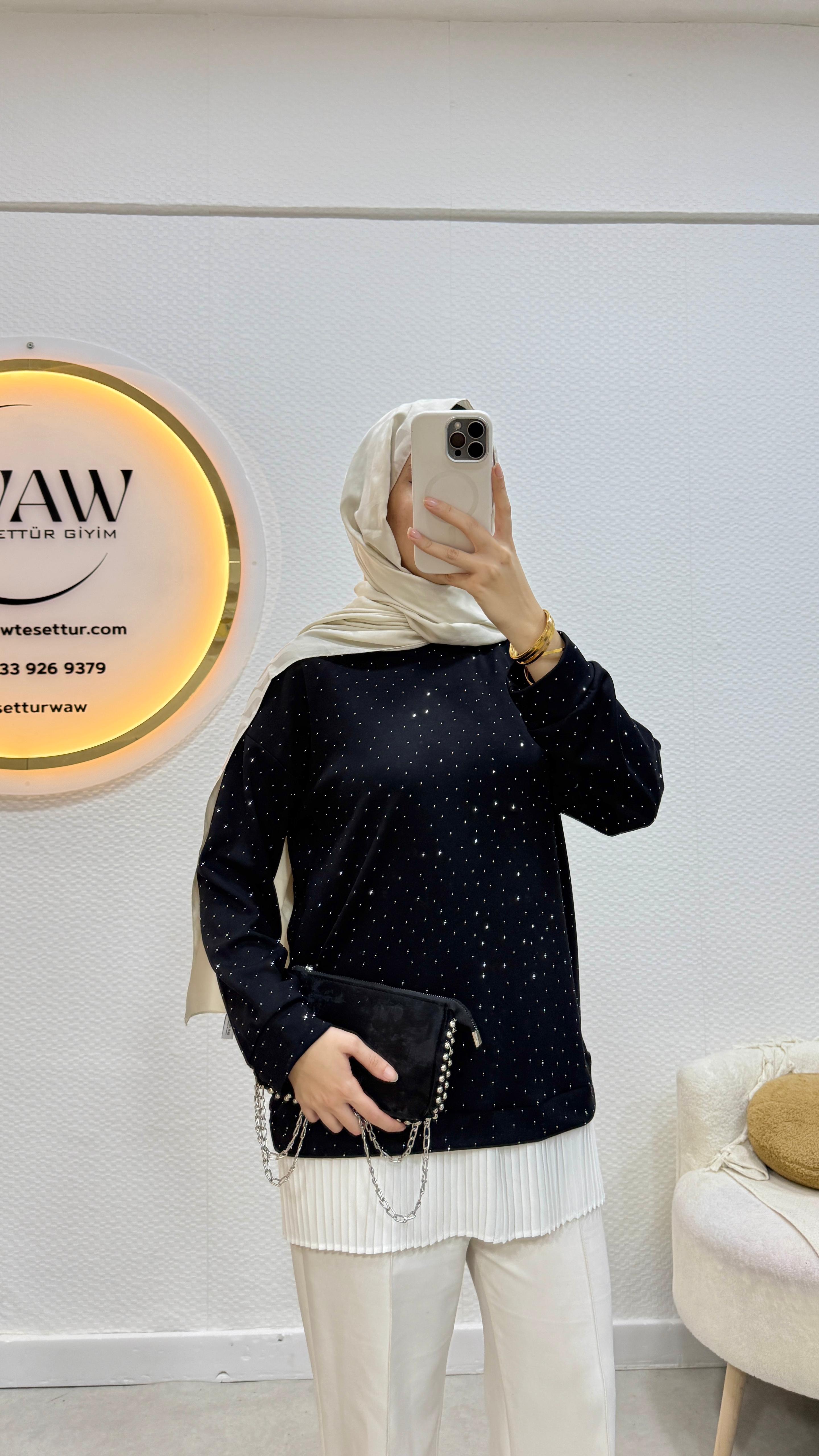 Altı Piliseli Taşlı Tunik Taş işlemeli oyso kumaştan üretilmiştir. Pilise detaylıdır. Bisiklet yakadır. Eşofman/etek/pantolon üstü kullanıma uygundur. 36/38/40/42/44 bedenler mevcuttur. Manken 170/60kg 38 giymektedir.
