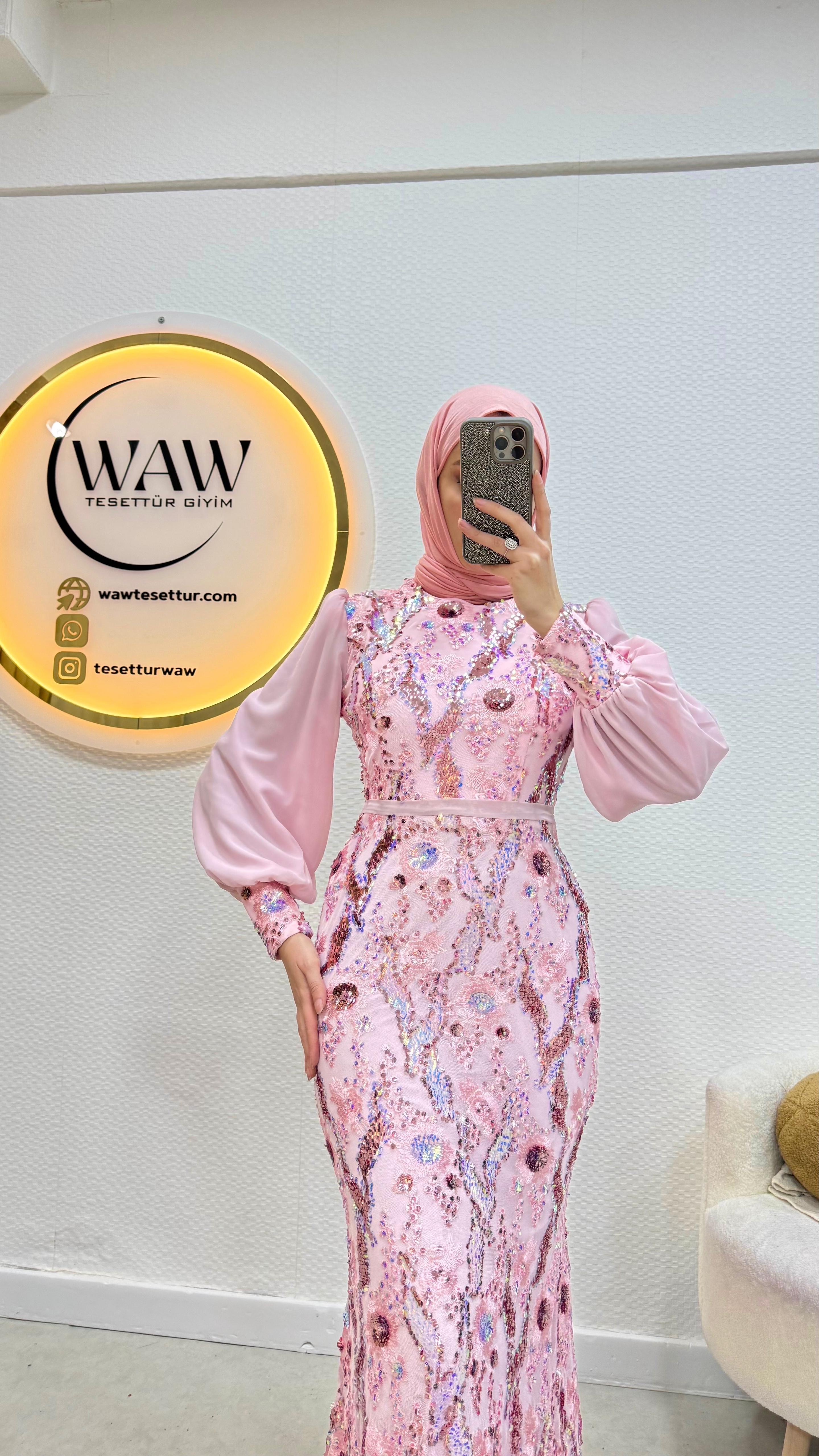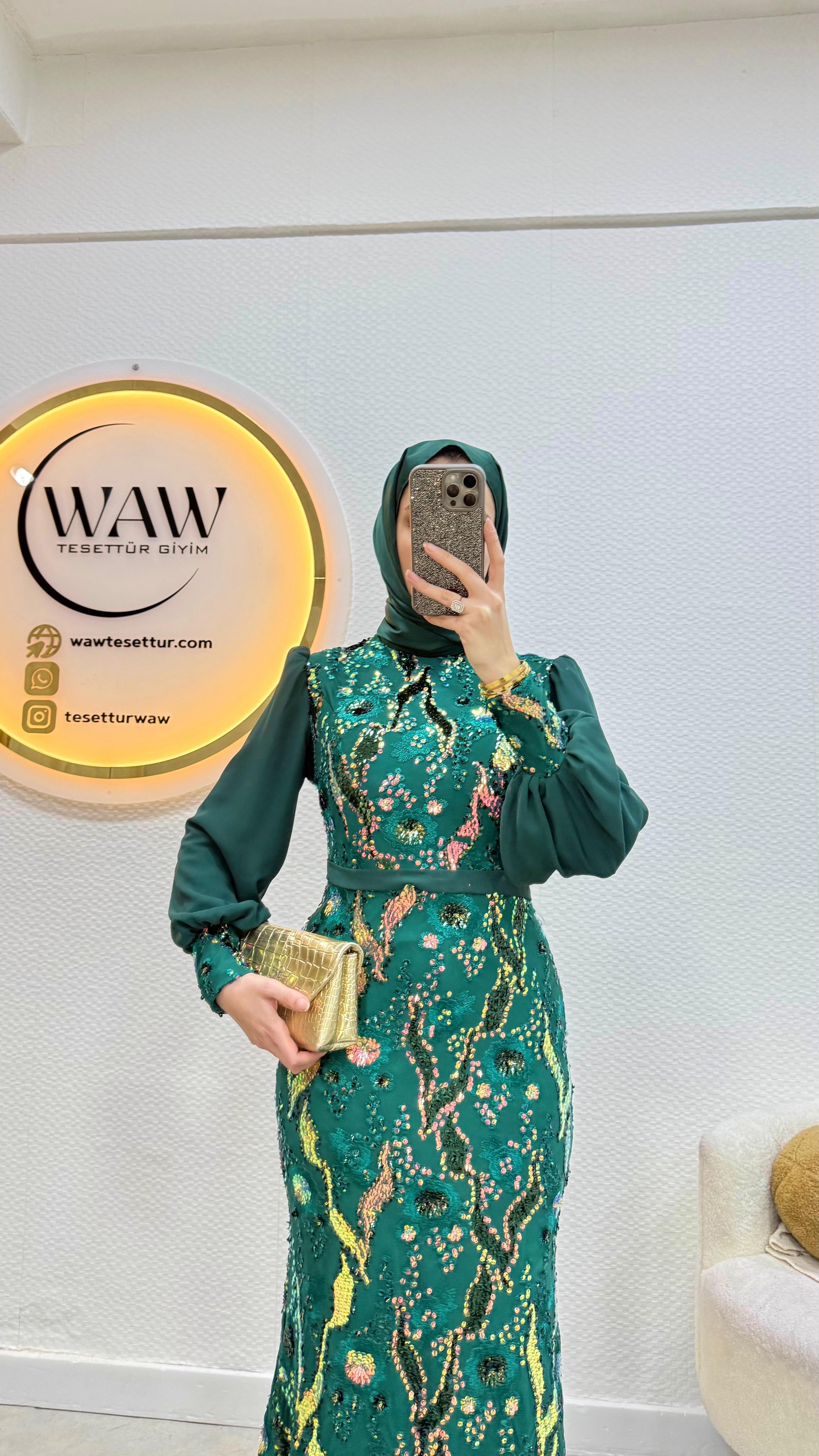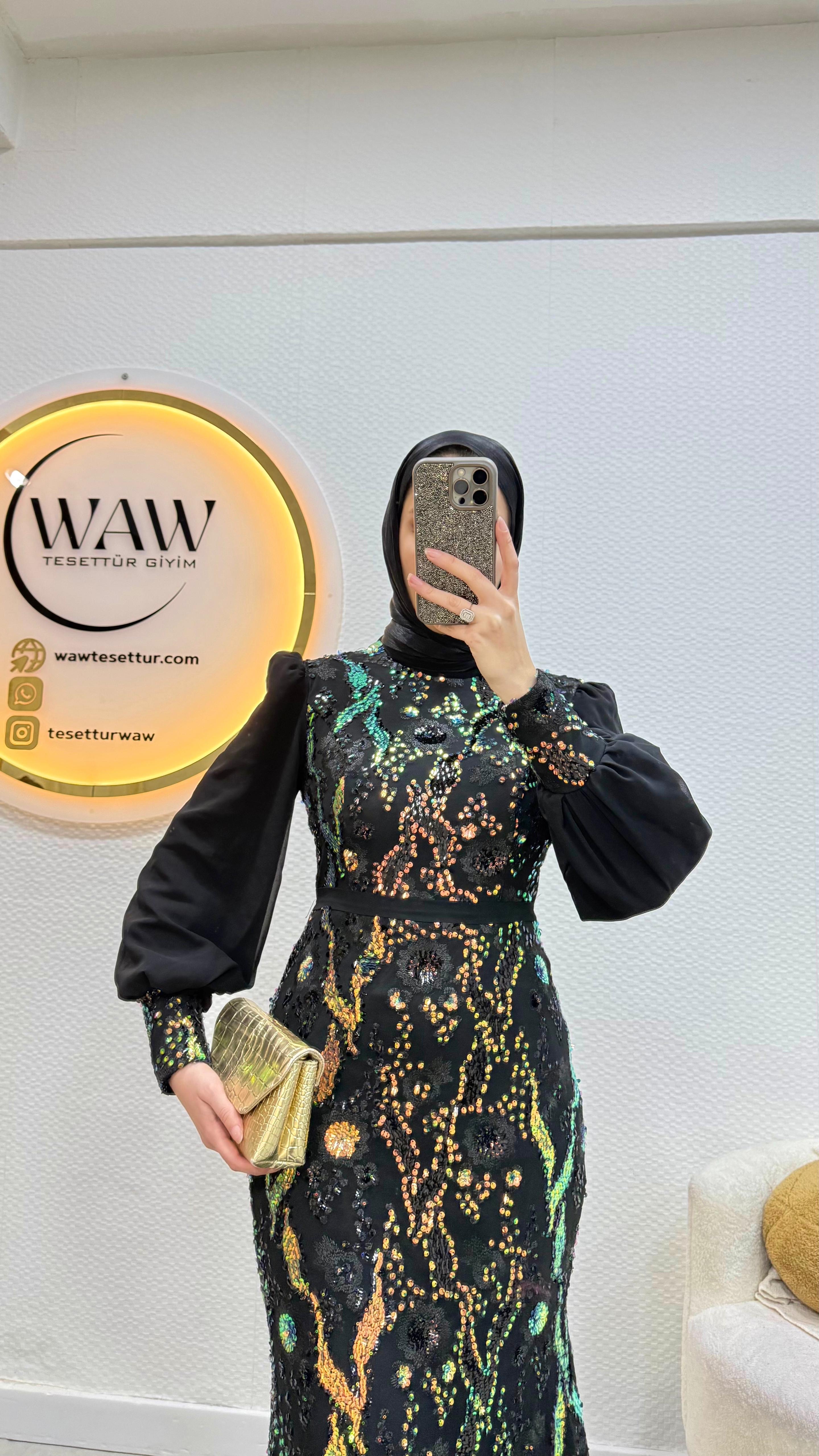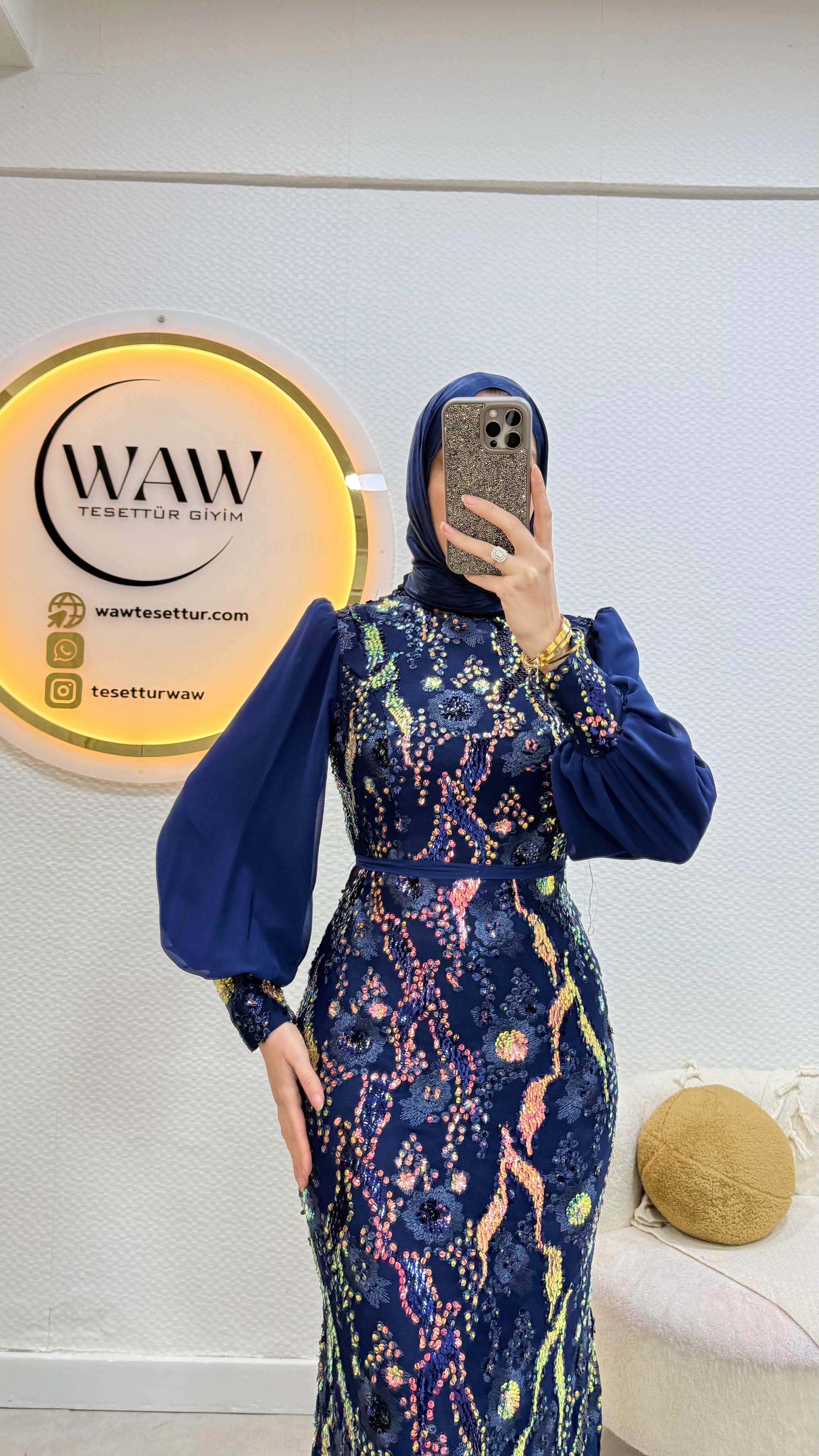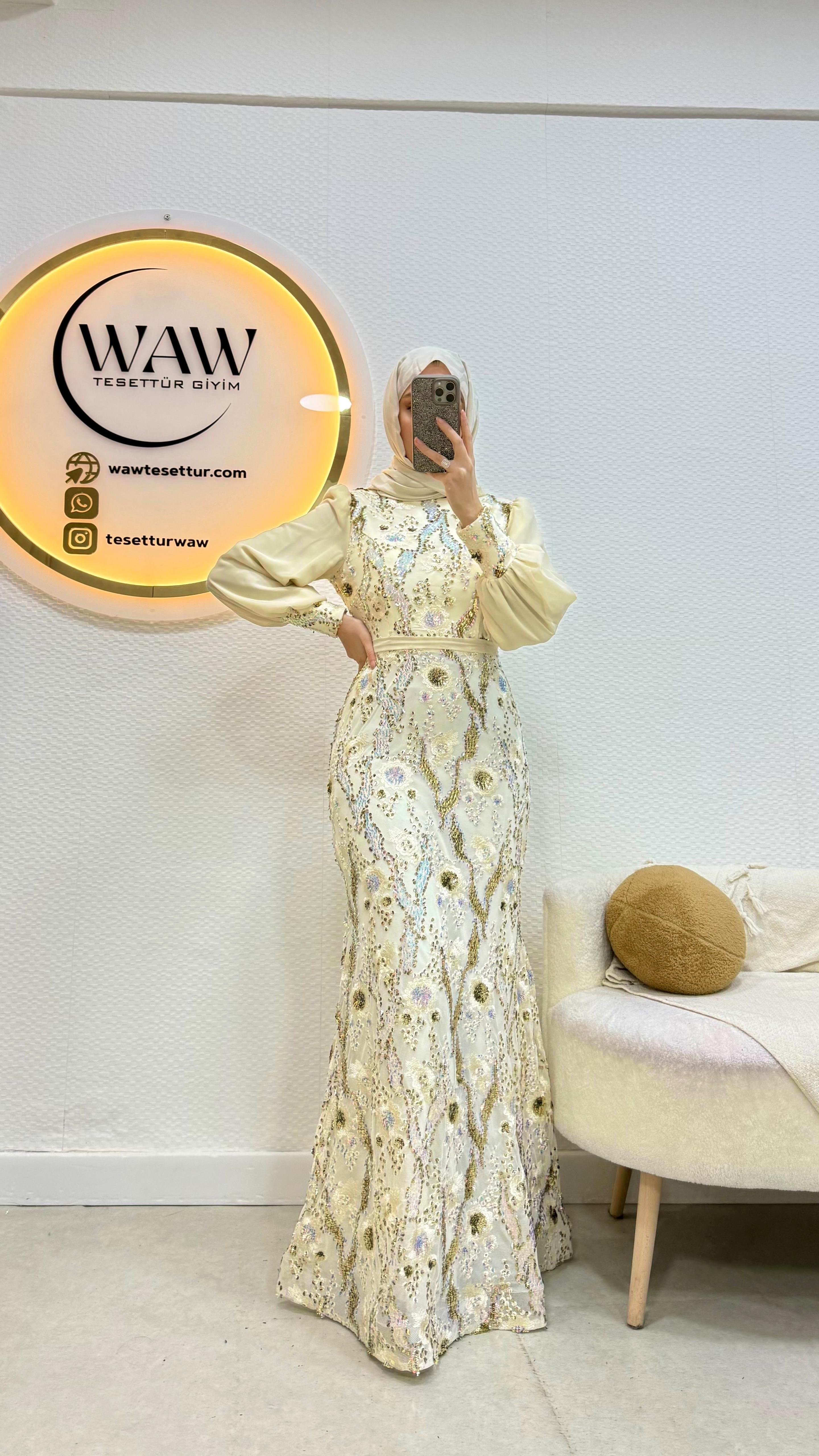 Asmina Abiye Ürünümüz çiçek desenli payet kumaştan üretilmiştir. Arka orta gizli fermuarlıdır. Balık modeldir. Göğüs kabı mevcuttur. Sıfır yakadır. Ürün boyu 145cm’dir. Ürünümüz tam kalıptır. 40/42/44/46/48 bedenlerimiz mevcuttur. Çekim mankenimiz 170/60kg 38 bedeni tercih etmektedir.