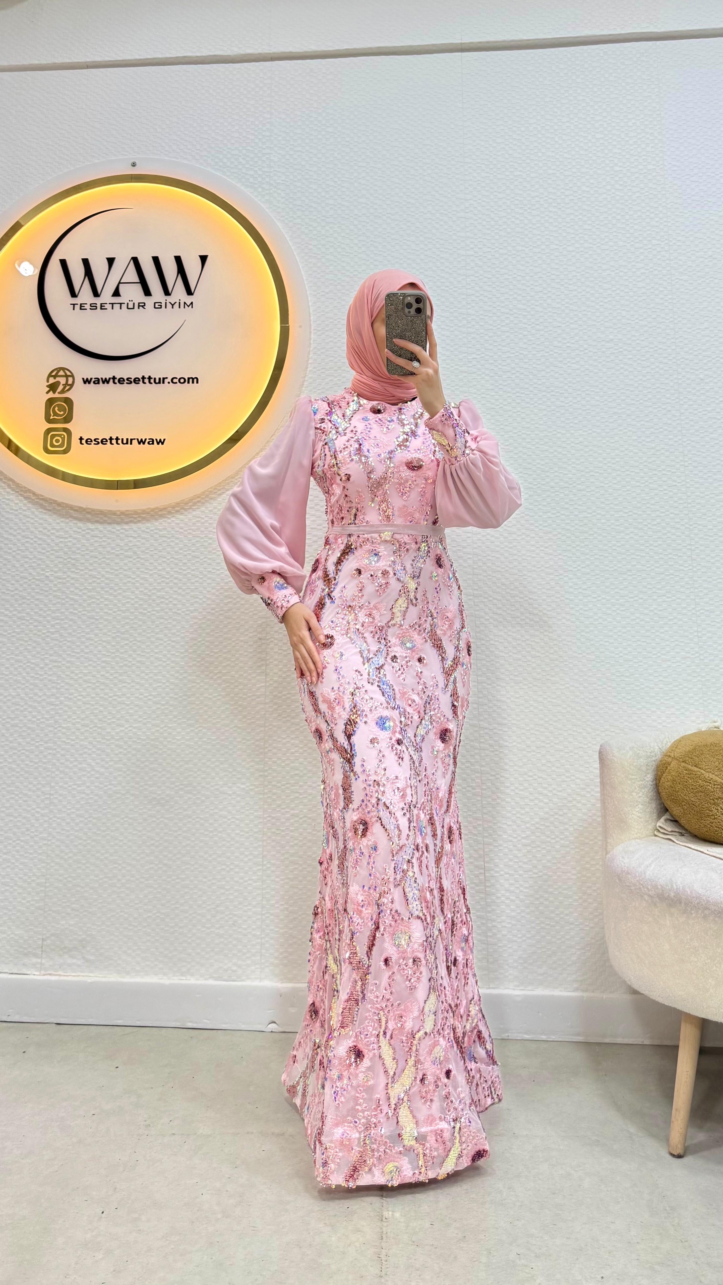 Ürünümüz çiçek desenli payet kumaştan üretilmiştir.