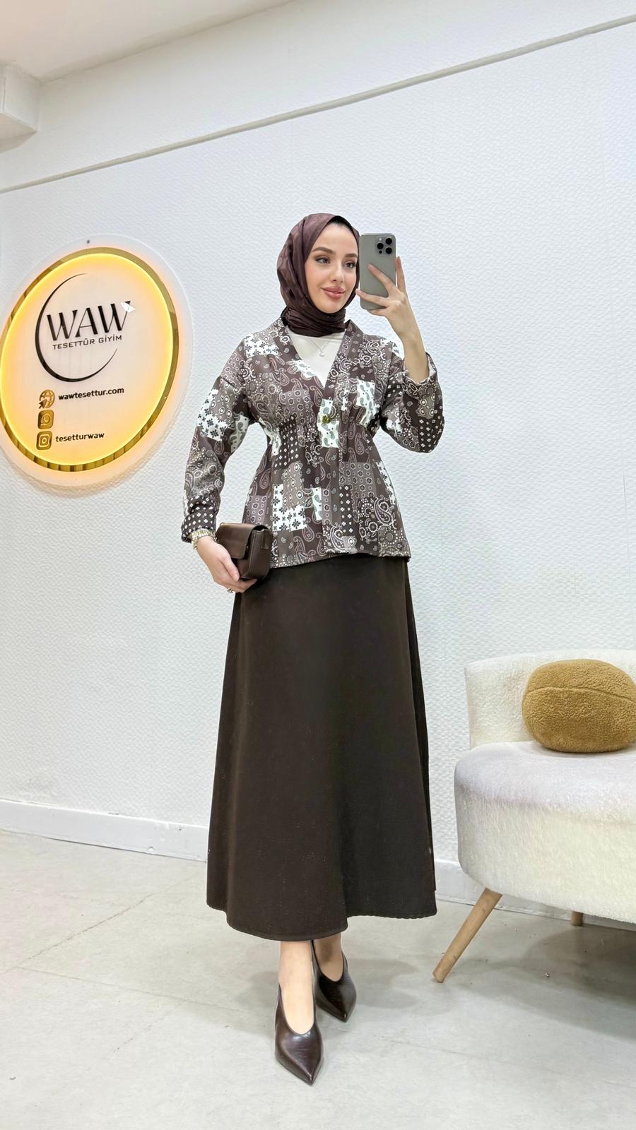 Dabıl Hürrem kumaştan üretilmiştir Önü düğmelidir Beli lastiklidir Üst boy … Alt boy …Kalıp tam Bedenler S/M/L/Xl Çekim mankeni 170/60kg 38 beden tercih etmektedir