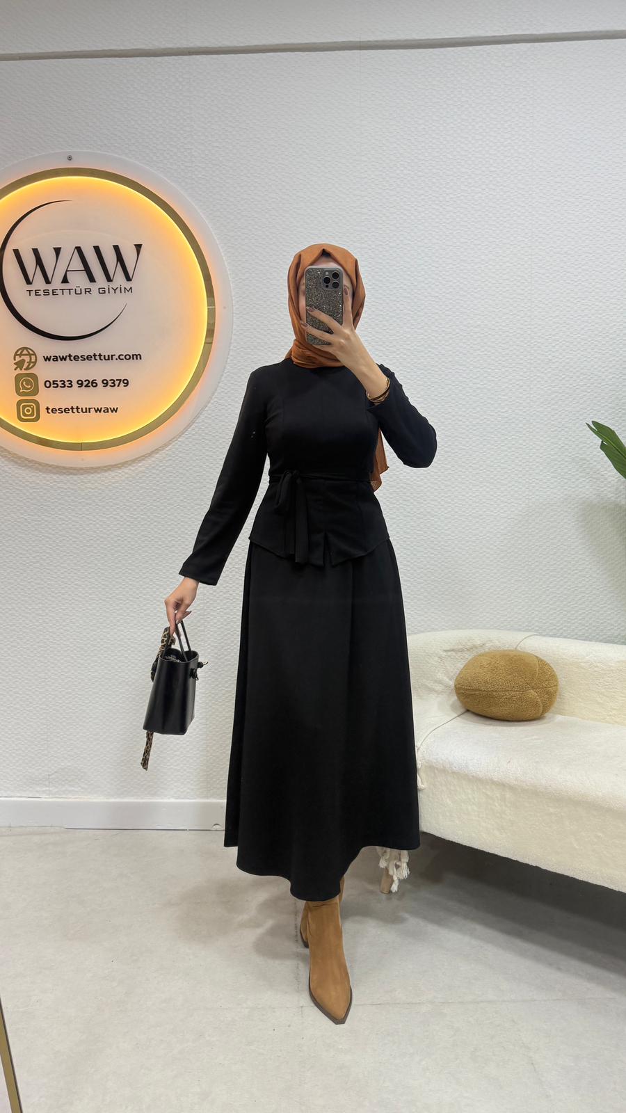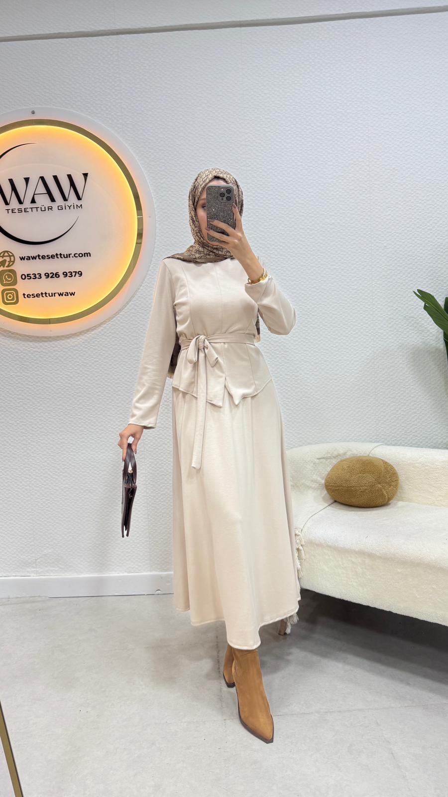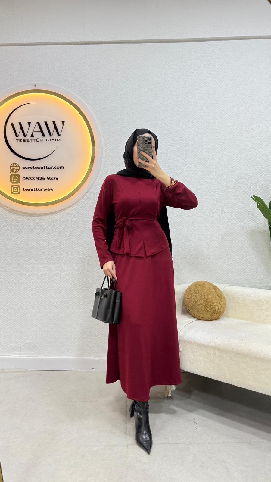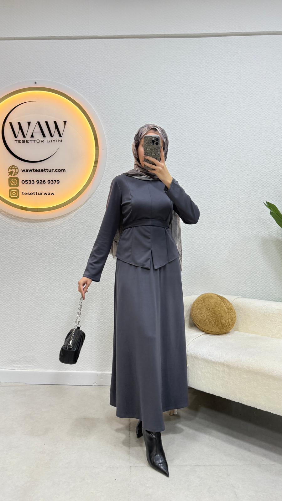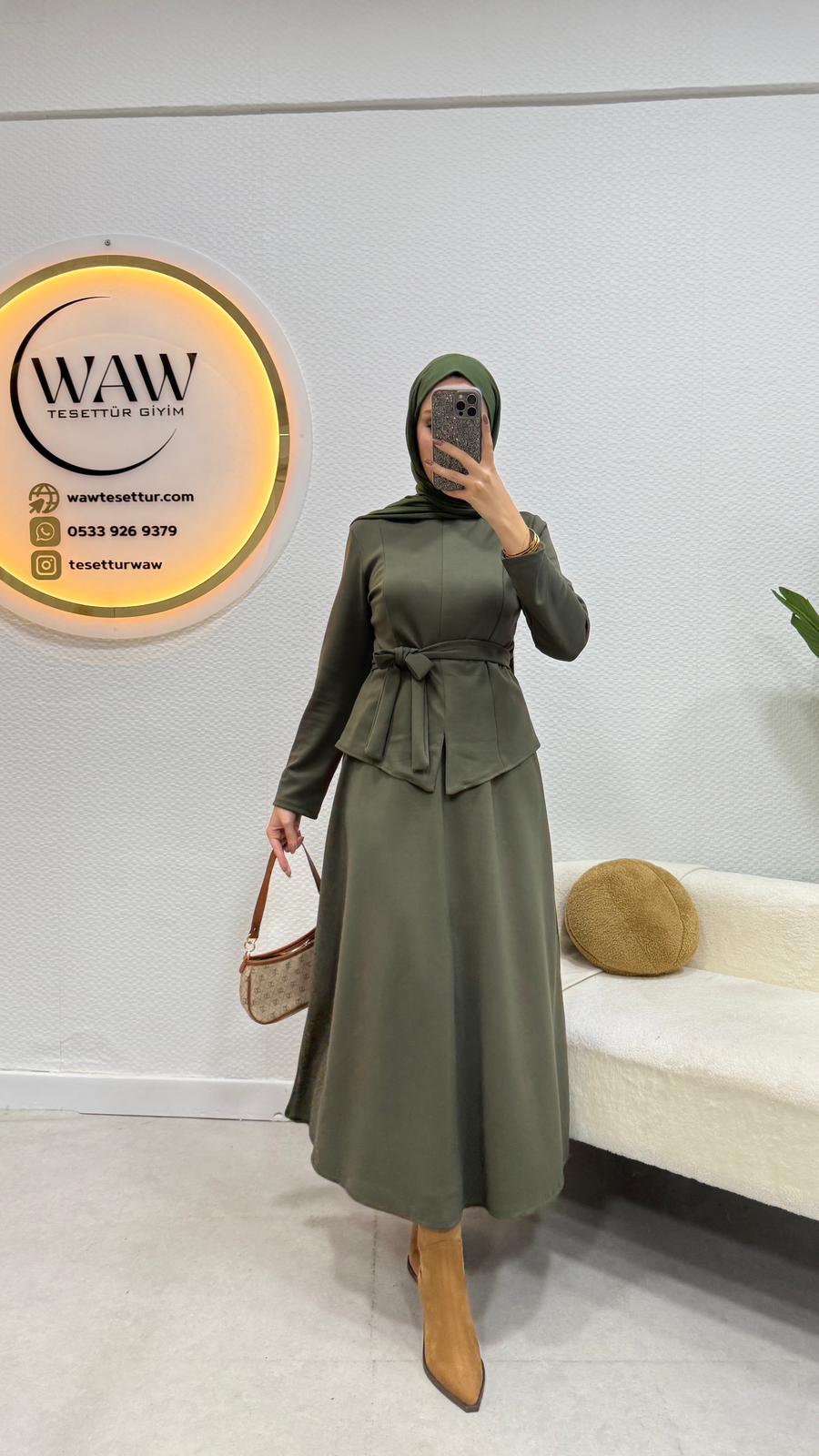 1.kalite oyso kumaştan üretilmiştir.36/38/40/42/44 bedenler mevcuttur.Etek- Bluz takım şeklindedir.Seyyar kemerlidir.Manken 170/60kg 38 beden tercih etmektedir