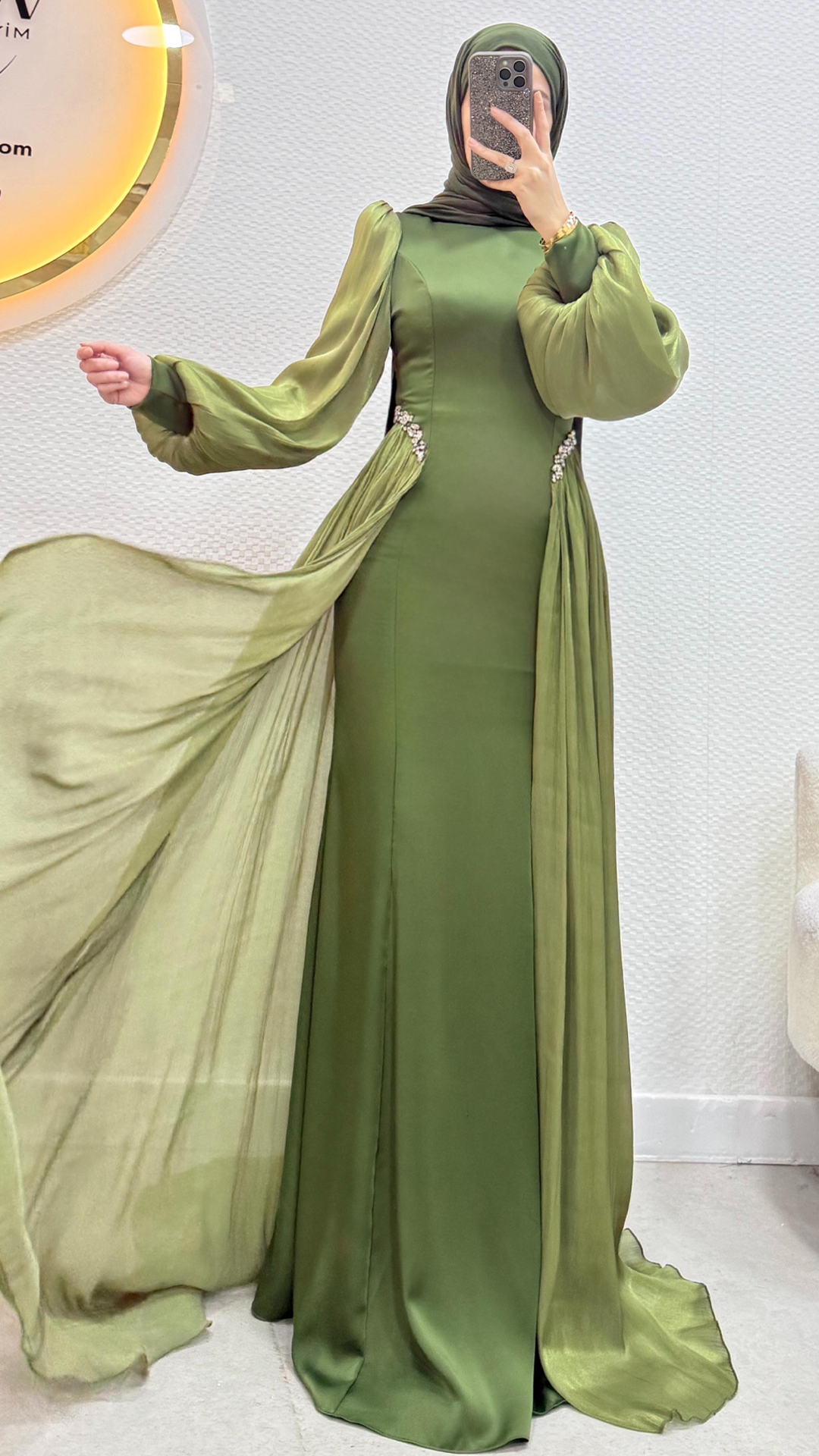 Gelince Haber VerÜrünümüz birinci kalite saten kumaştan üretilmiştir. Kuyruk ve kol sofya kumaştır. 36/38/40/42/44 bedenler mevcuttur. Arka orta gizli fermuarlıdır. Taş işlemelidir. Ürün boyu 160cm’dir. Kalem formdadır. Manken 170/60kg 38 giymektedir.