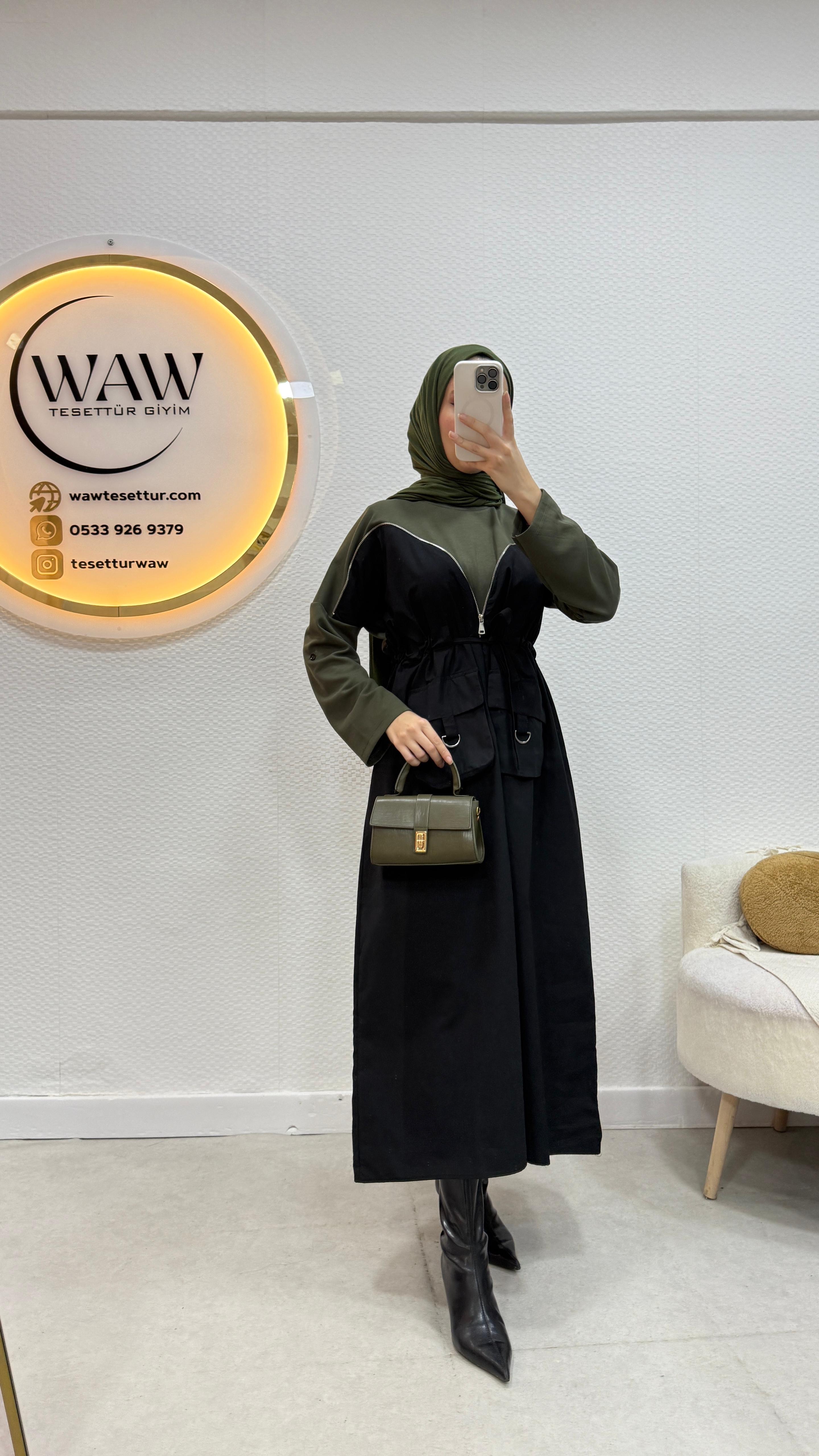 Birinci kalite poplin kumaştan üretilmiştir.Beli ayarlanabilir bağlama detaylıdır. Cepleri mevcuttur. Bisiklet yakadır. Standart bedendir. (36/44 uyumludur.) Çekim mankeni 170/60kg’dır.