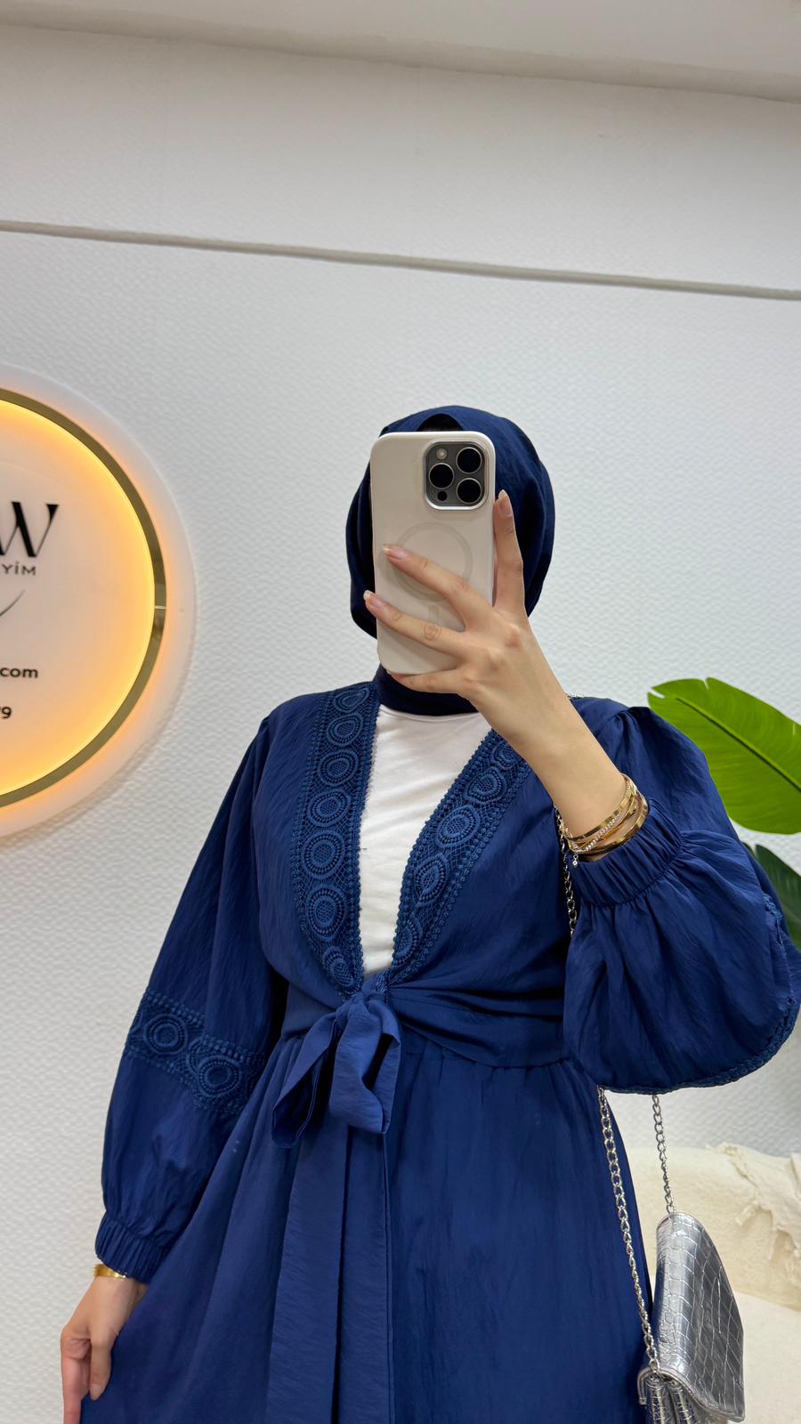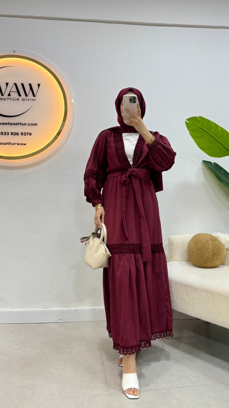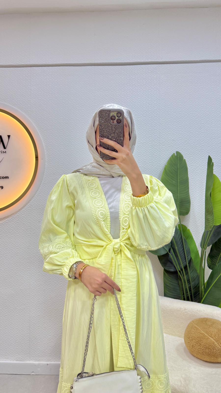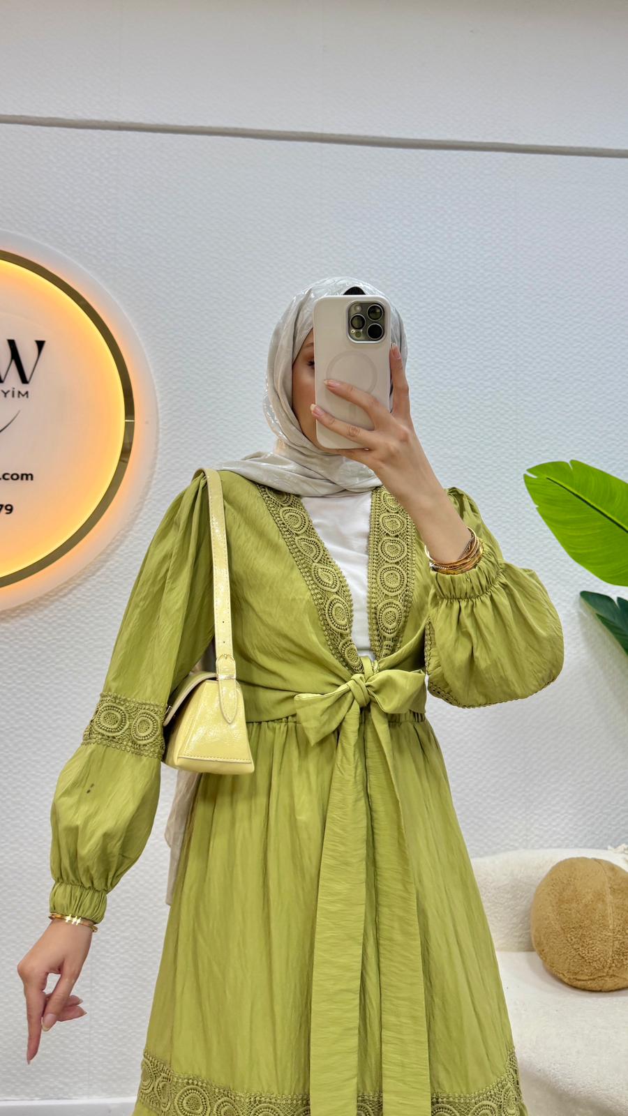 Eteğinde, kolunda, ve yakasında çiçek desenleri vardır.