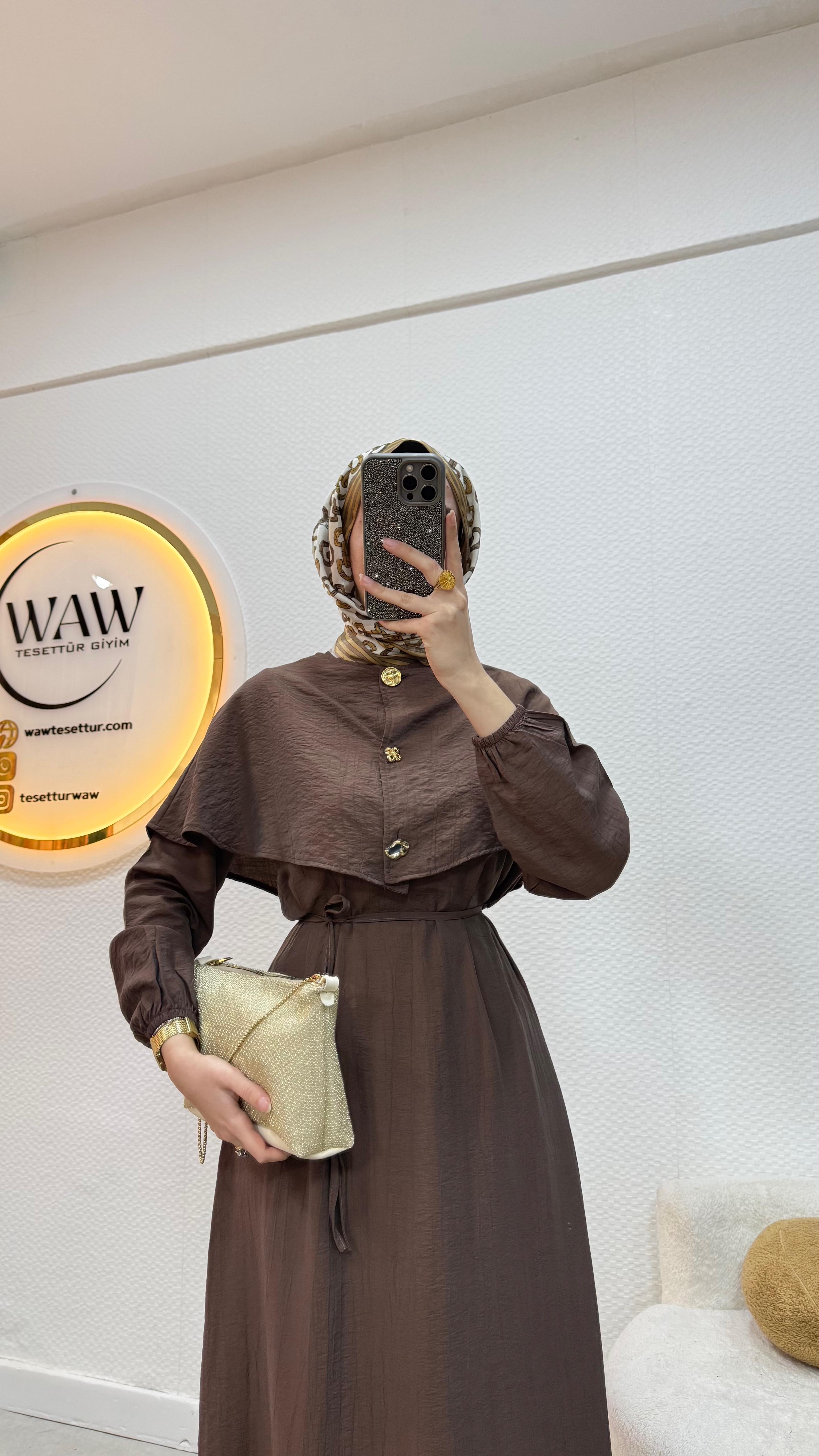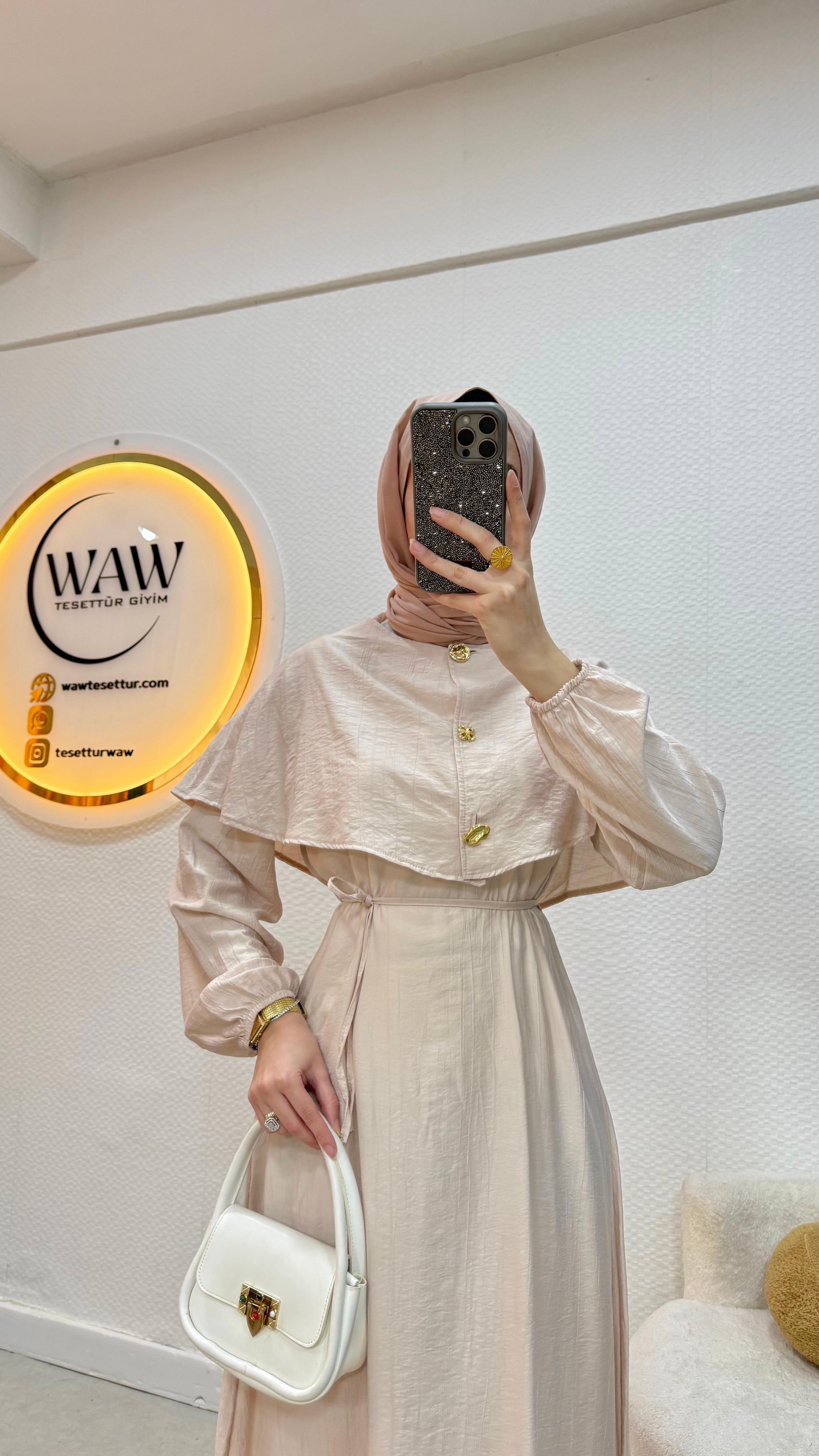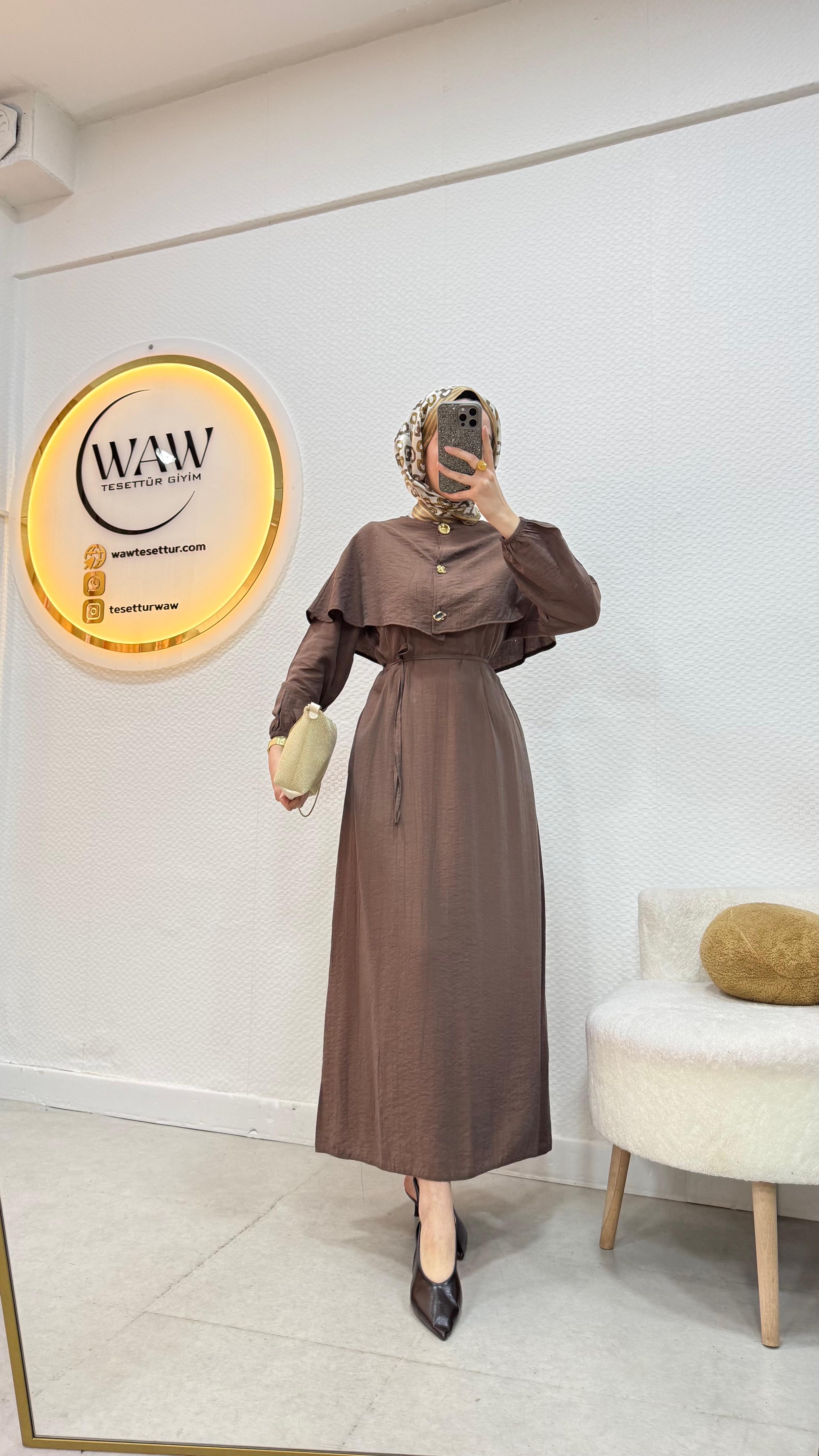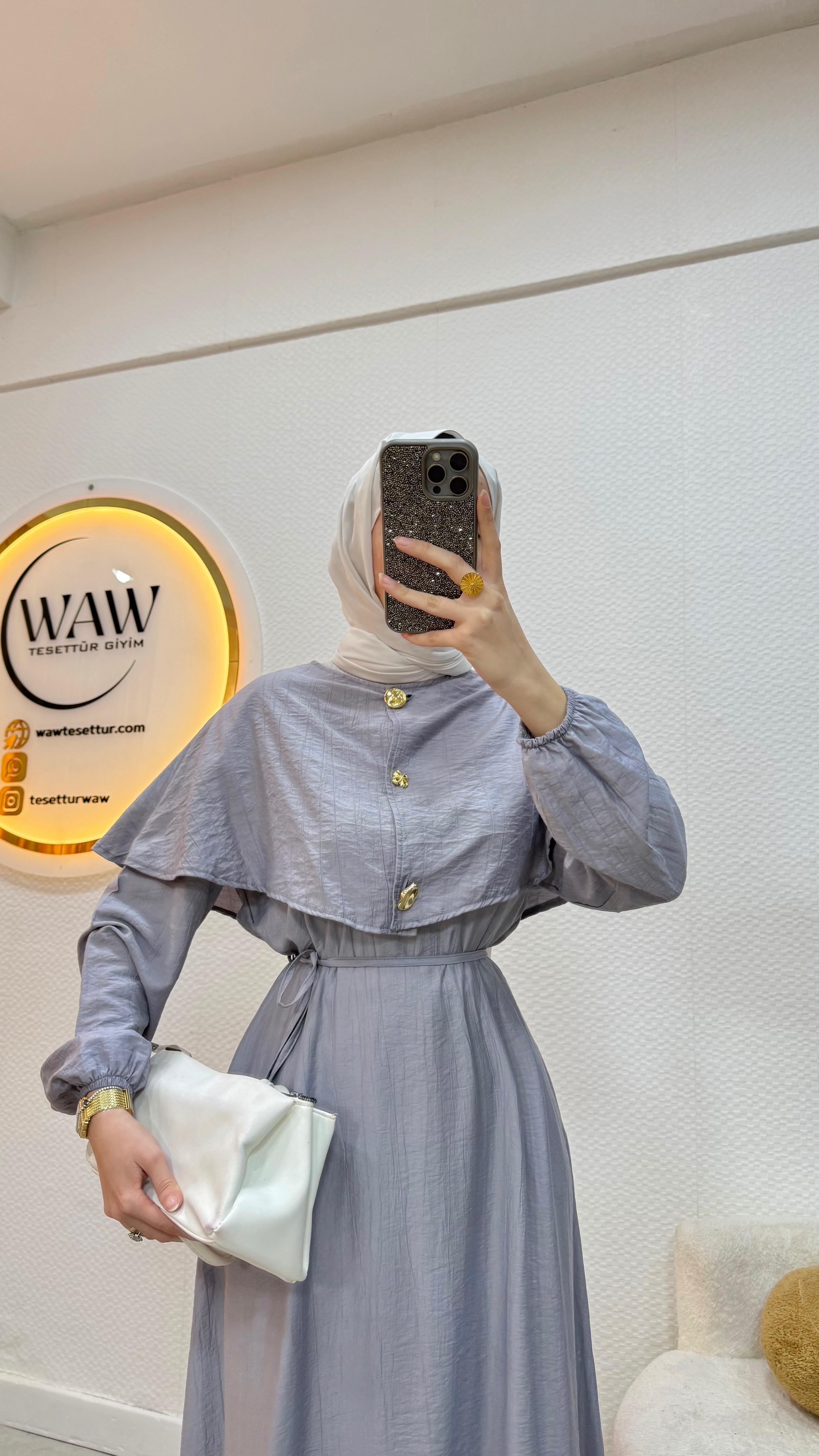 Üst kısmı pelerinli ve düğme detaylıdır. Manşet lastiklidir.