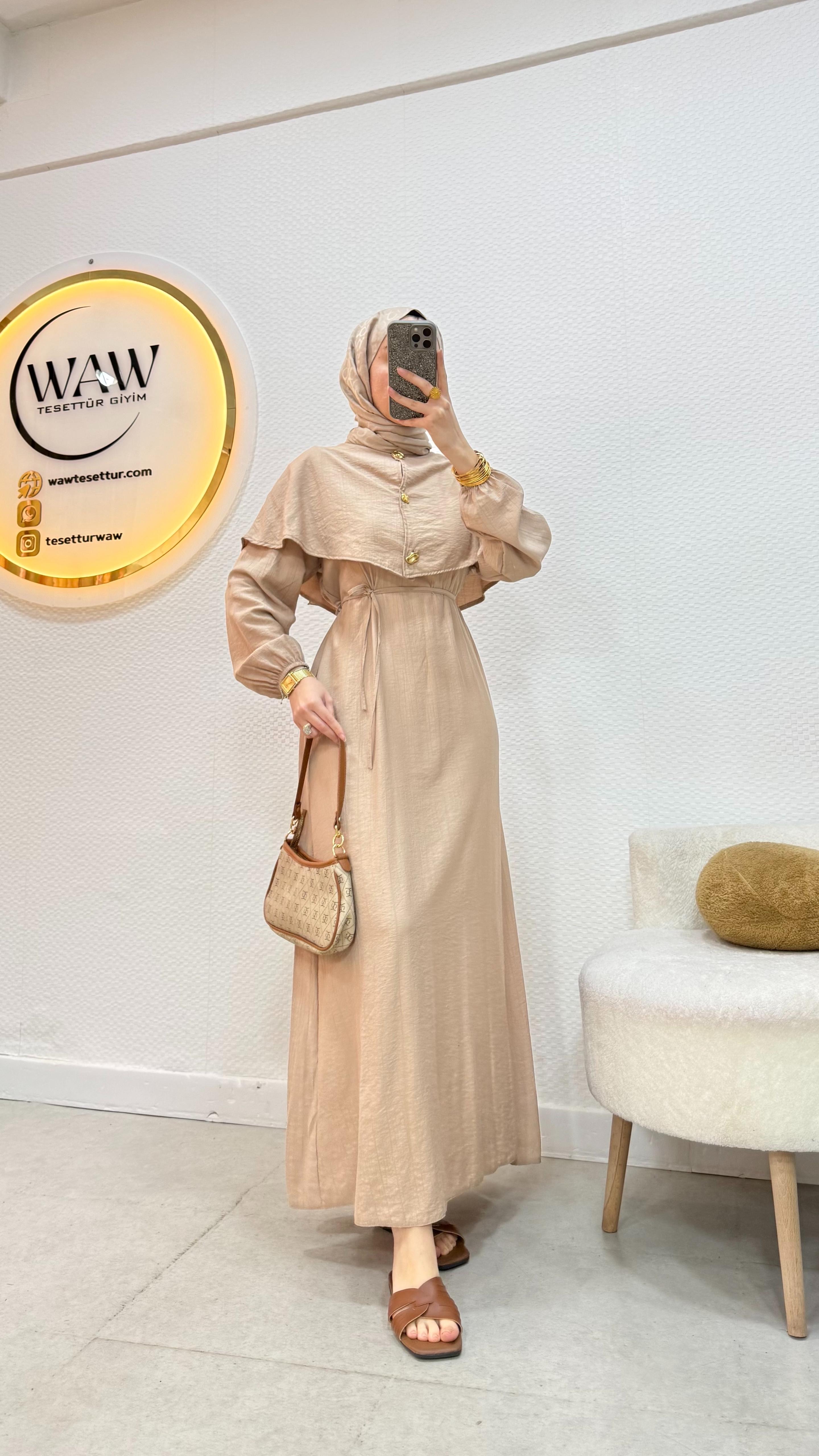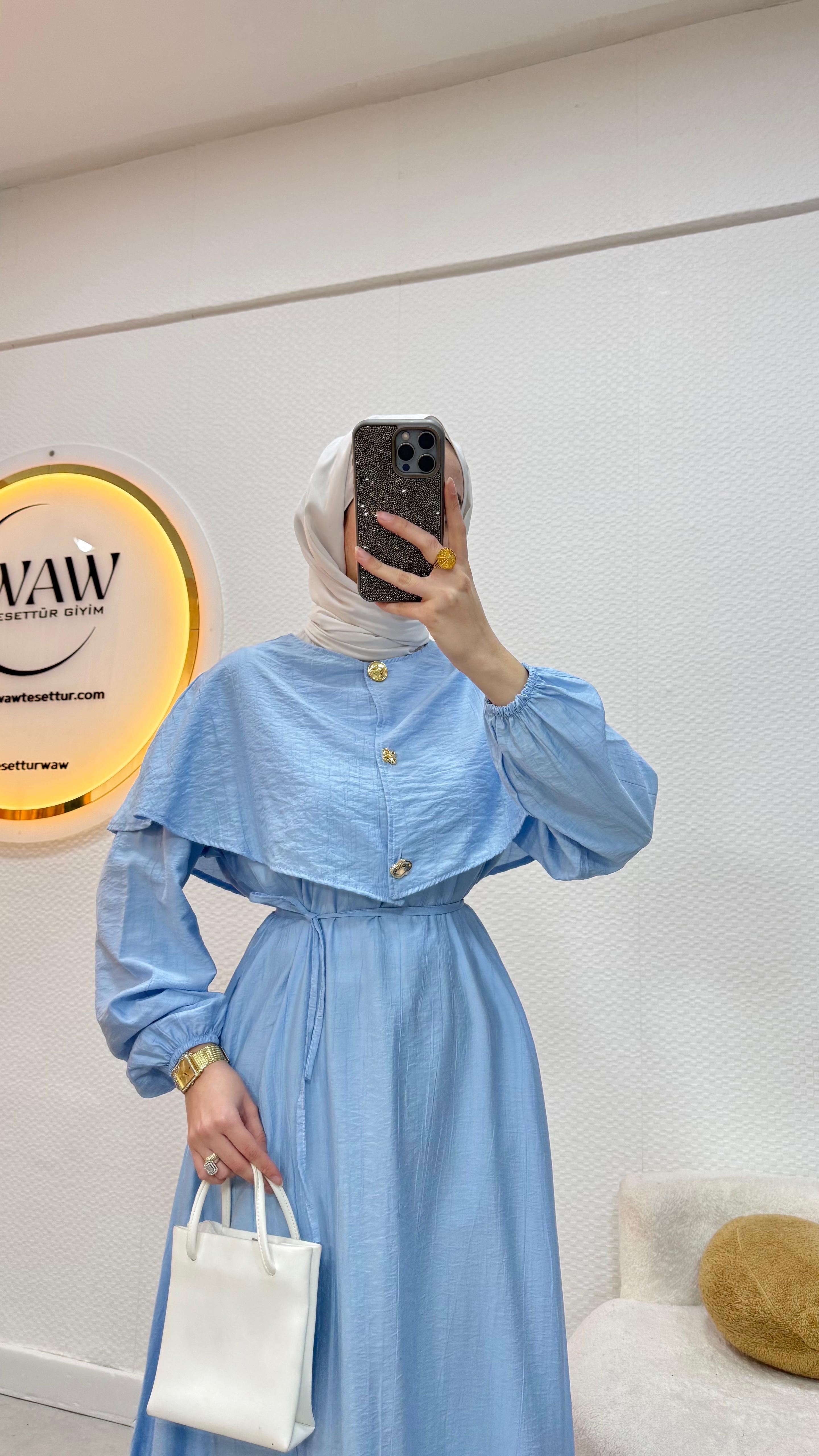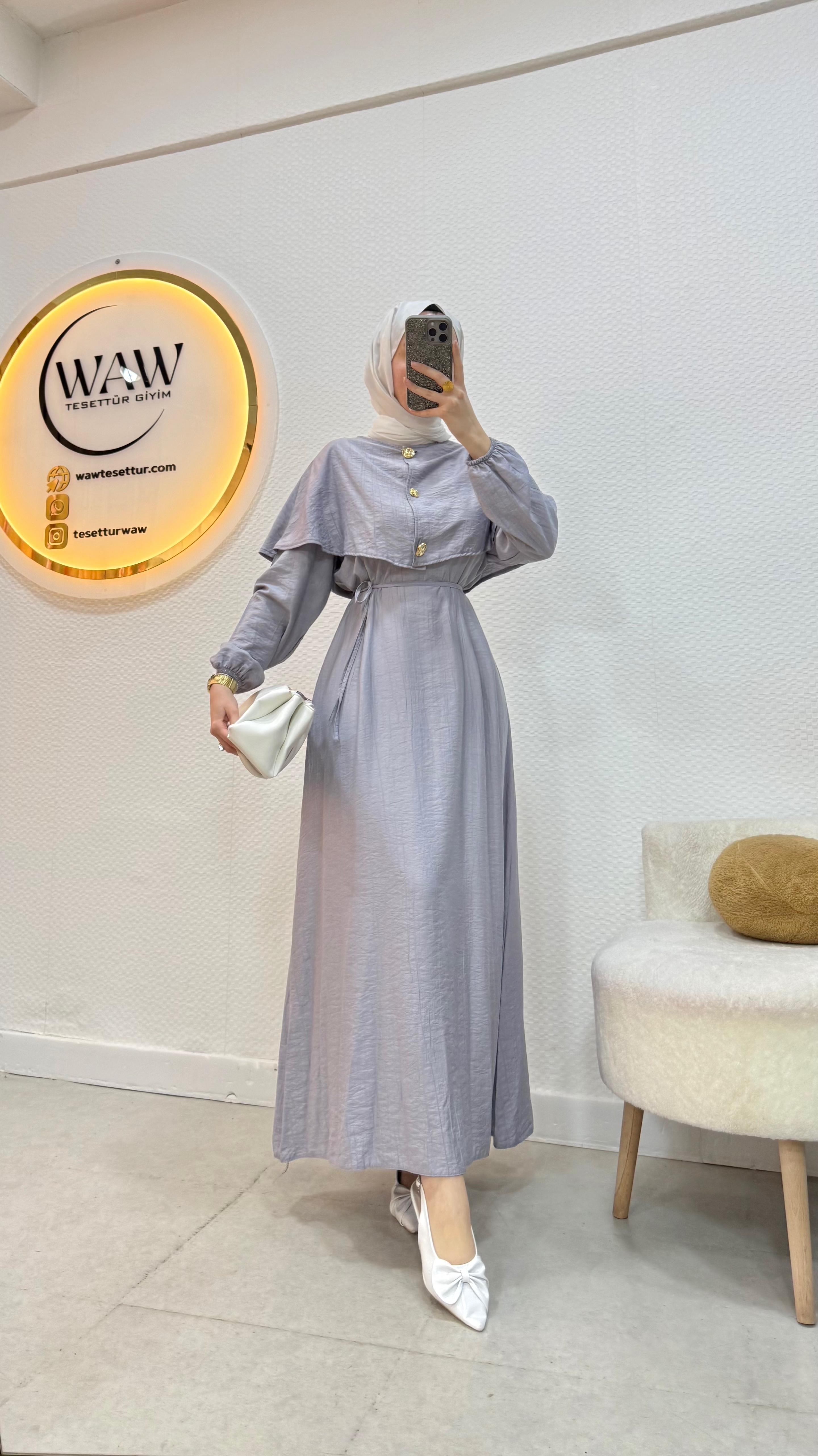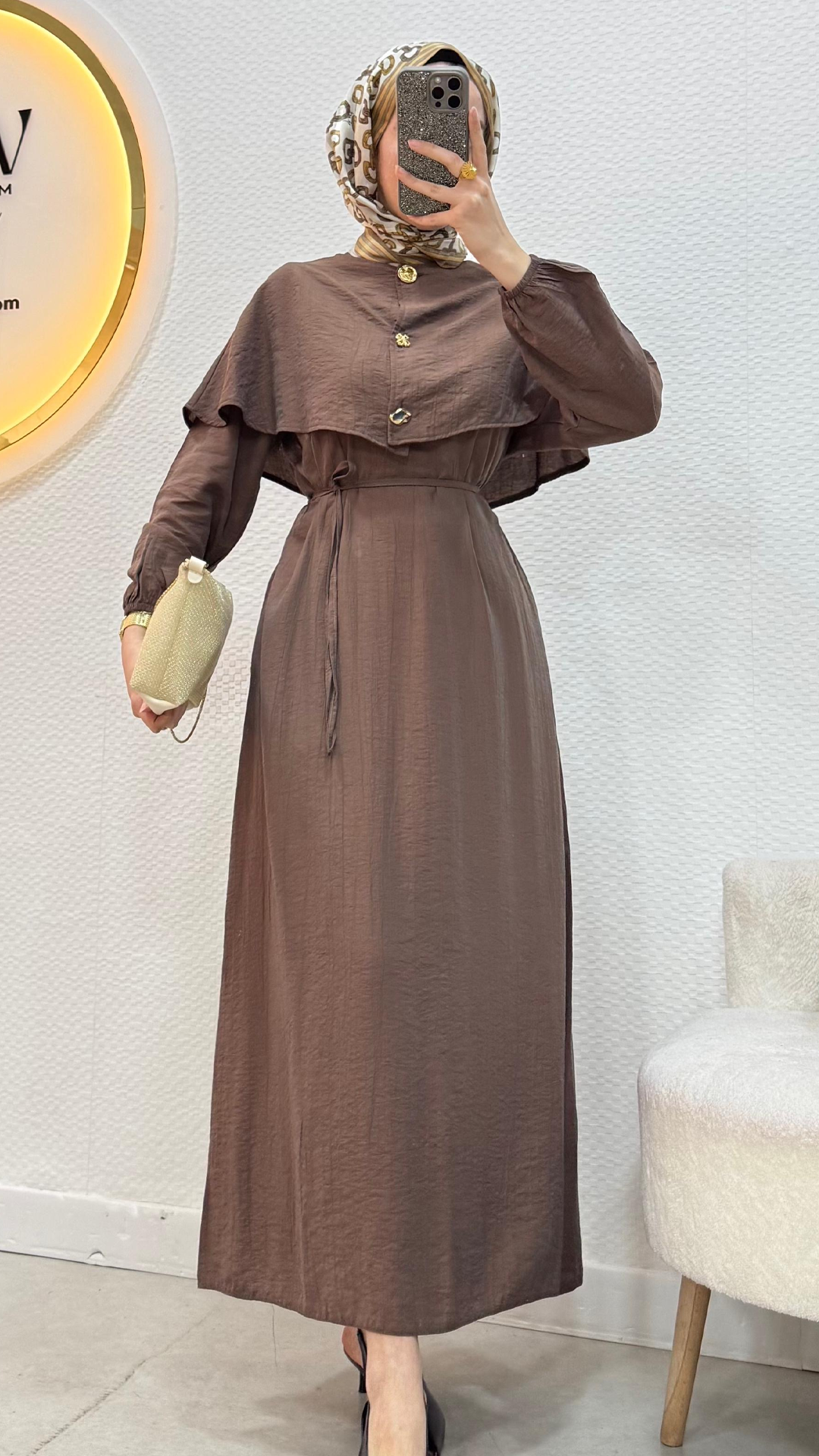 Üst kısmı pelerinli ve düğme detaylıdır. Manşet lastiklidir.
