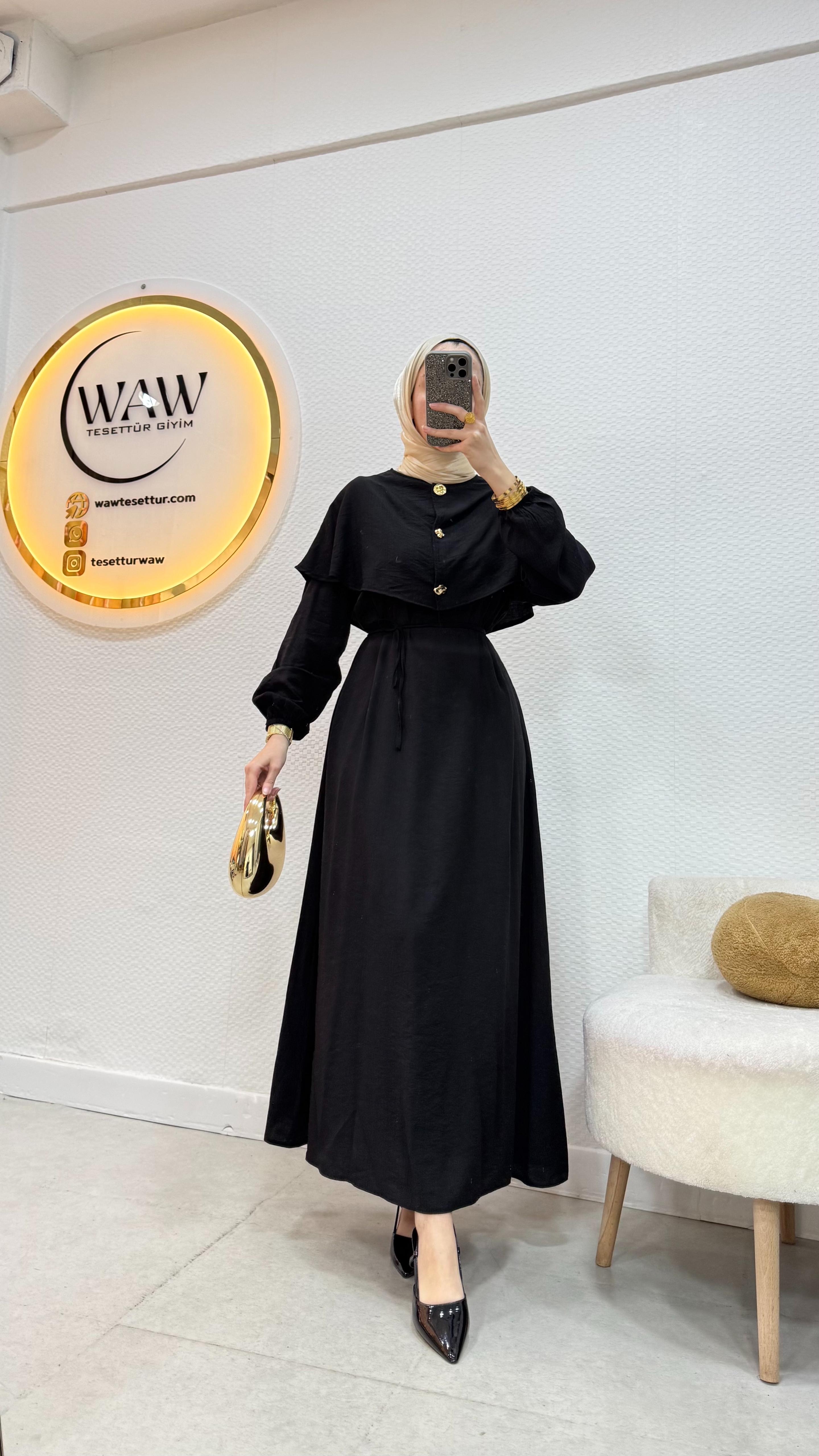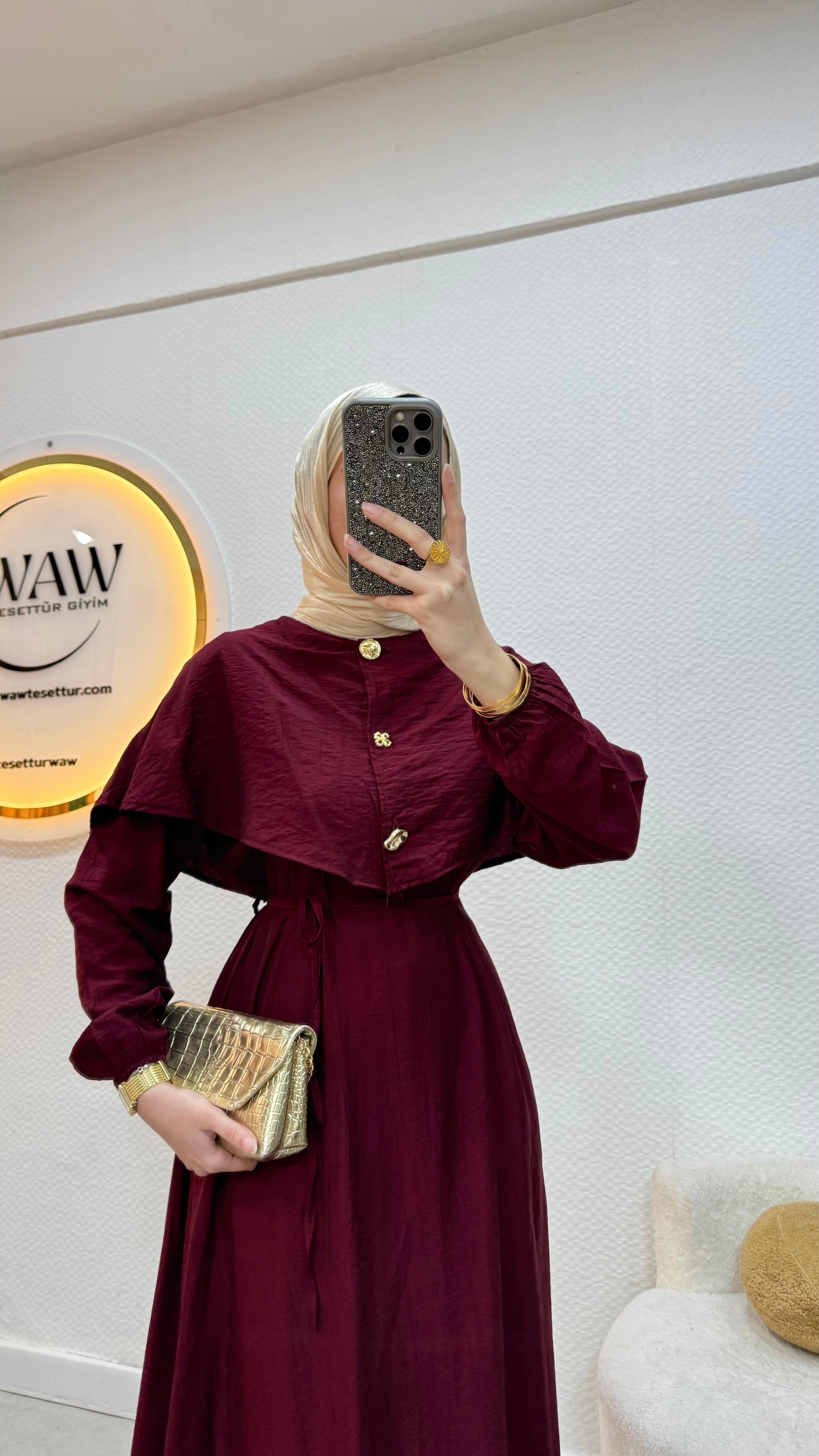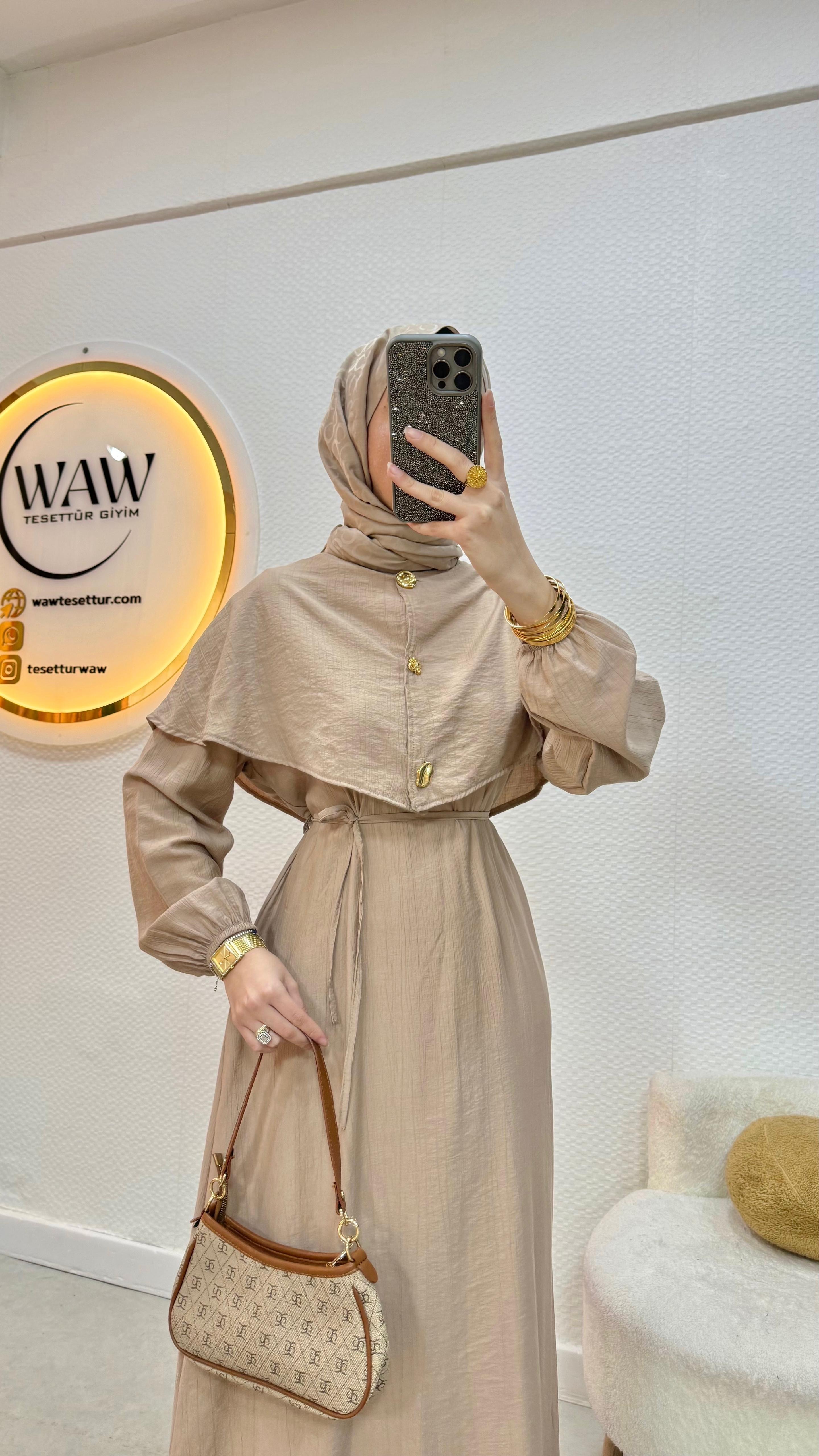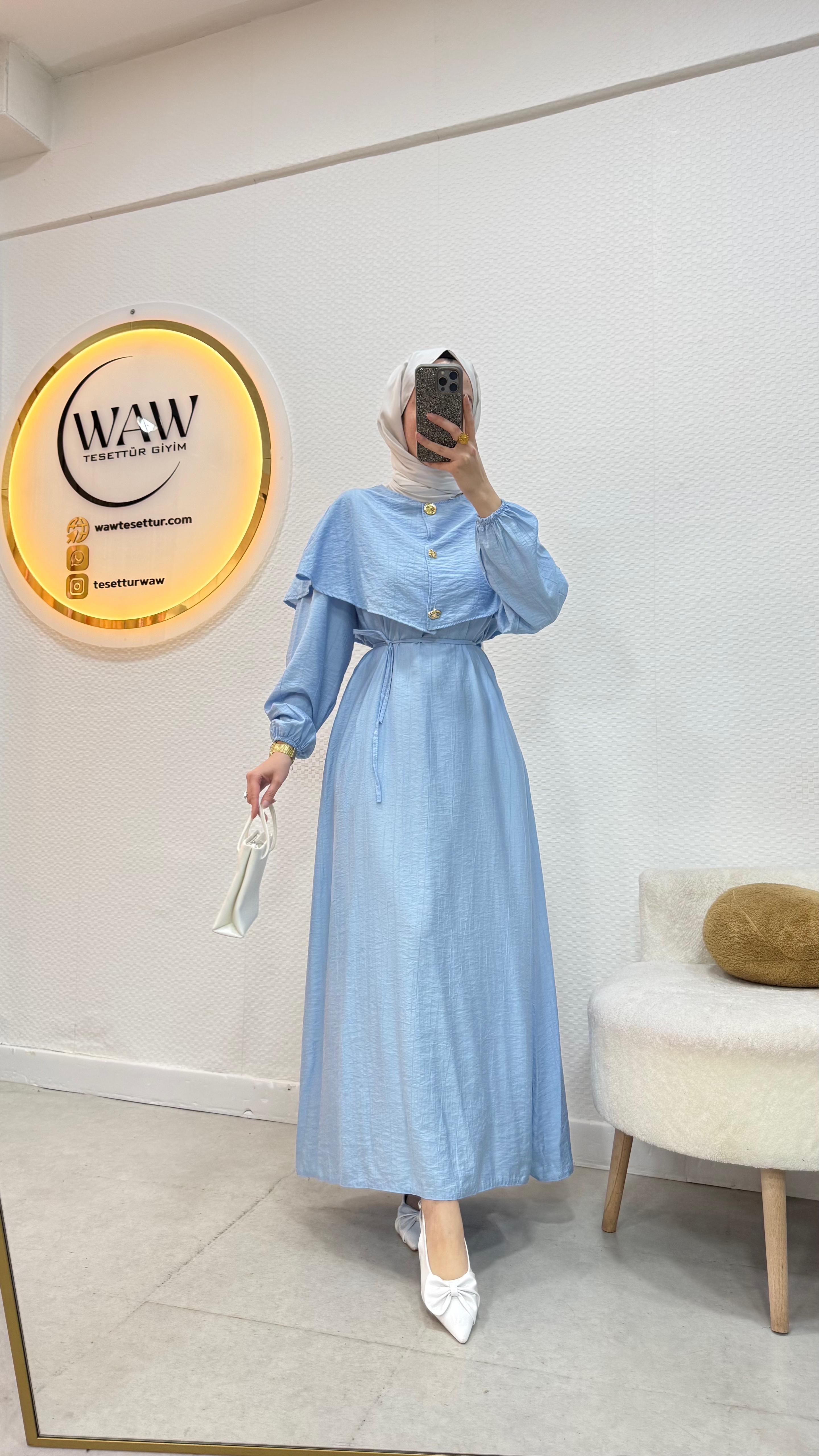 Üst kısmı pelerinli ve düğme detaylıdır. Manşet lastiklidir.