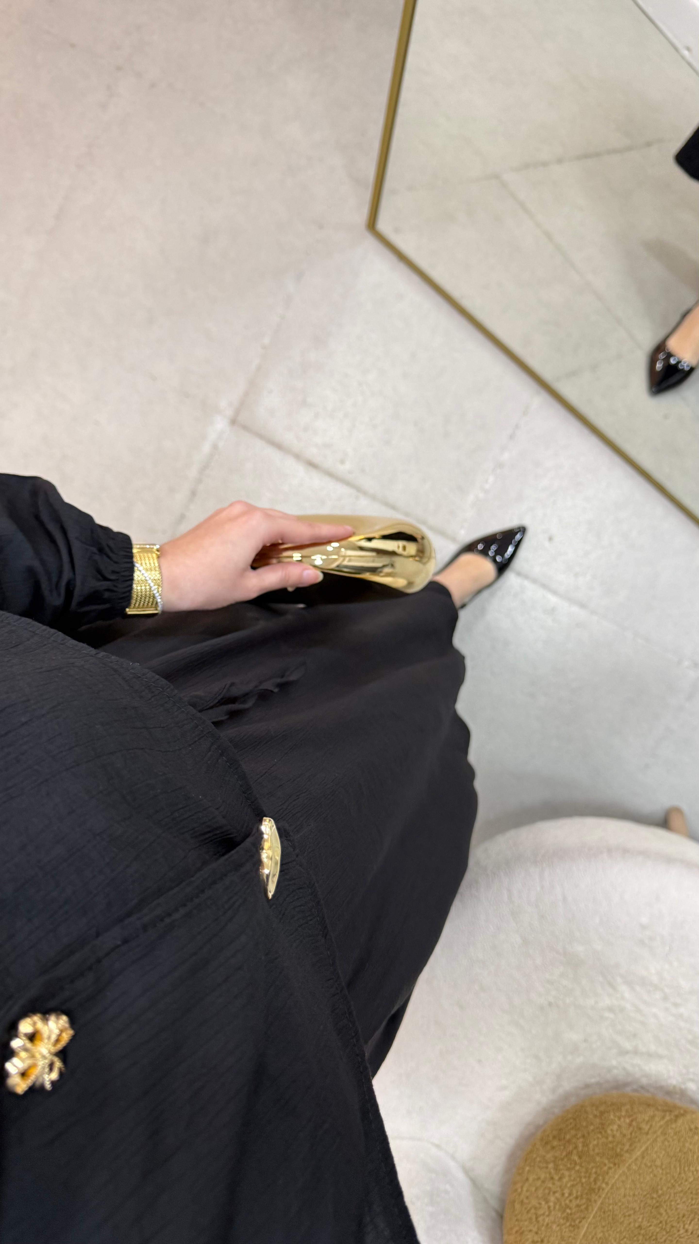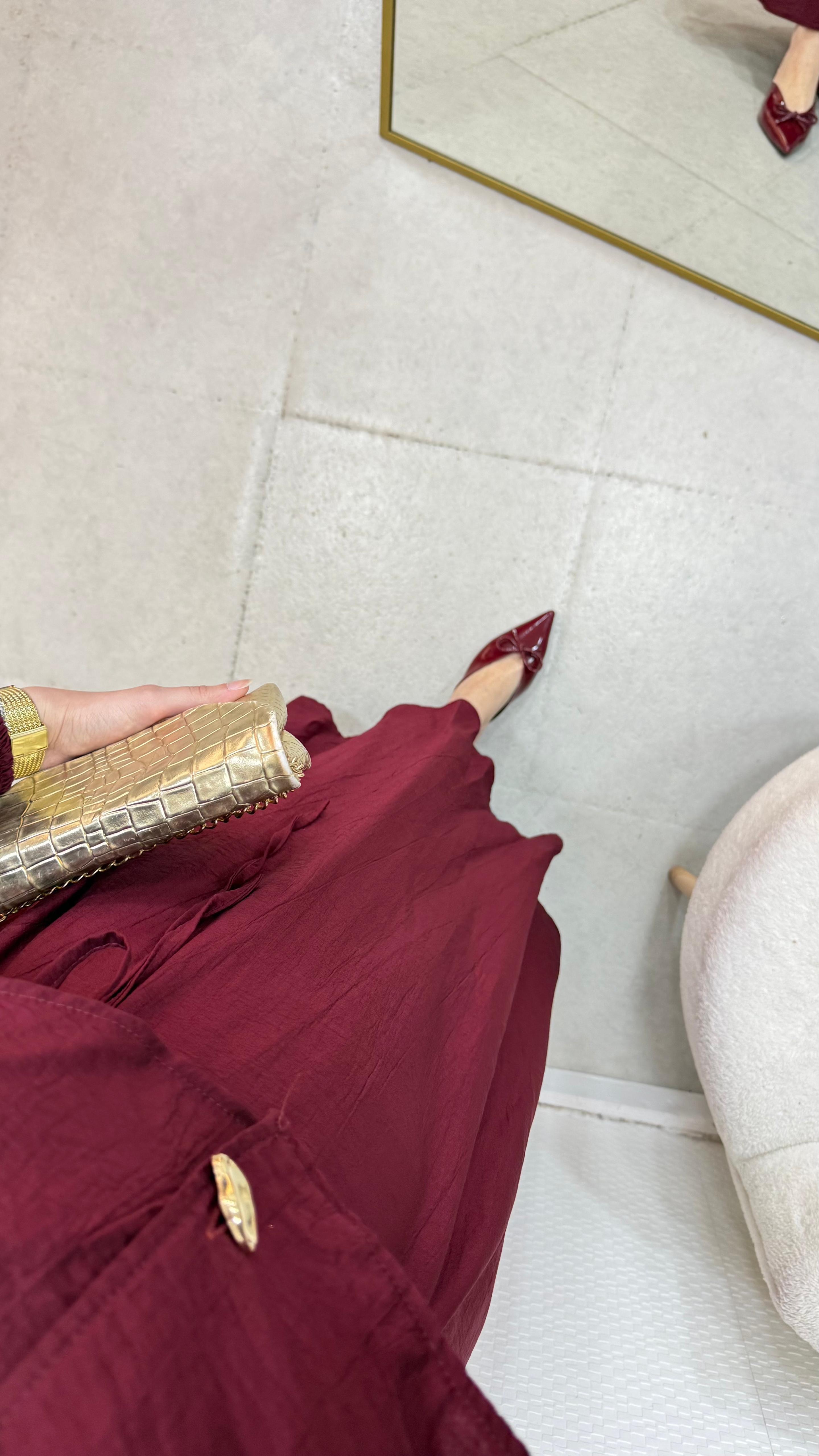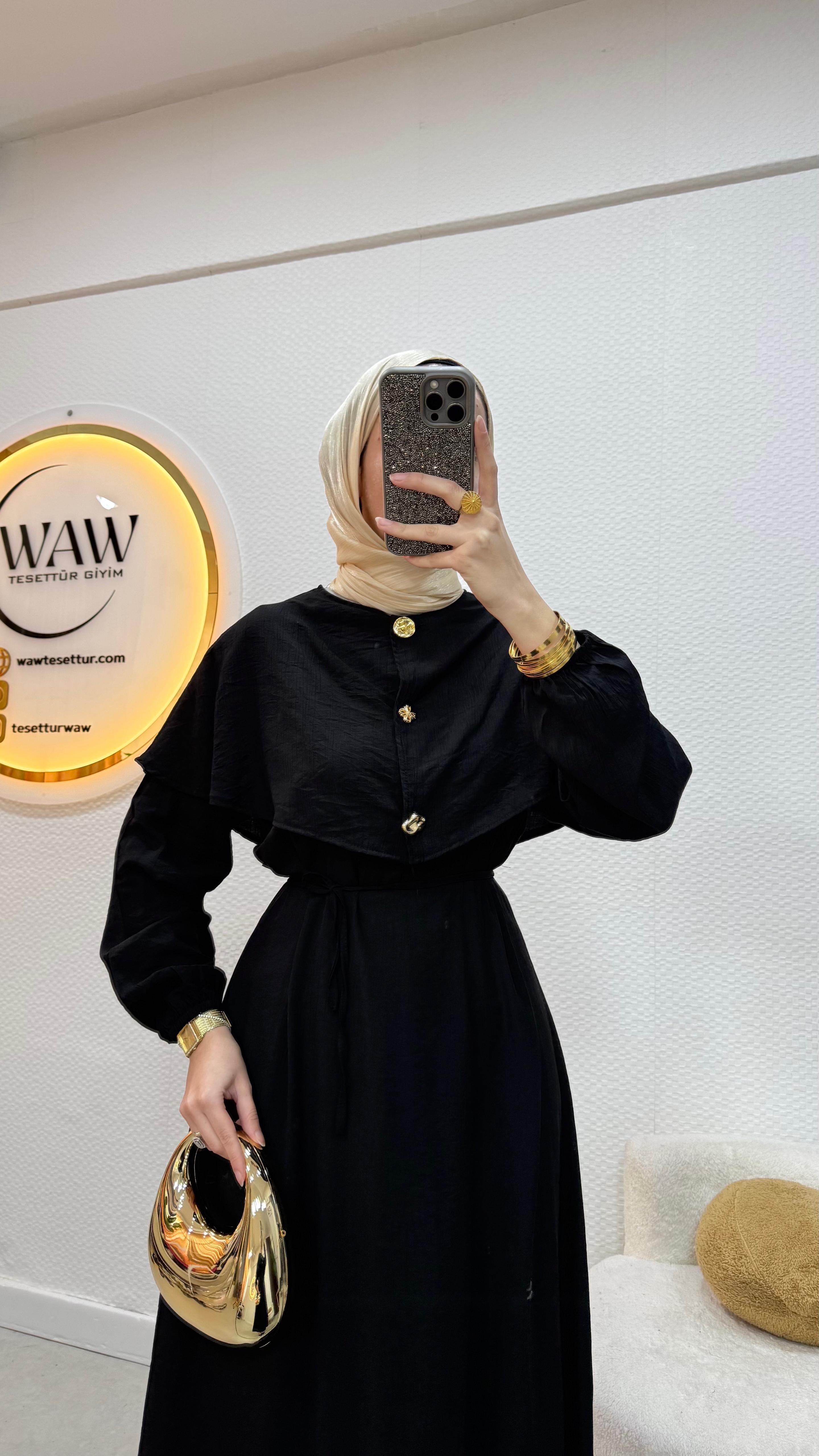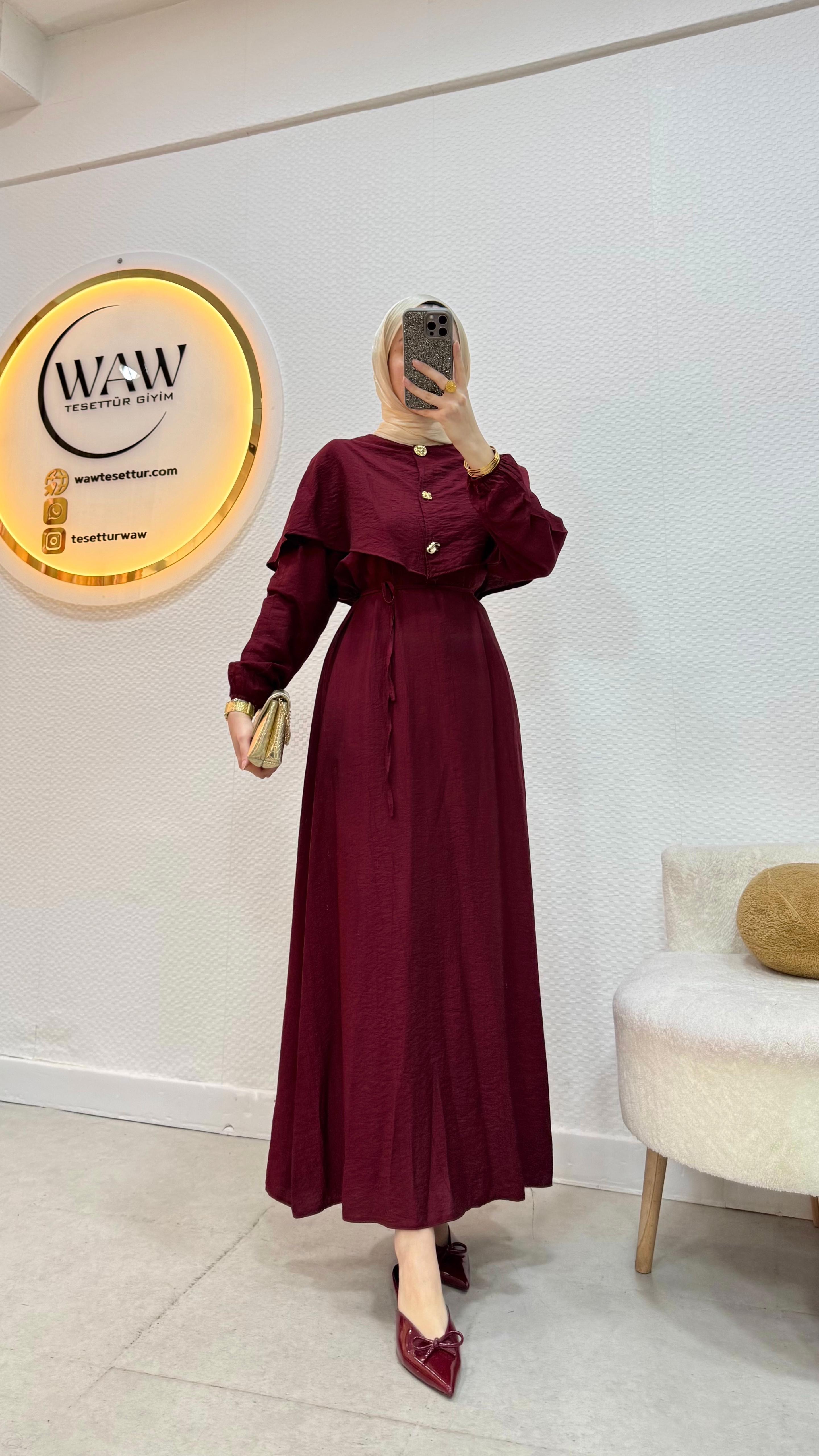 Üst kısmı pelerinli ve düğme detaylıdır. Manşet lastiklidir.
