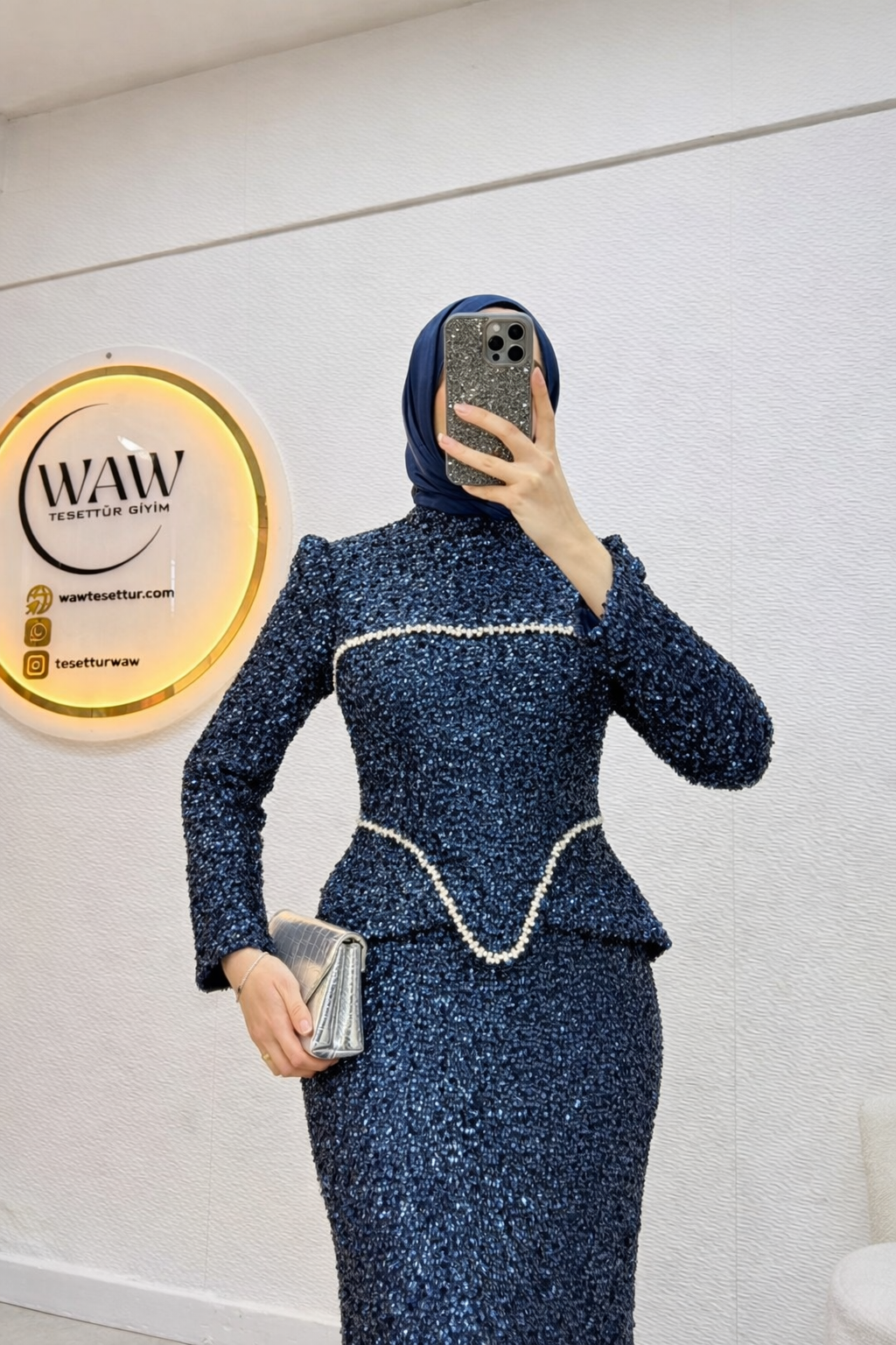 Boncuk payet kumaştan üretilmiştir.Arka orta gizli fermuarlıdır.Hakim yakadır.Ürün boyu 155cmÜrün kalıbı..36/38/40/42/44 bedenleri mevcut.Çekim mankeni 170/60kg 38 beden tercih etmektedir.