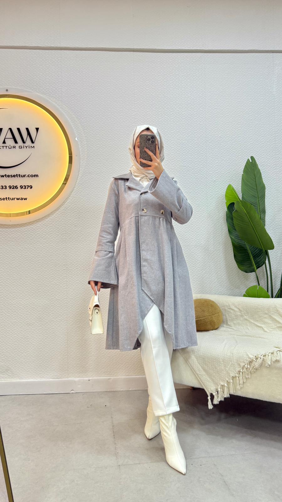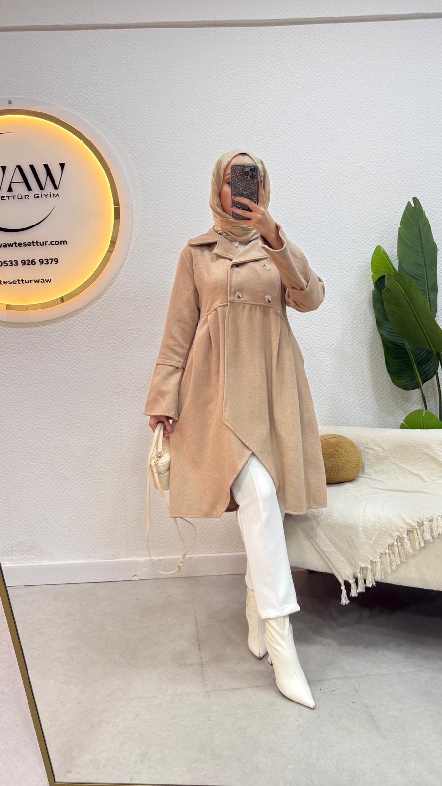 Ürünümüz 1.kalite kaşe kumaştan üretilmiştir.Düğmelidir.36/38/40/42/44 bedenleri mevcuttur.Ürün boyu 80cm'dir.Çekim mankeni 170/60kg 38 beden tercih etmektedir.