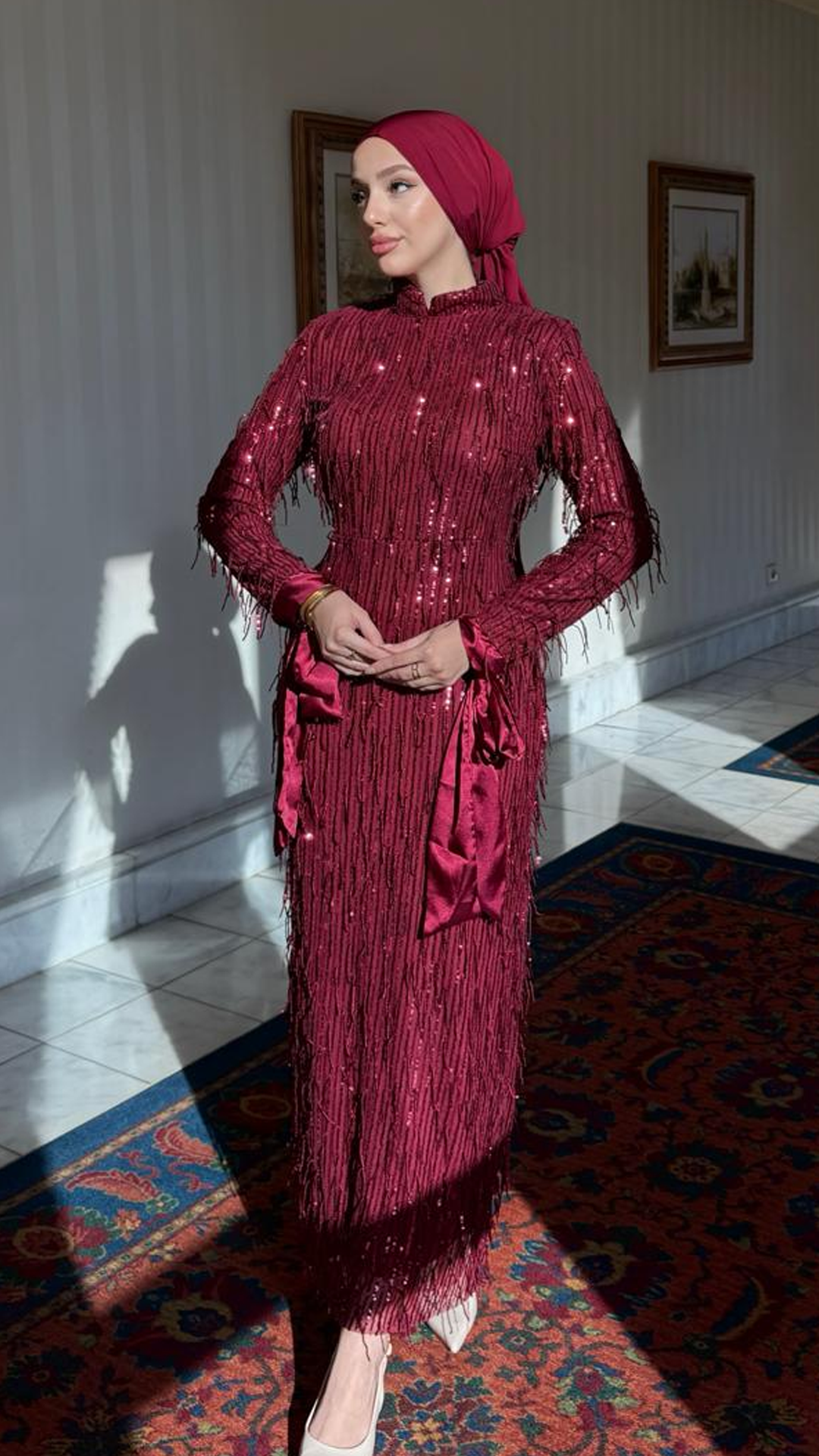 Gelince Haber VerPüsküllü payet detaylı kumaştan üretilmiştir.