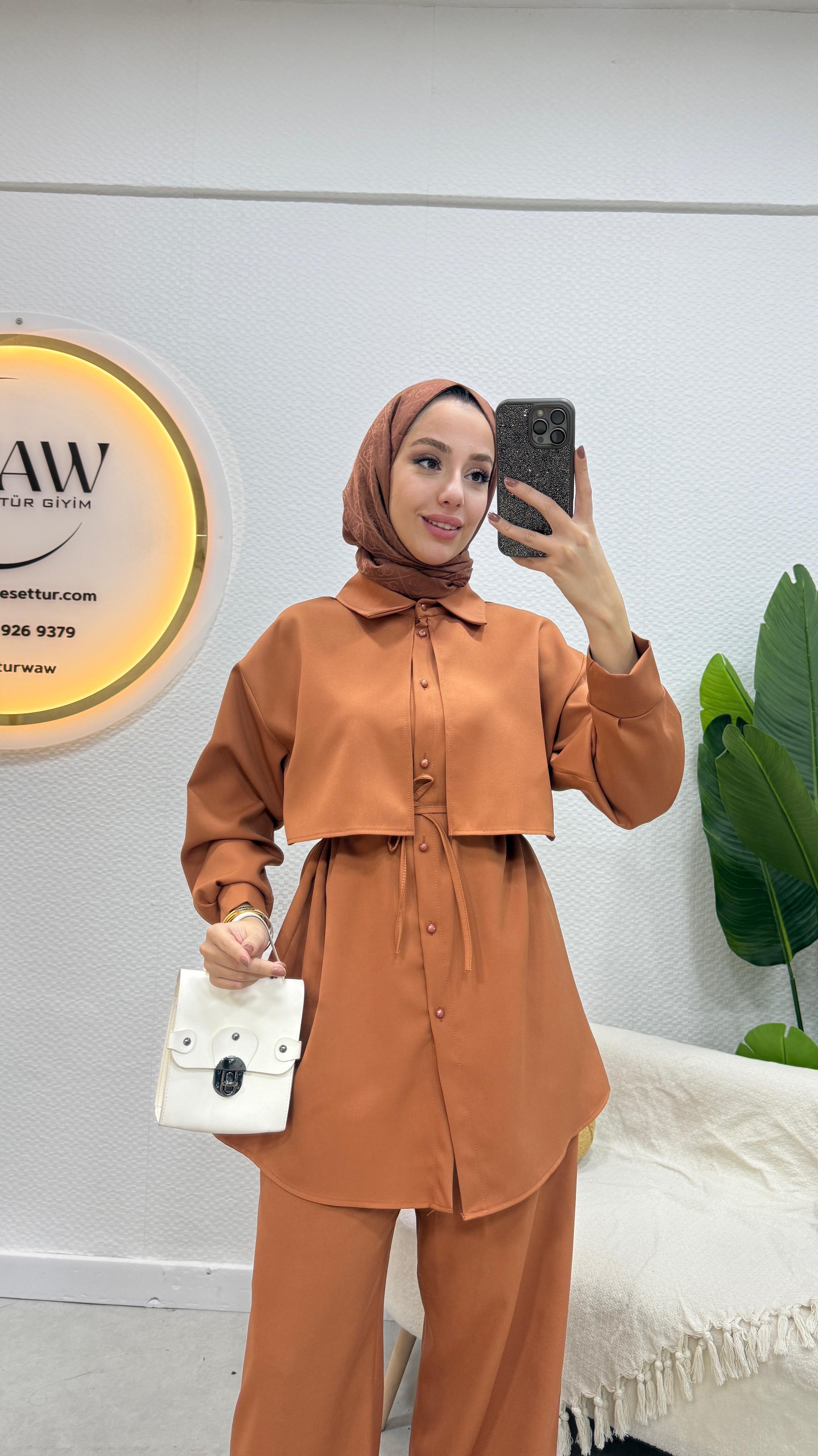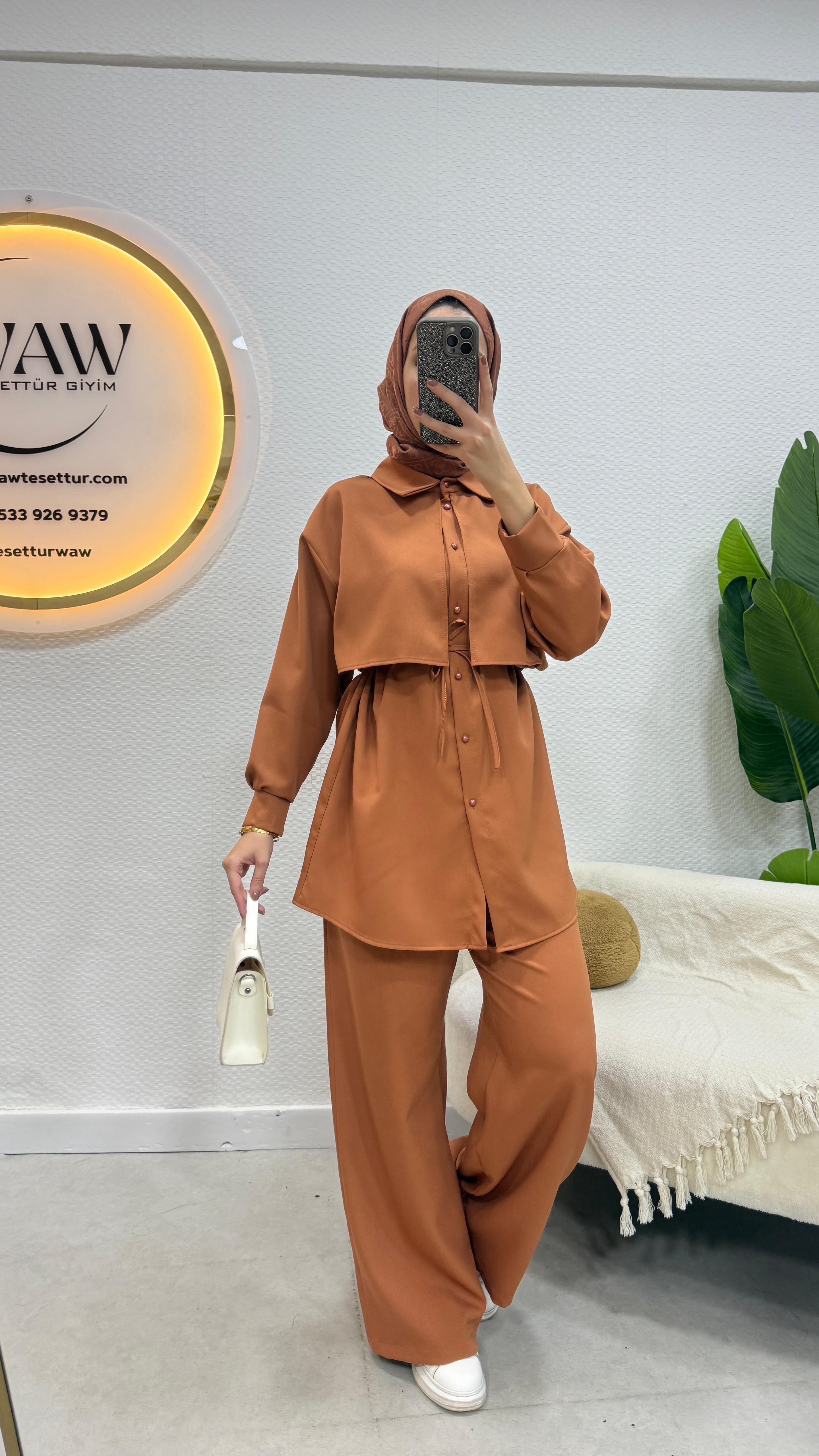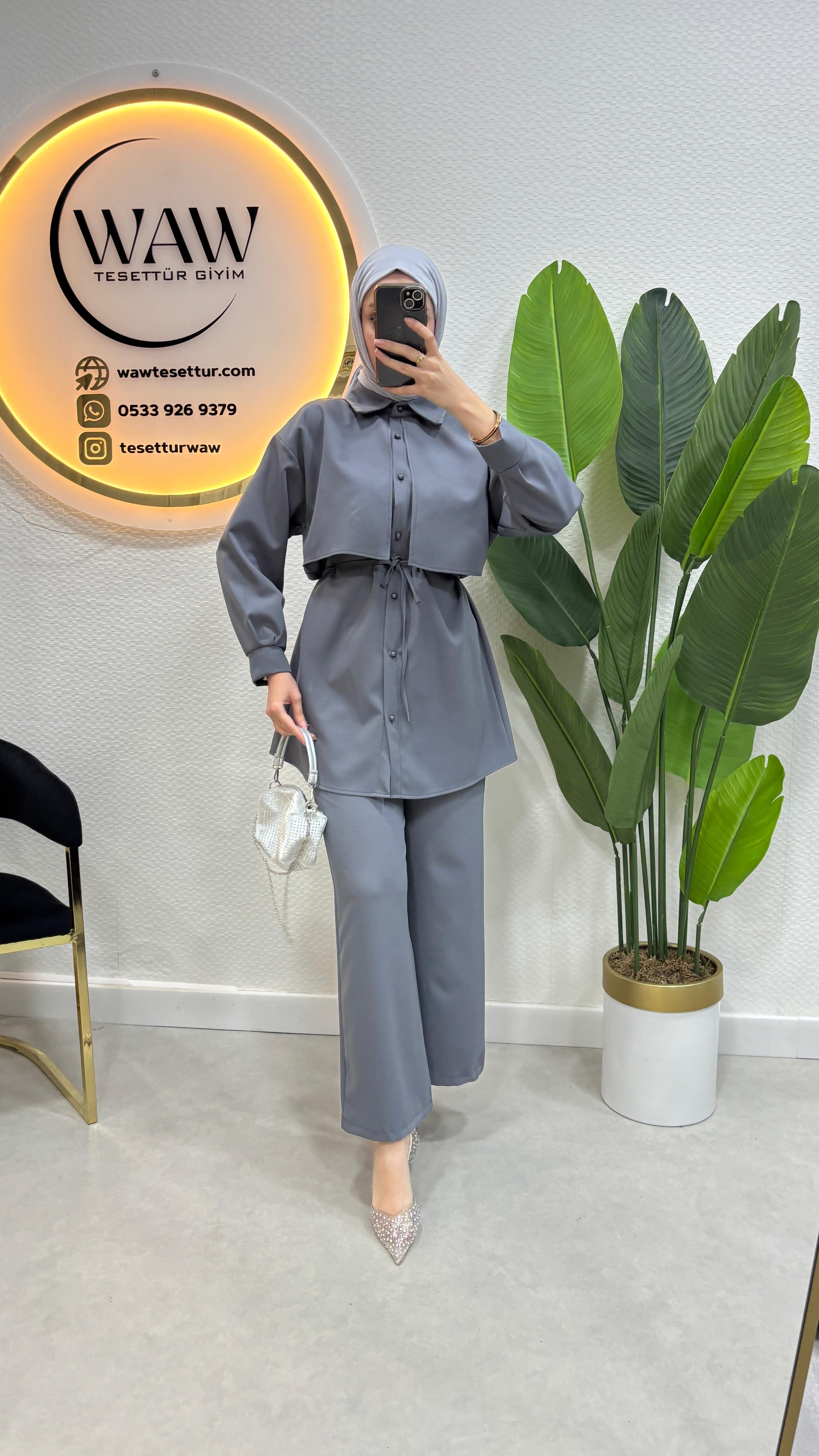 Elena Takım ürünümüz birinci kalite dabıl krep kumaştan üretilmiştir.