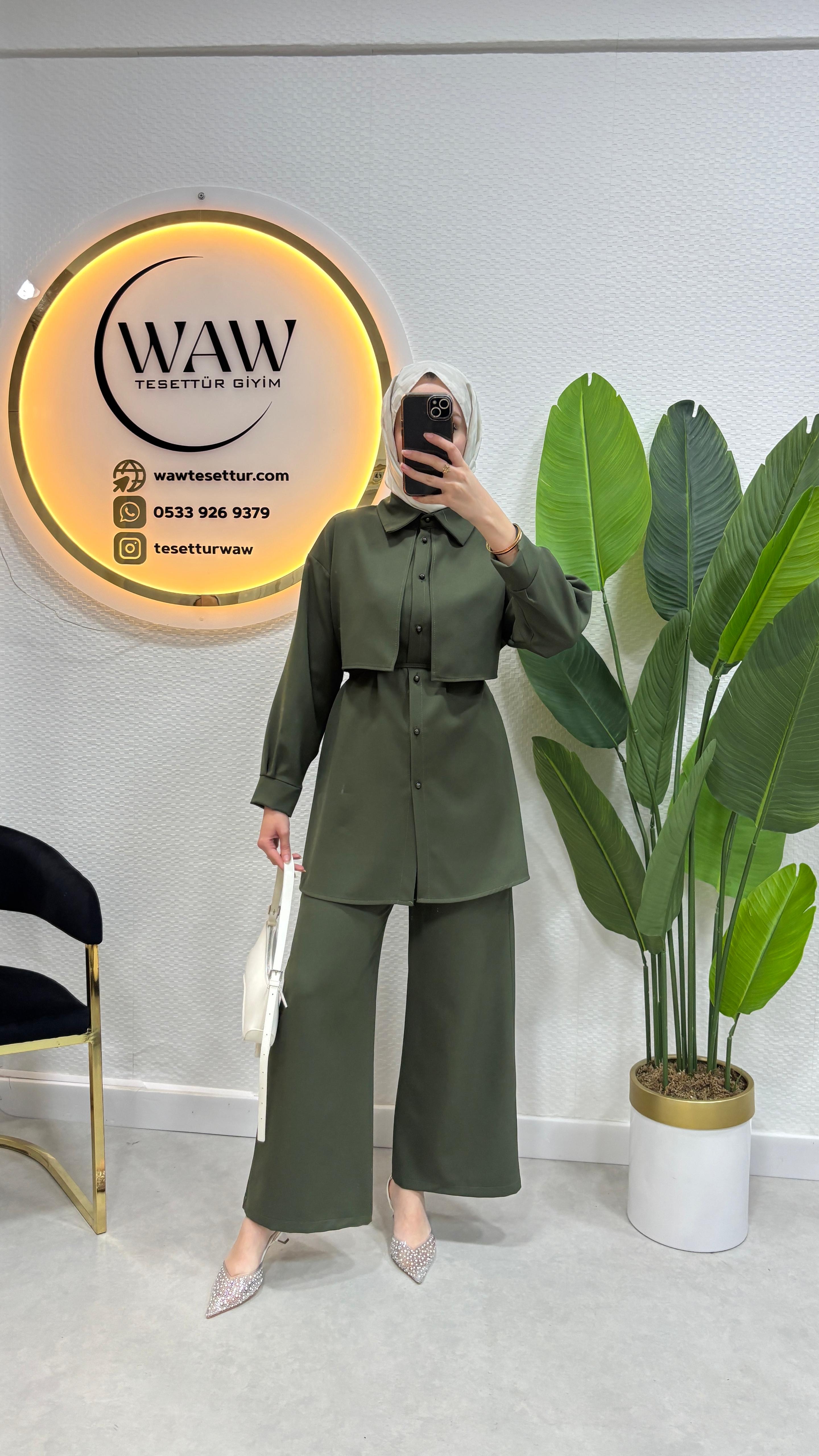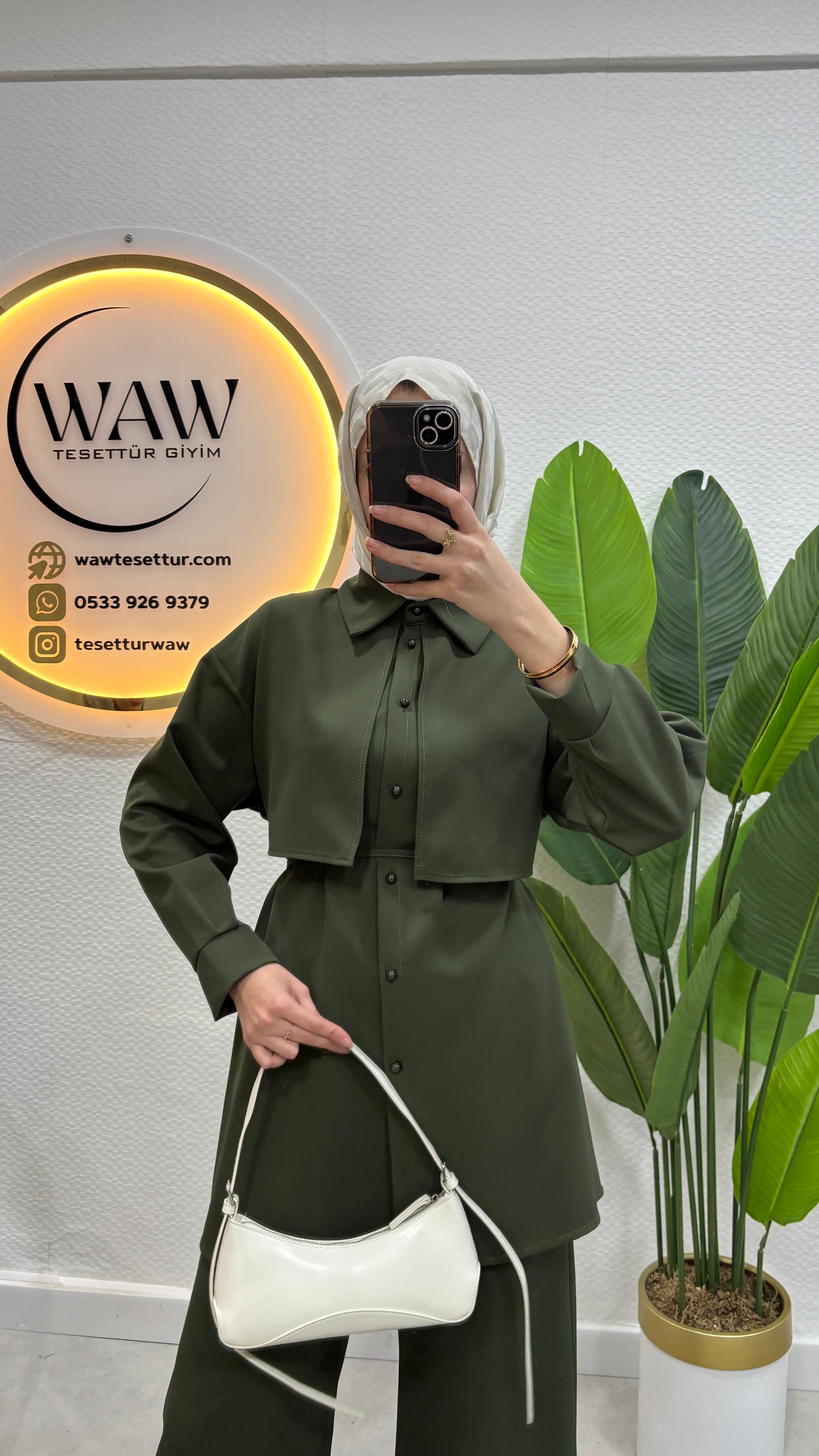 Düğmeler kullanılabilir, tunik kat detaylıdır.