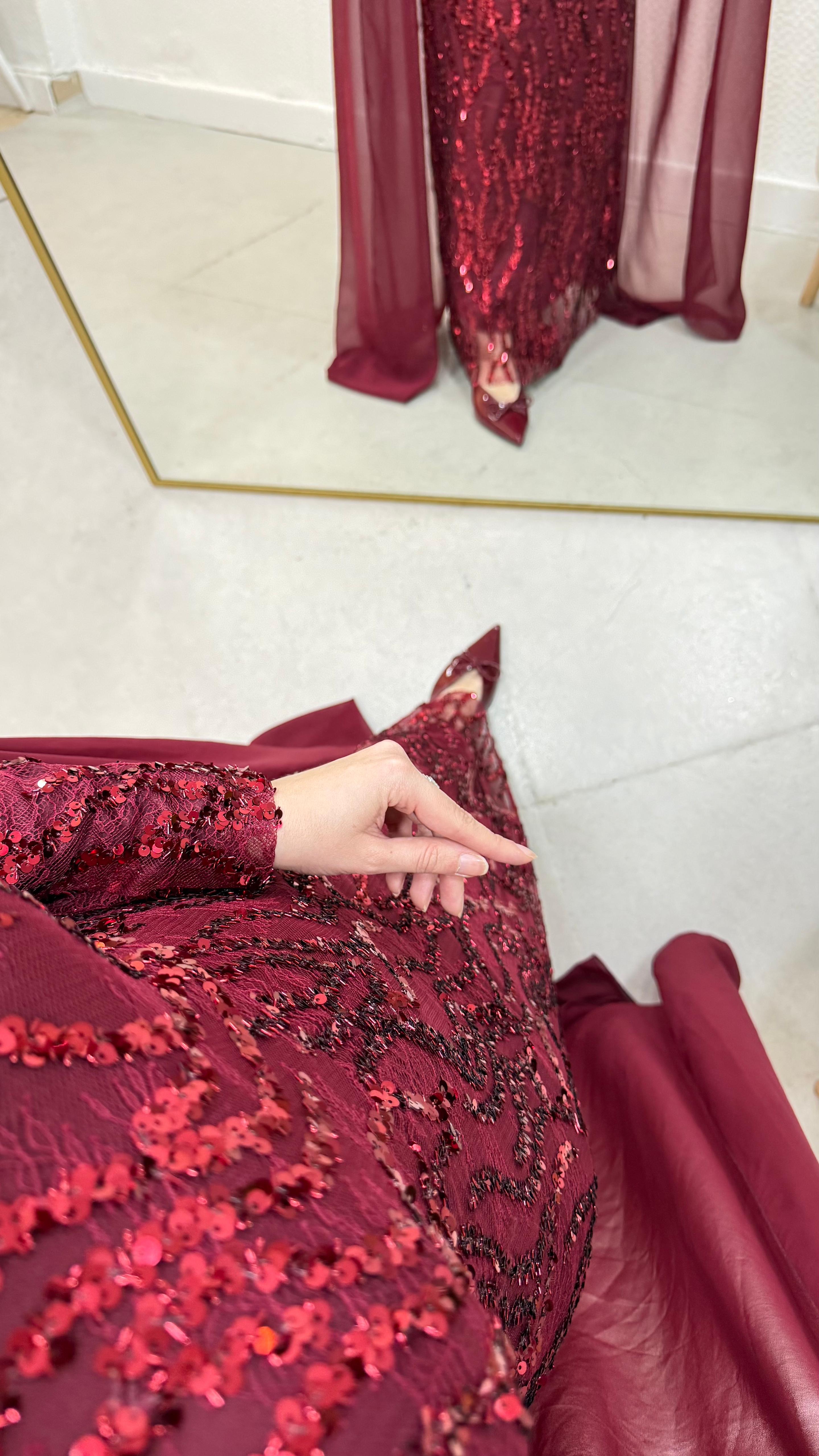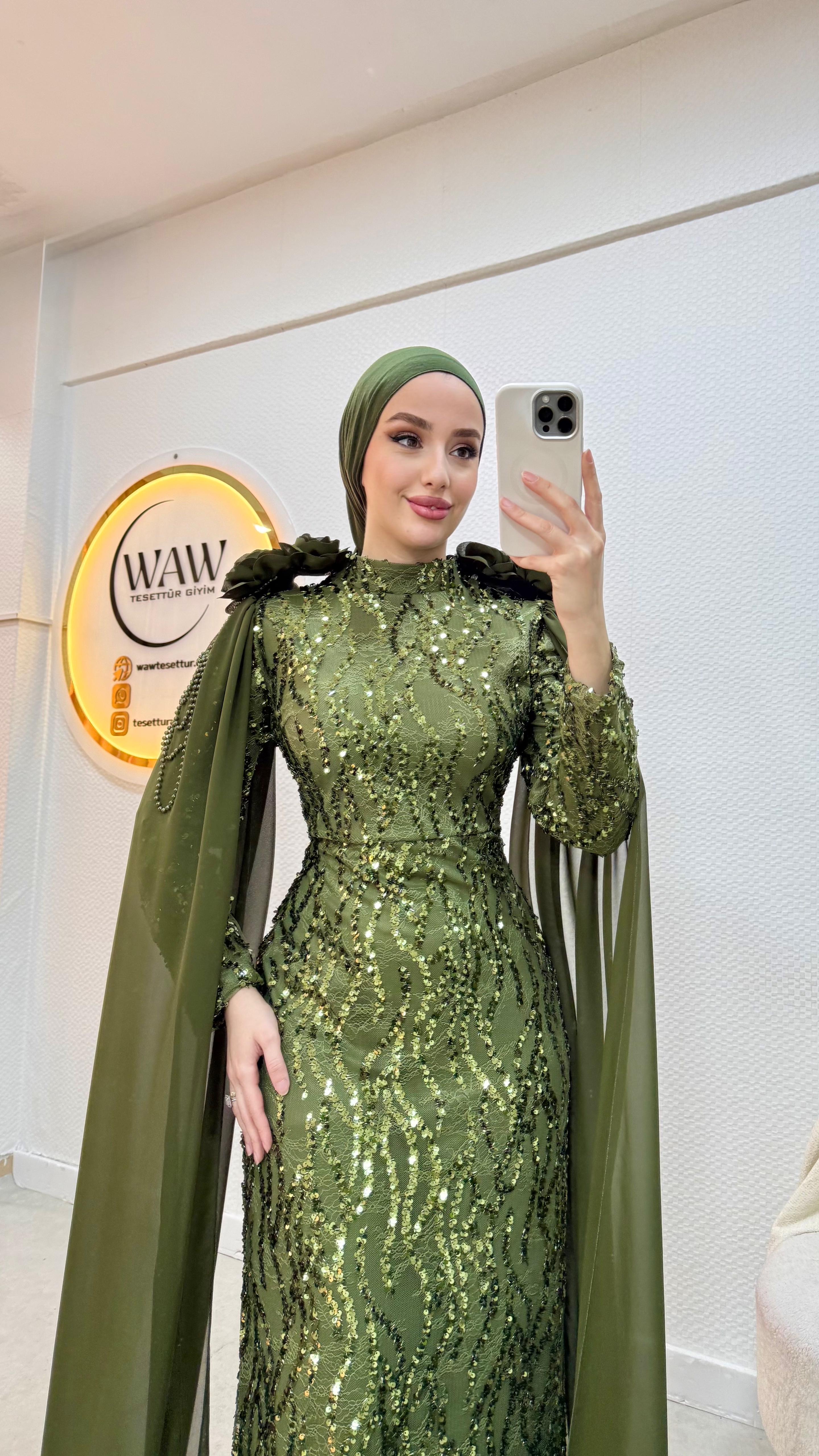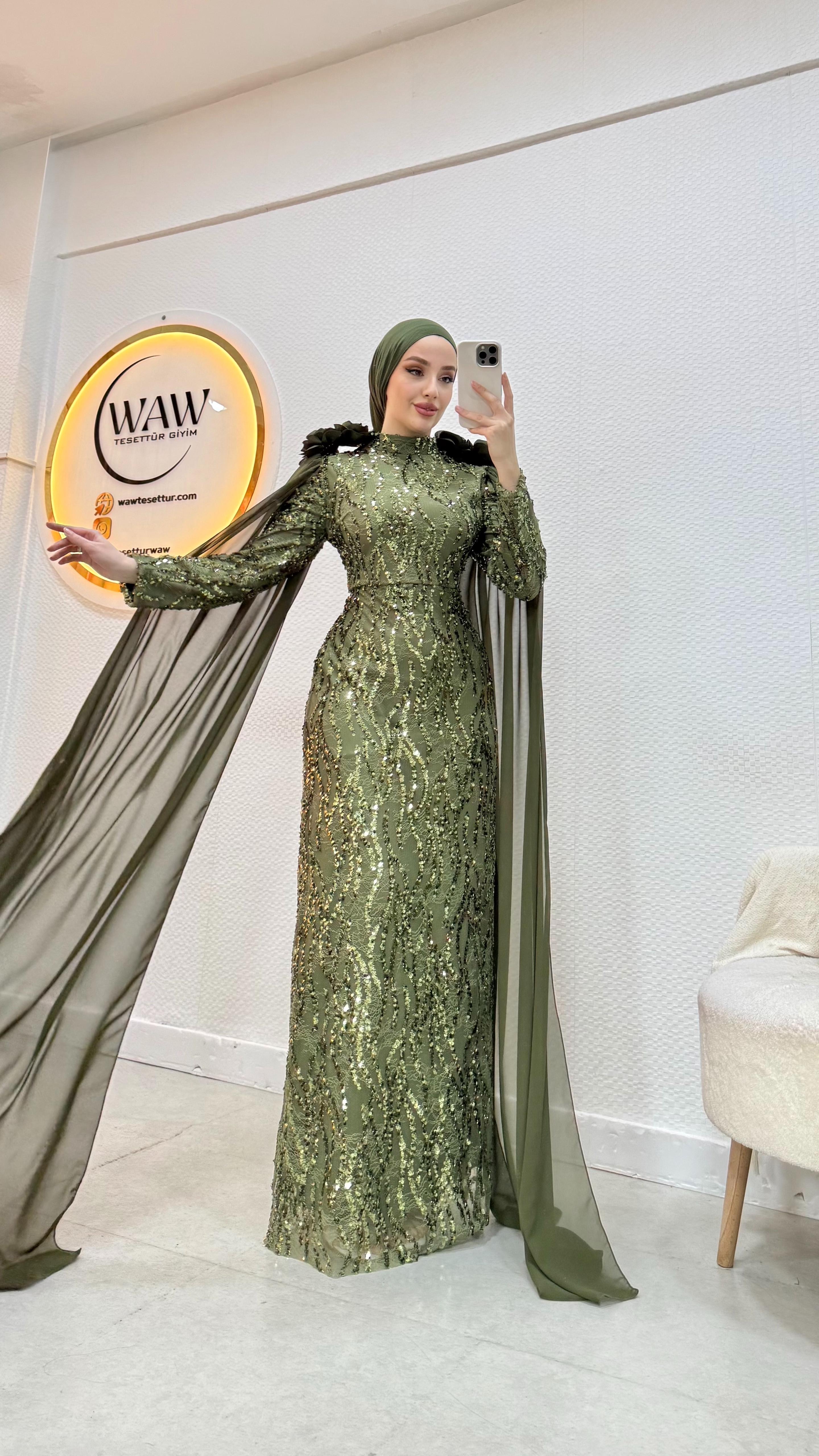 İşleme kumaştan üretilmiştir. Tam kalıptır. Boy: 145cm Ürünümüz pelerinlidir. Omuzlarında gül detayları vardır. Hakim yakadır. 42/44/46/48/50/52 bedenleri mevcuttur. Çekim mankeni 170/60kg 38 beden tercih etmektedir