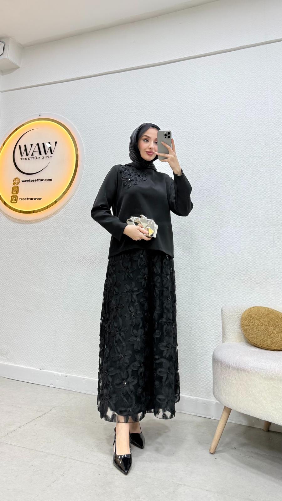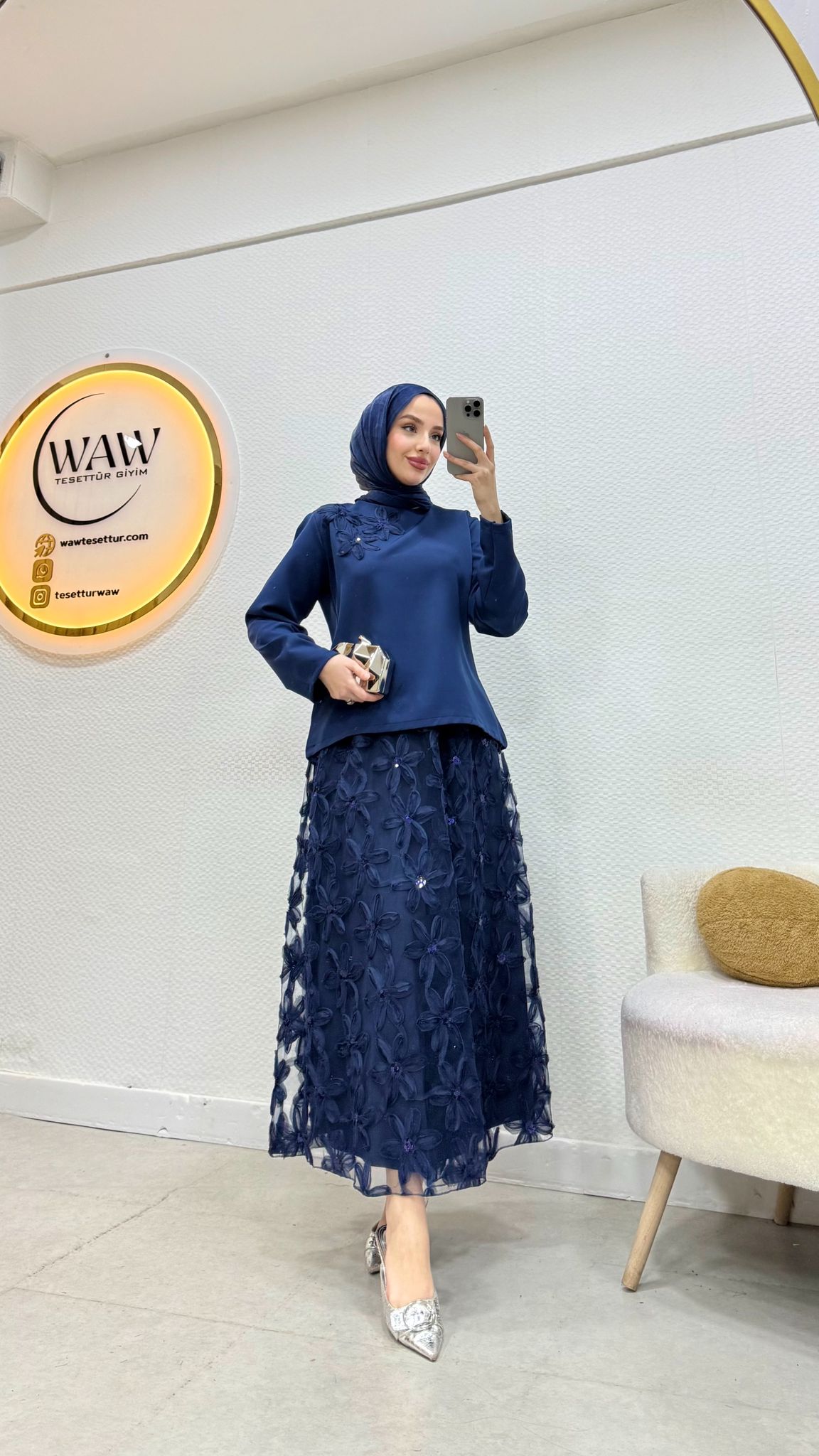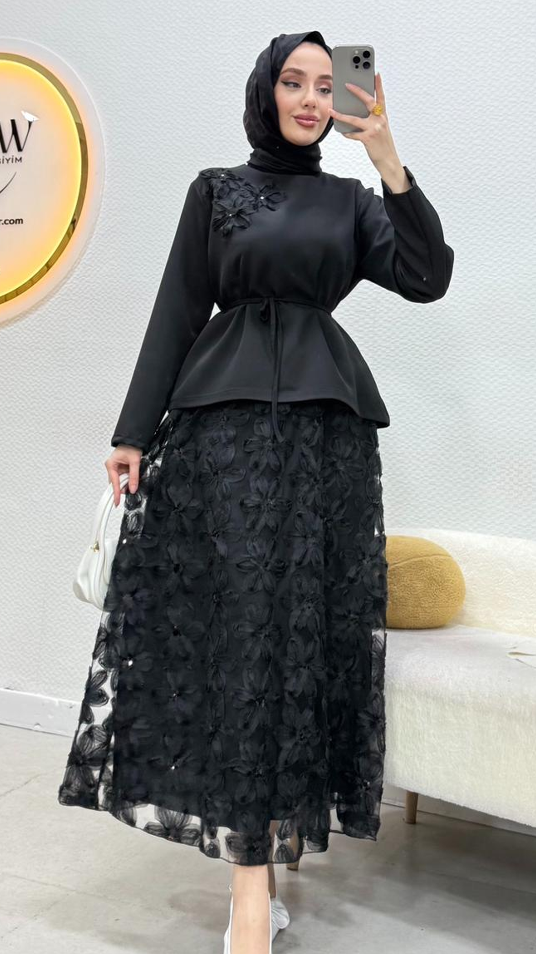 Bluz bisiklet yakadır,eteği astarlıdır.