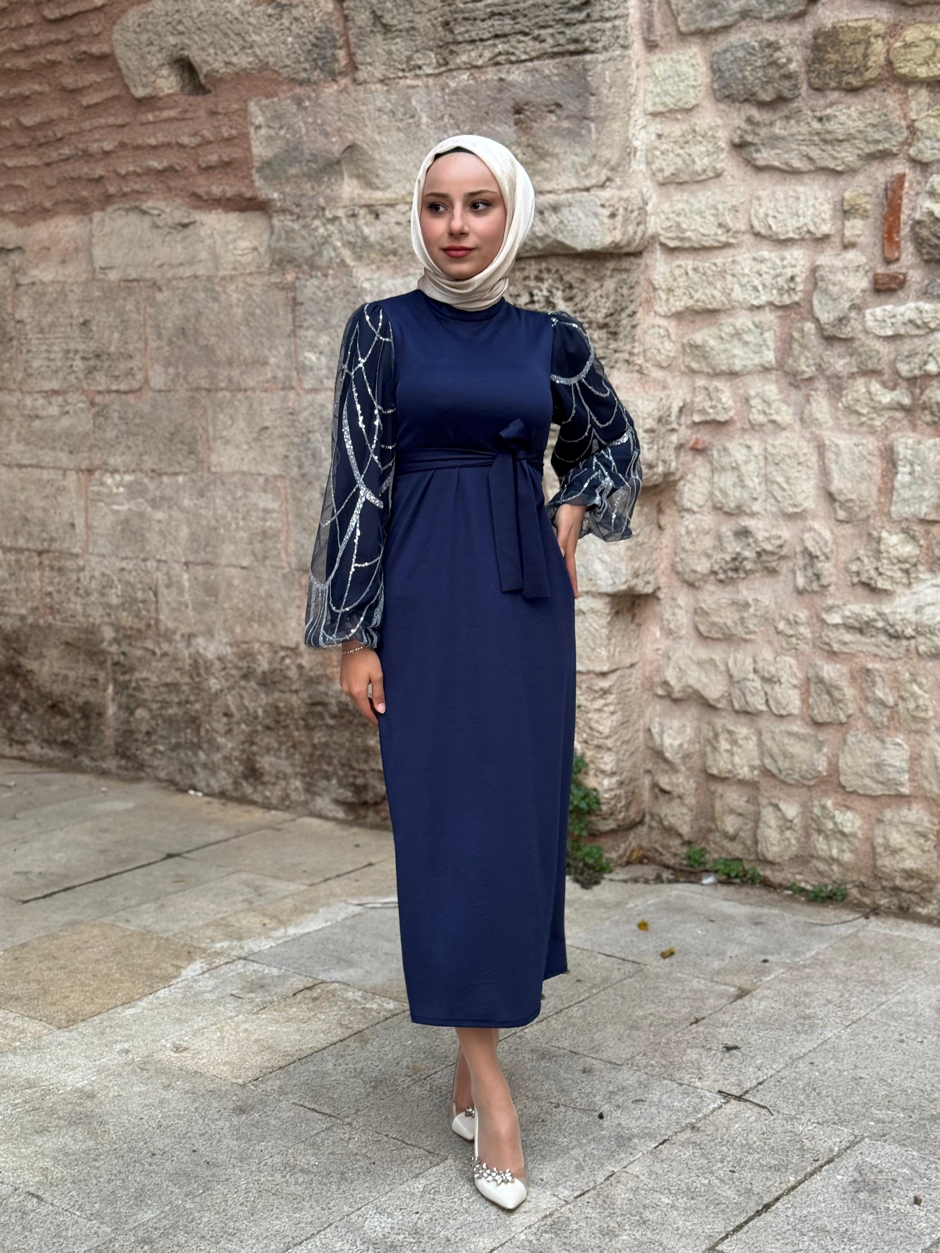 Fırsat Ürünü - Cemre Elbise - Kol Desen Farkı - İp Çekme