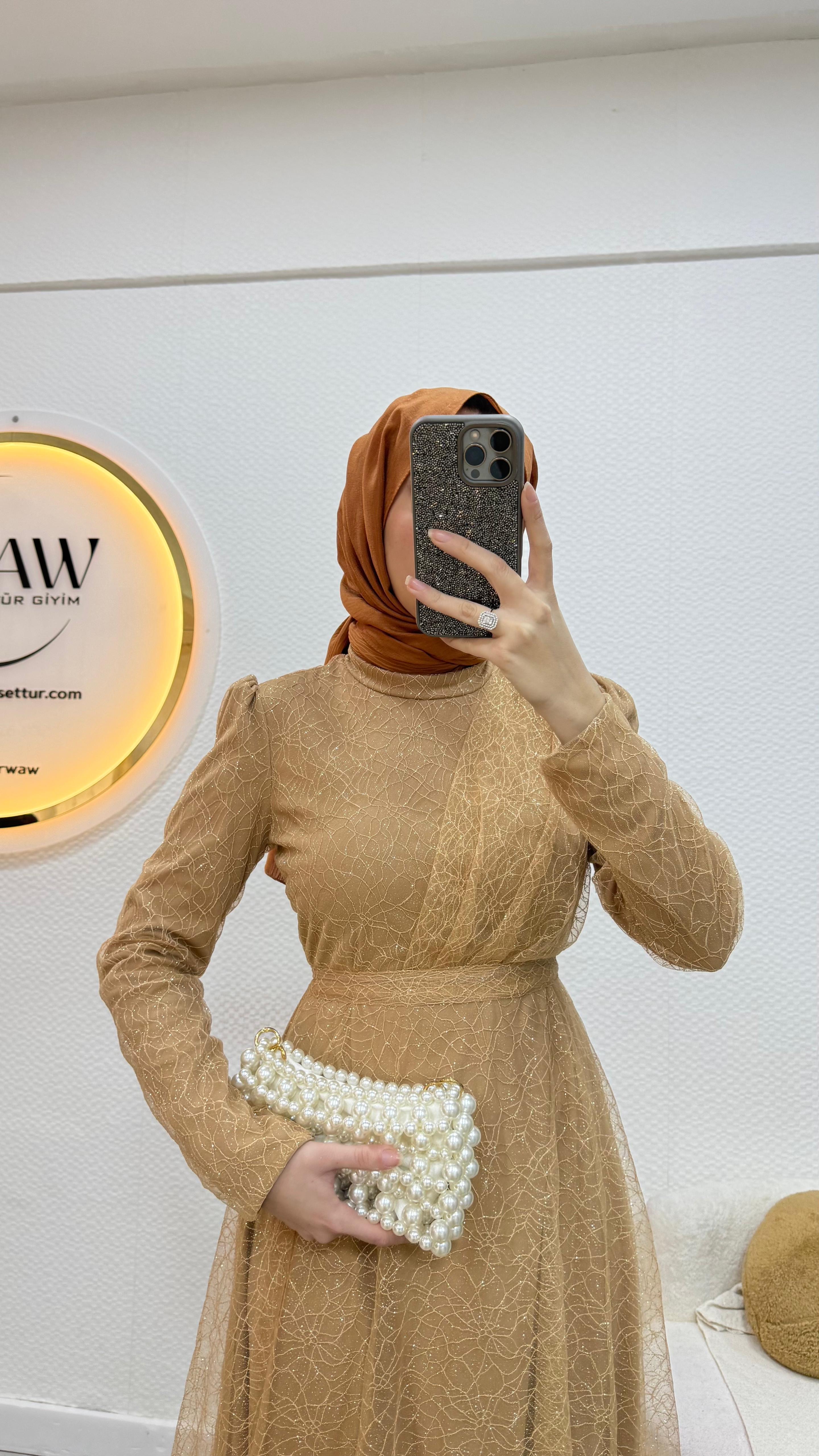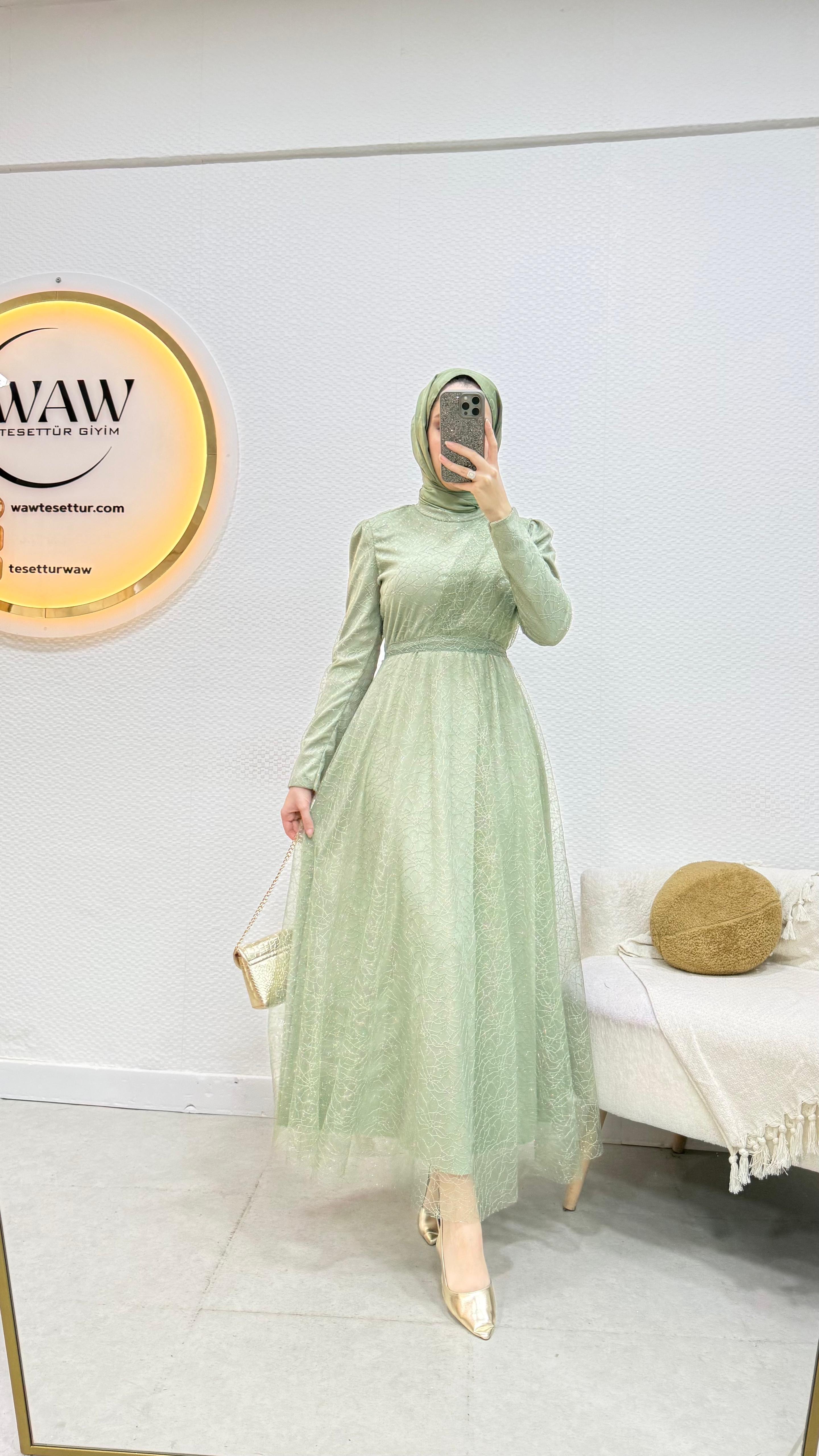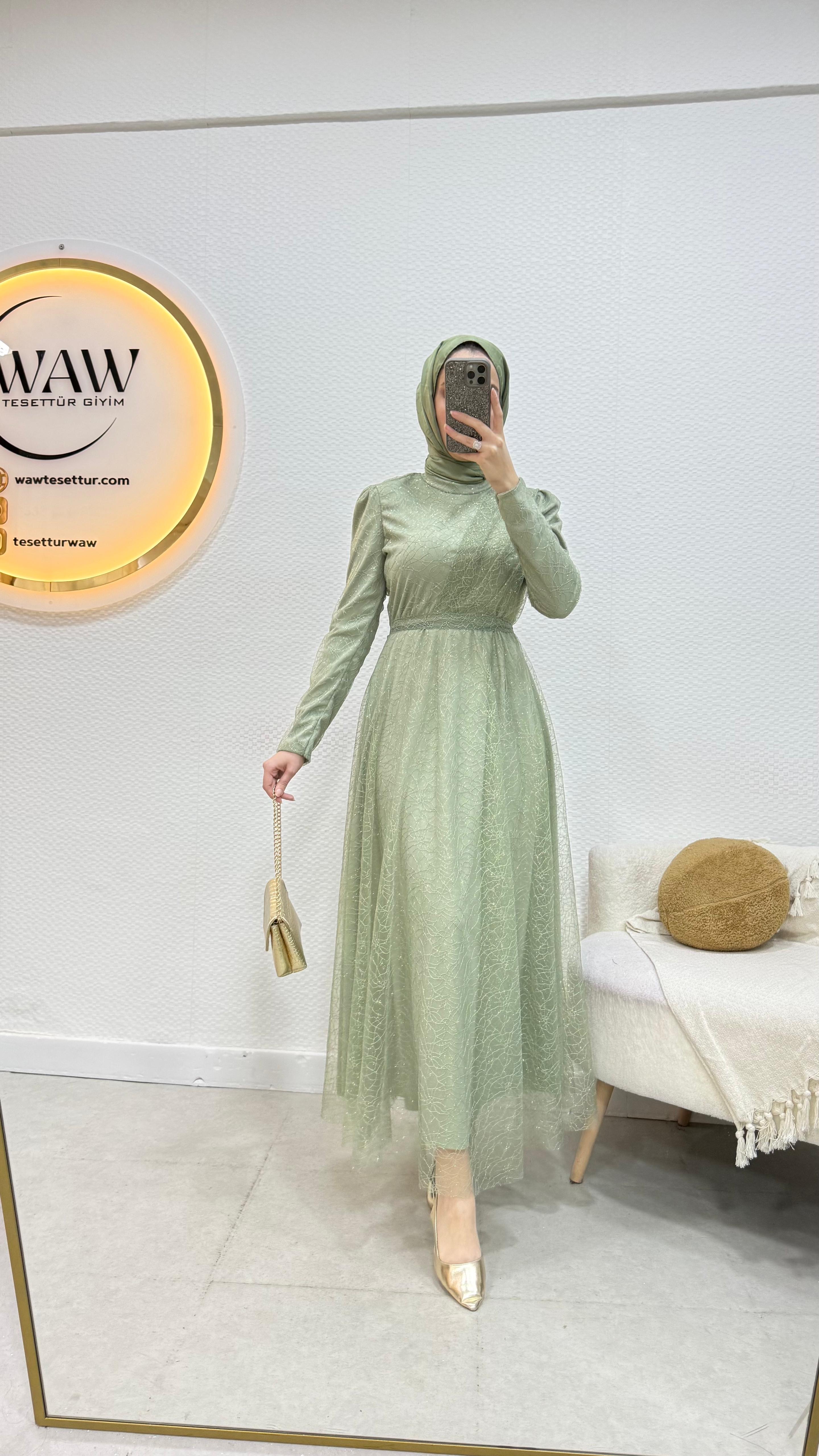 Gelince Haber VerGaye abiye Simli linda kumaştan üretilmiştir Seyyar kemerlidir Önü drapelidir Arka orta gizli fermuarlıdır Boyu : 135cm Mevcut bedenler: 36 / 38 / 40 / 42 / 44 / 46 / 48 Manken ölçüleri: 170 cm – 60 kg 38 beden tercih edilmektedir.
