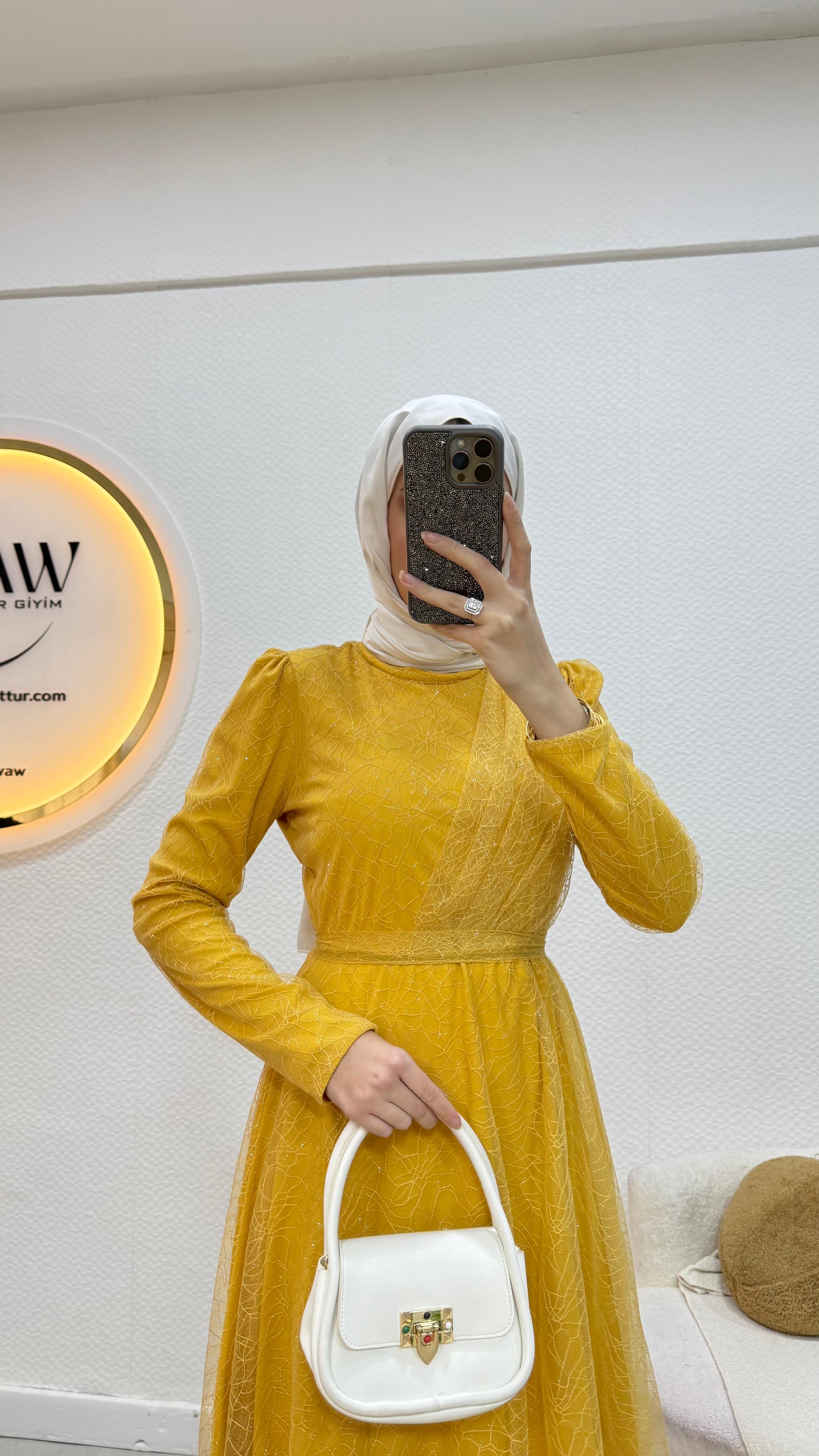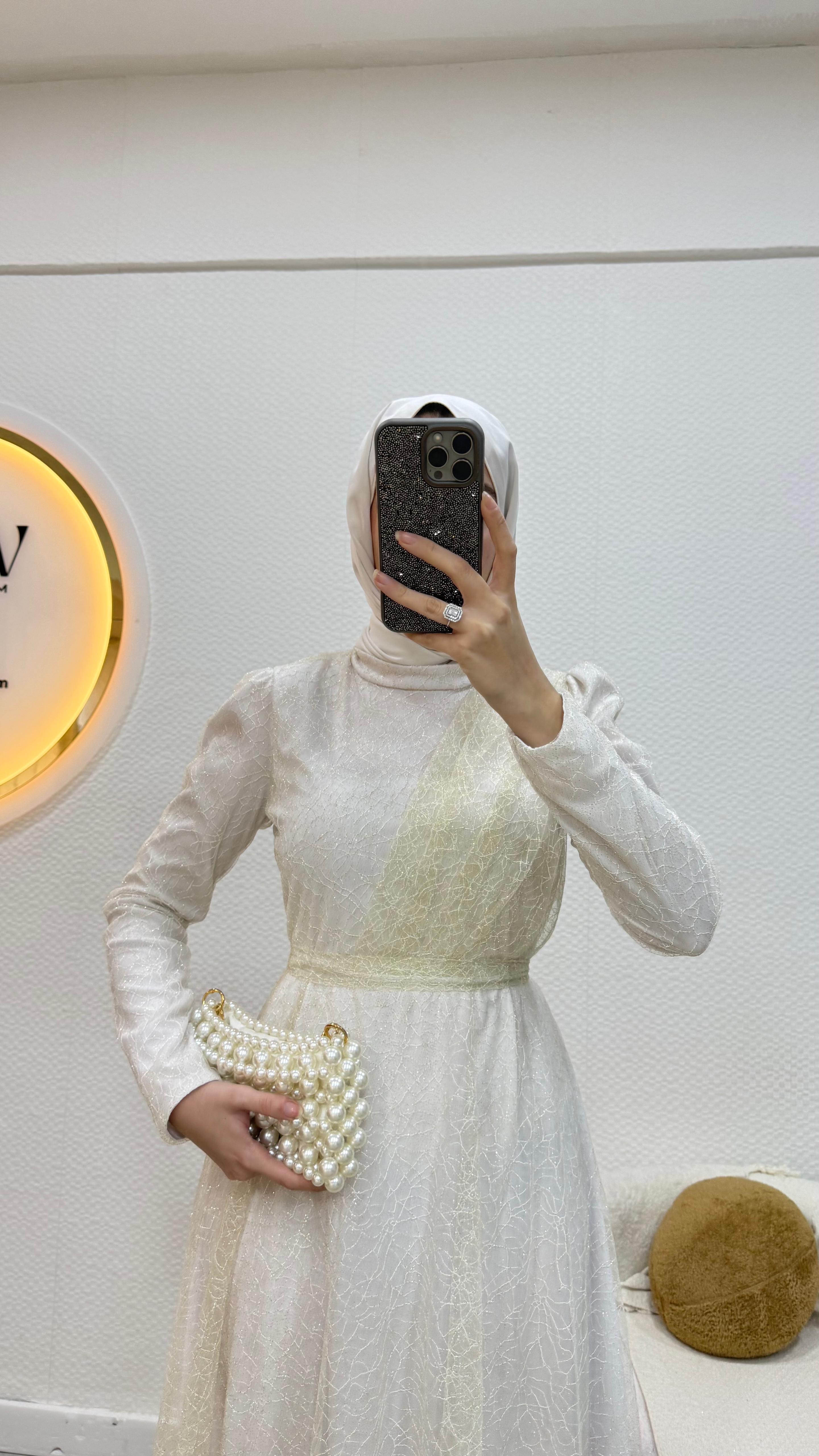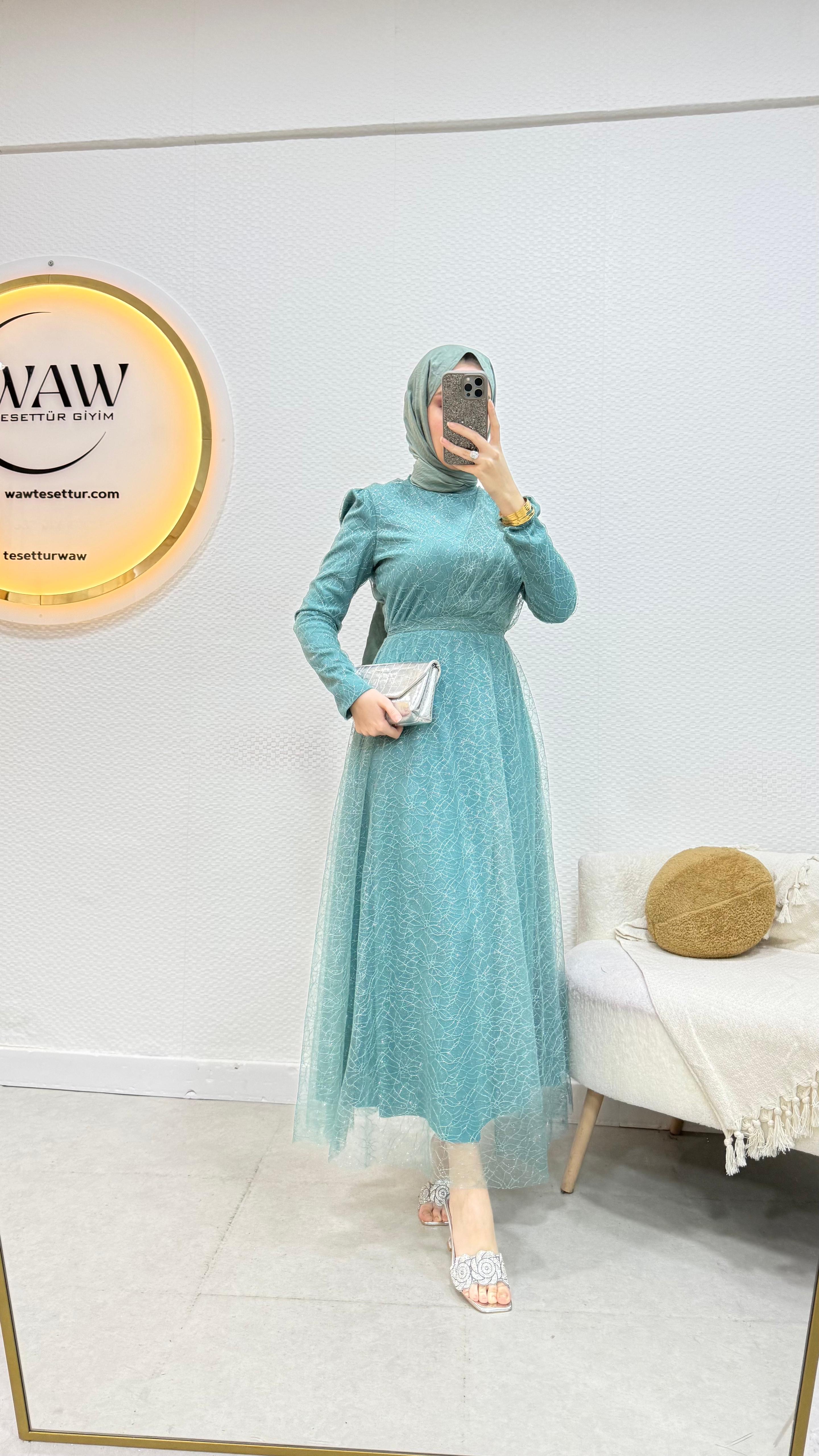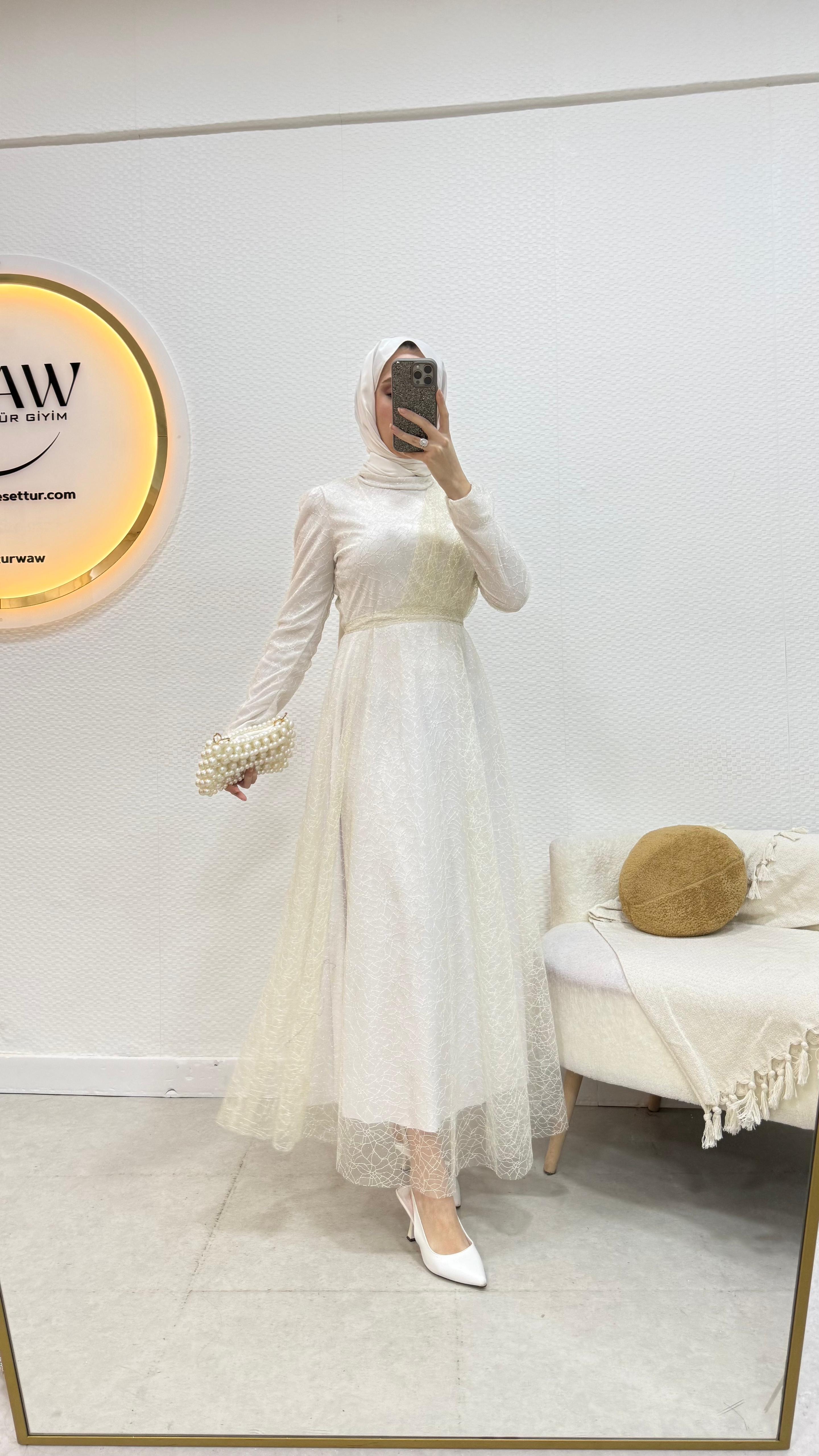 Gelince Haber VerGaye abiye Simli linda kumaştan üretilmiştir Seyyar kemerlidir Önü drapelidir Arka orta gizli fermuarlıdır Boyu : 135cm Mevcut bedenler: 36 / 38 / 40 / 42 / 44 / 46 / 48 Manken ölçüleri: 170 cm – 60 kg 38 beden tercih edilmektedir.