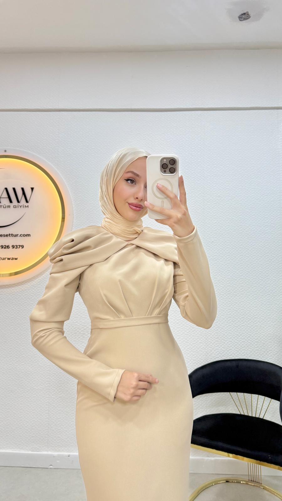 Omuz drape detaylıdır.