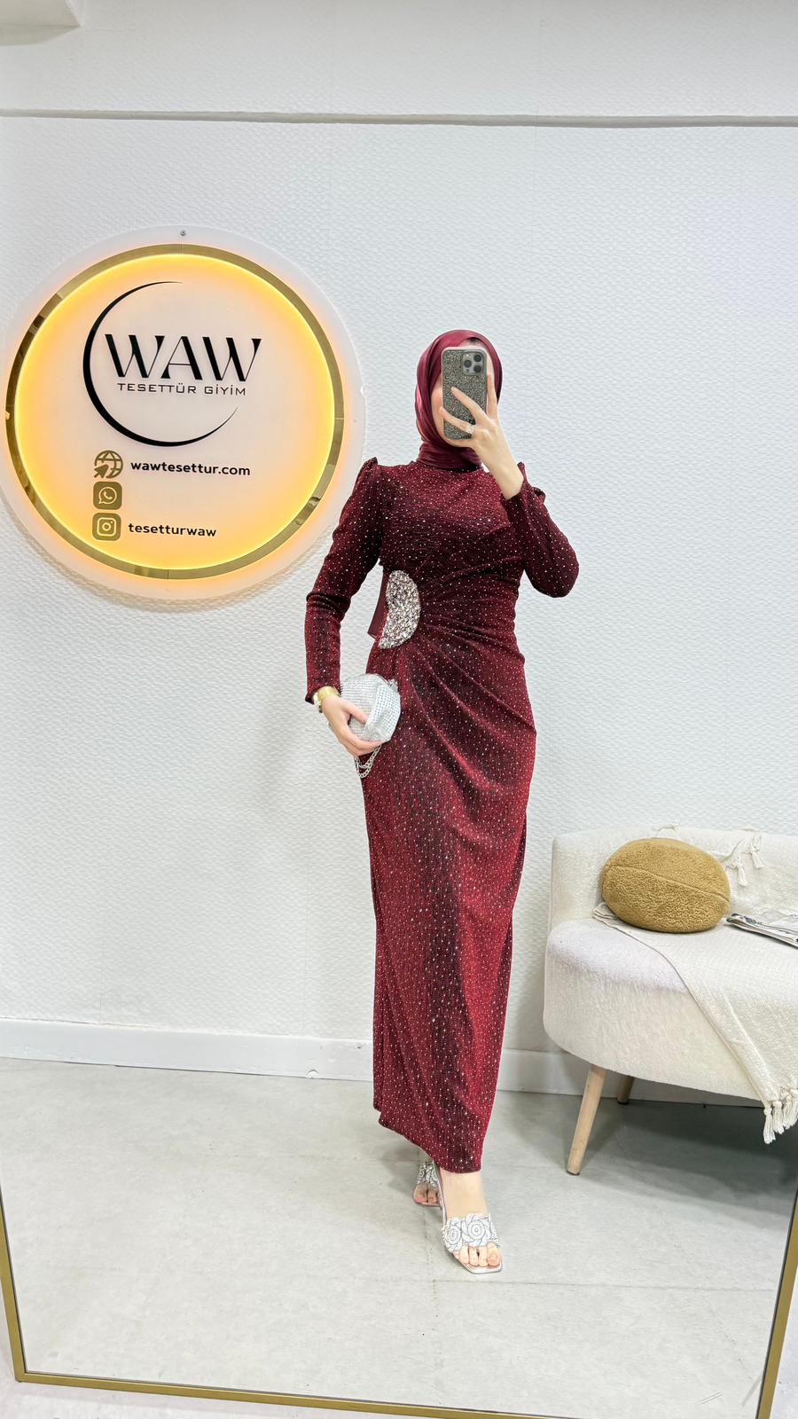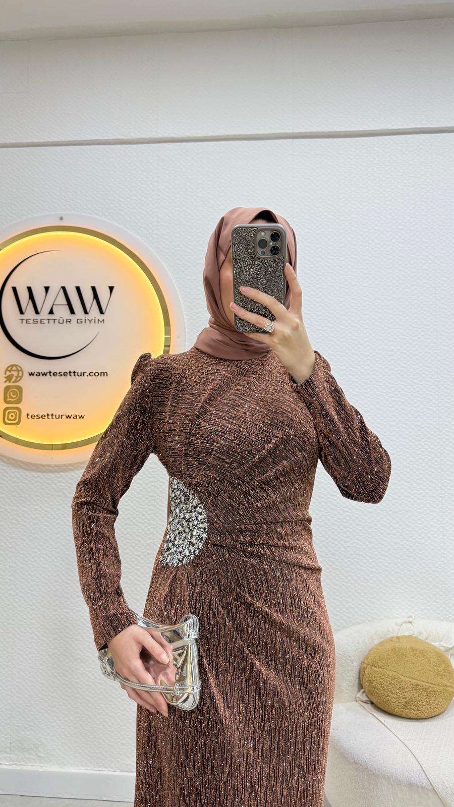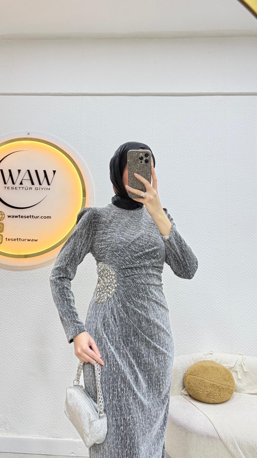 Taşlı bizi kumaştan üretilmiştir Belinde taş işlemeli detay vardırHakim yakadır Arka orta gizli fermuarlıdır 36/38/40/42/44/46 bedenler mevcuttur. Çekim mankeni 170/60kg 38 beden tercih etmektedir
