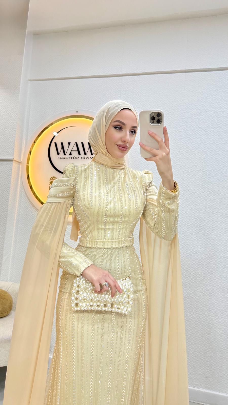 Helena abiye Boncuk taş işlemelidir. Tam kalıptır. Astarlıdır. Arka orta gizli fermuarlıdır. Boy:145cm Bedenler 36/38/40/42/44/46 Manken 170/60kg 38 beden tercih etmektedir