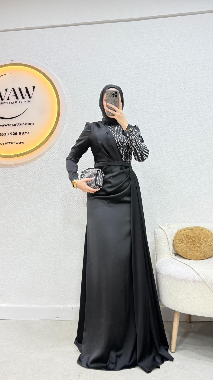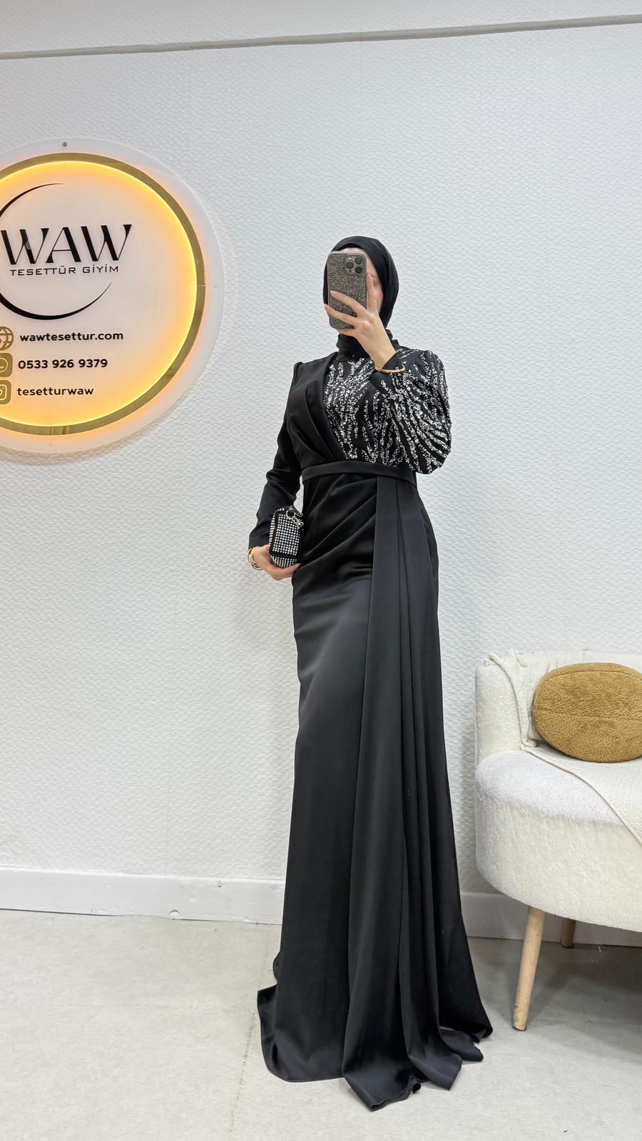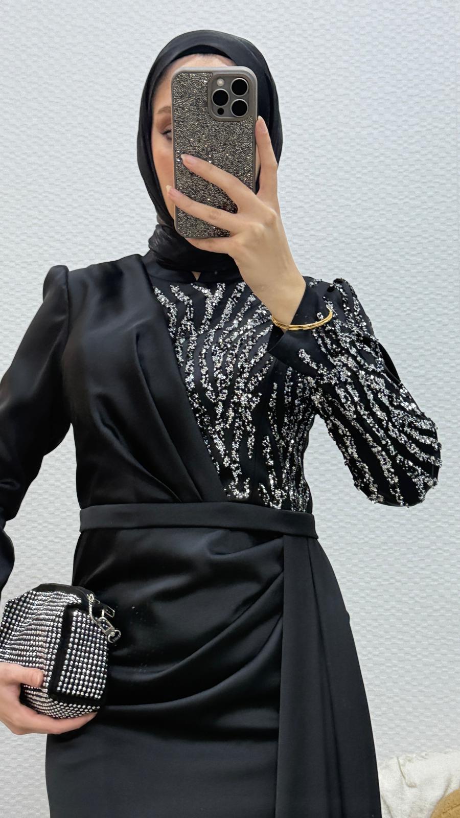 Ürünümüz birinci kalite saten kumaştan üretilmiştir.Seyyar Kemerlidir.36/38/40/42/44 bedenler mevcuttur.Arka orta gizli fermuarlıdır.Ürün boyu 140cm’dir.Ürünümüz dar kalıptır.Manken 170/60kg 38 giymektedir.
