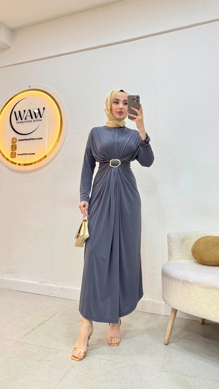 Ürünümüz candy kumaştan üretilmiştir. Belinde halka detayı mevcuttur. Tam kalıptır. Ürün boyu 135 cm’dir. 36/38/40/42/44/46/48 bedenlerimiz mevcuttur. Çekim mankeni 170/60kg 38 beden tercih etmektedir.