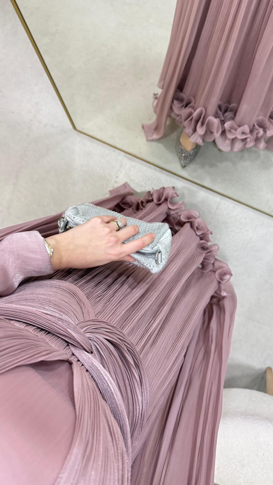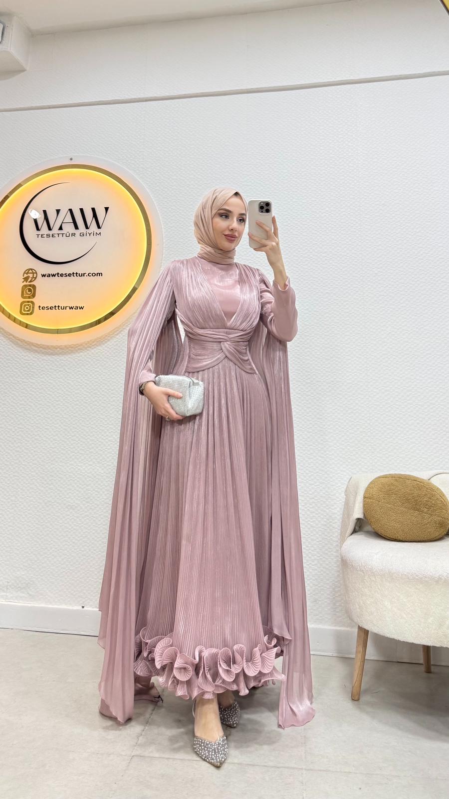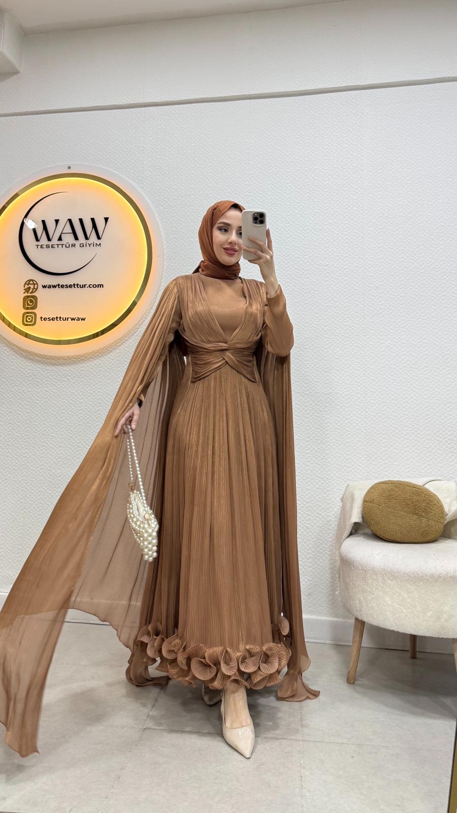 İlora Abiye Janjan sofia kumaştan üretilmiştir.Orta arka gizli fermuarlıdır. Tam kalıptır.Boy:145 cmBedenler: 36/38/40/42/44