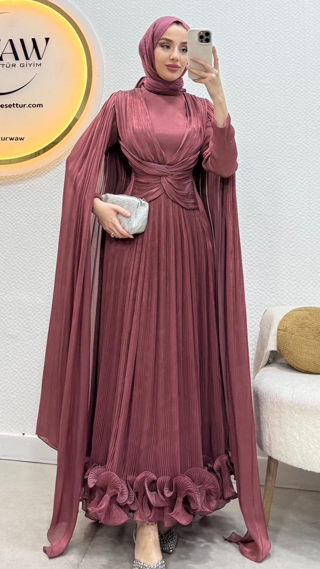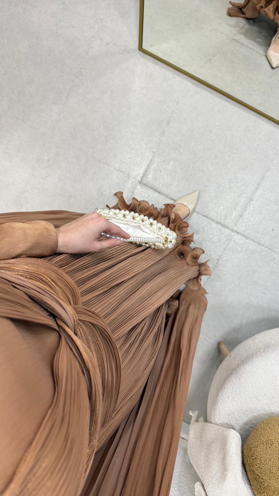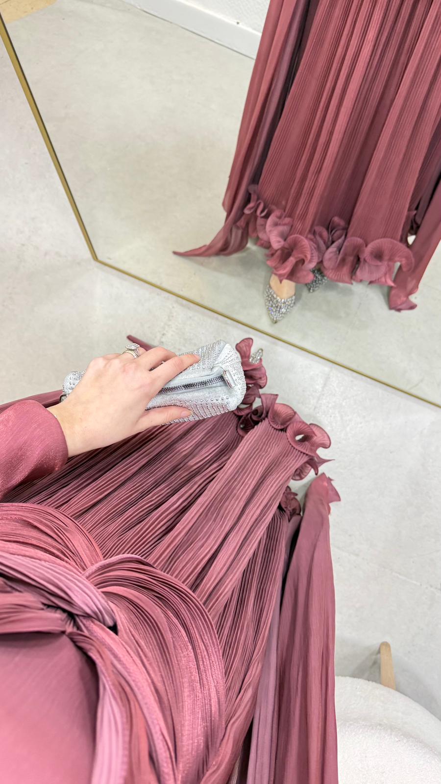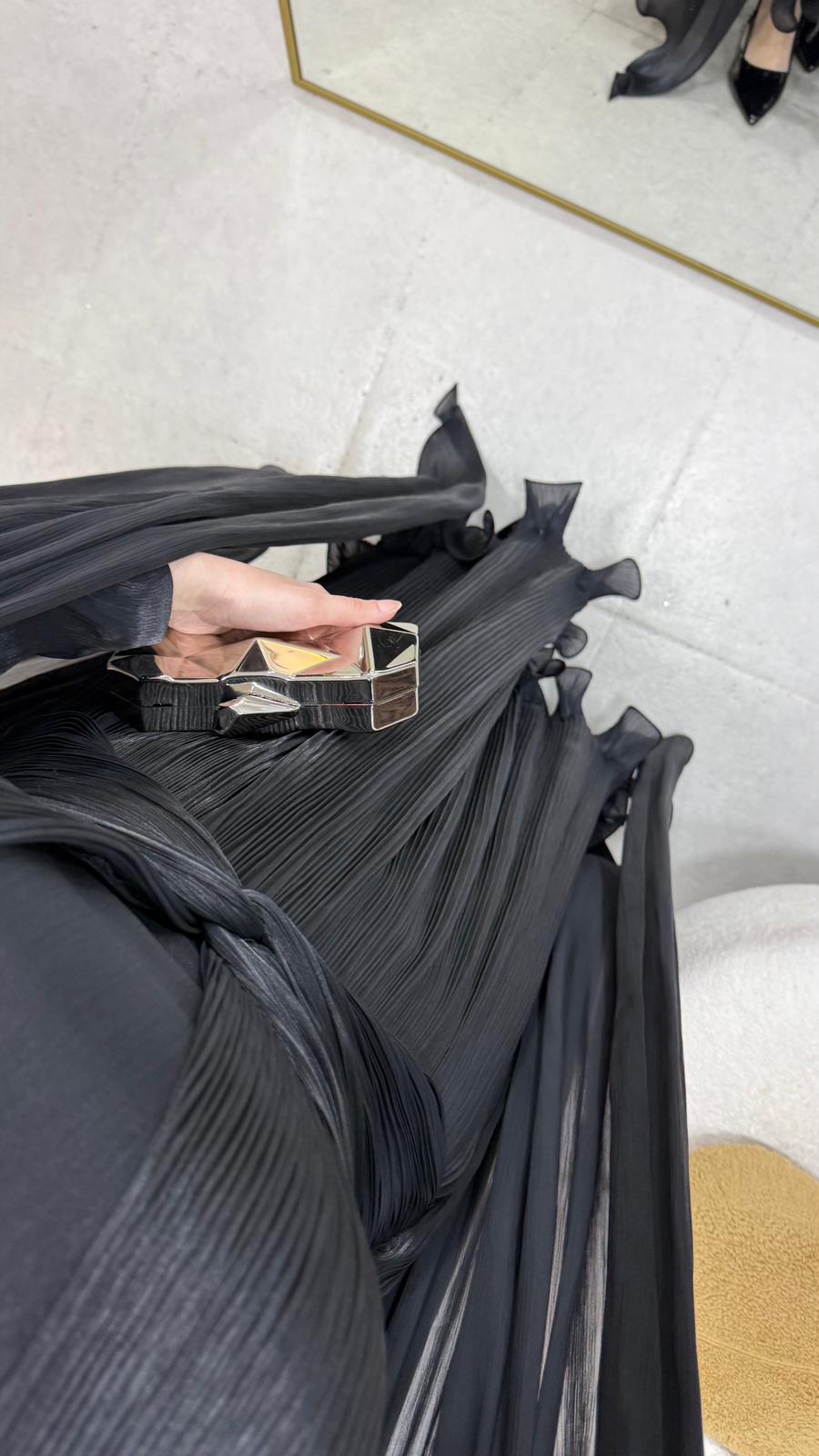 İlora Abiye Janjan sofia kumaştan üretilmiştir.Orta arka gizli fermuarlıdır. Tam kalıptır.Boy:145 cmBedenler: 36/38/40/42/44