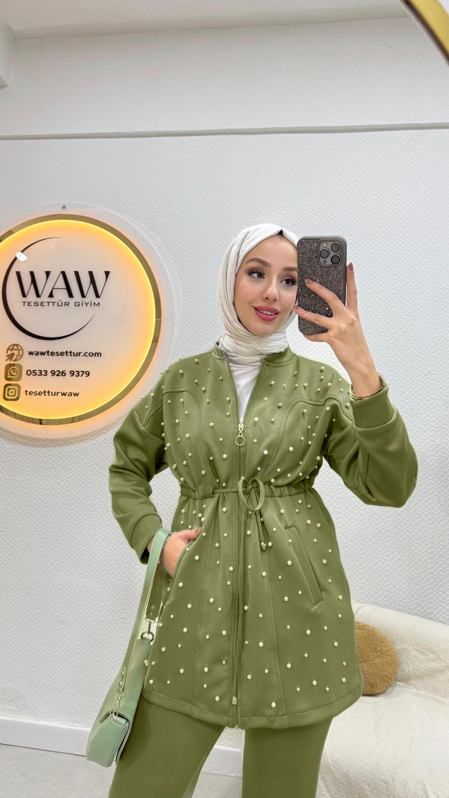 Tuniğimiz fermuarlıdır,beli ayarlanabilir bağlama detaylıdır.