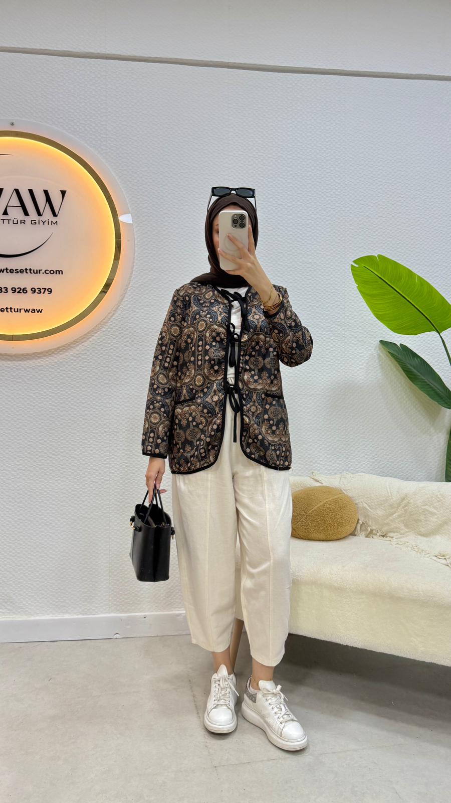 Kapitone kumaştan üretilmiştir.Önü kurdele detaylıdır.36/38/40/42/44 bedenlerimiz mevcuttur.Çekim mankeni 170/60kg 38 bedeni tercih etmektedir.