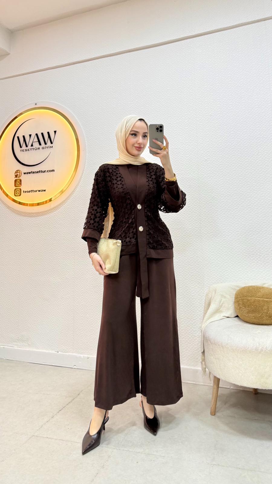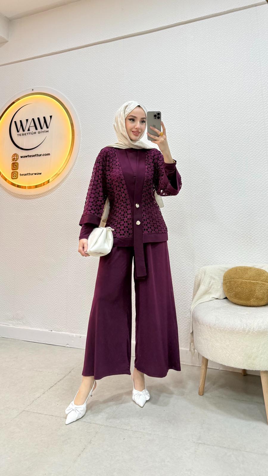 Candy kumaştan üretilmiştir Rahat kalıptırCeket 65 cmTişört 55 cmAlt pantolon 89 cm Takımımız 3 parçadan oluşmaktadır Önü düğmelidirBedenler 36/38/40/42/44/46 Çekim mankeni 170/60kg 38 beden tercih etmektedir