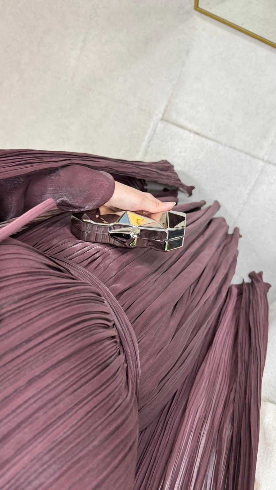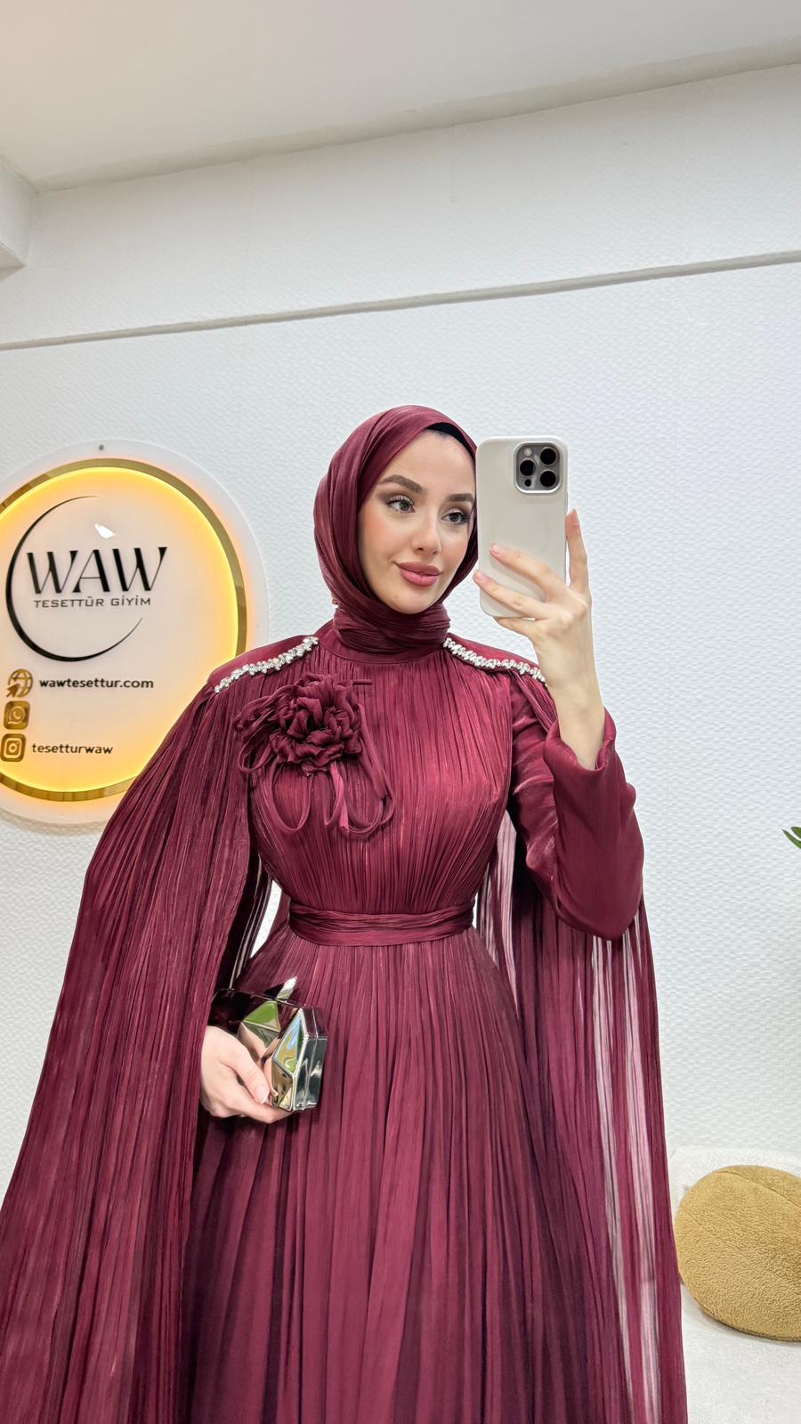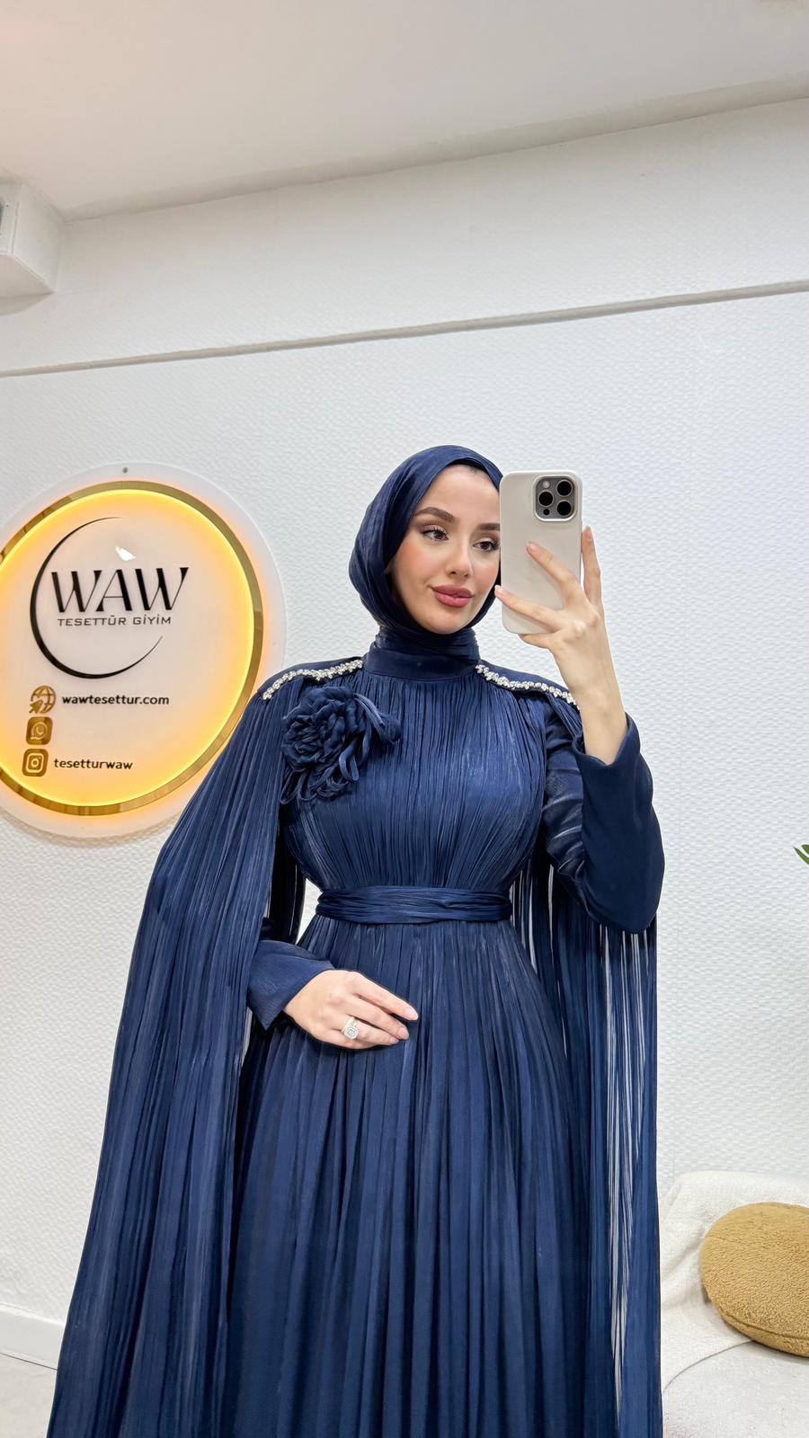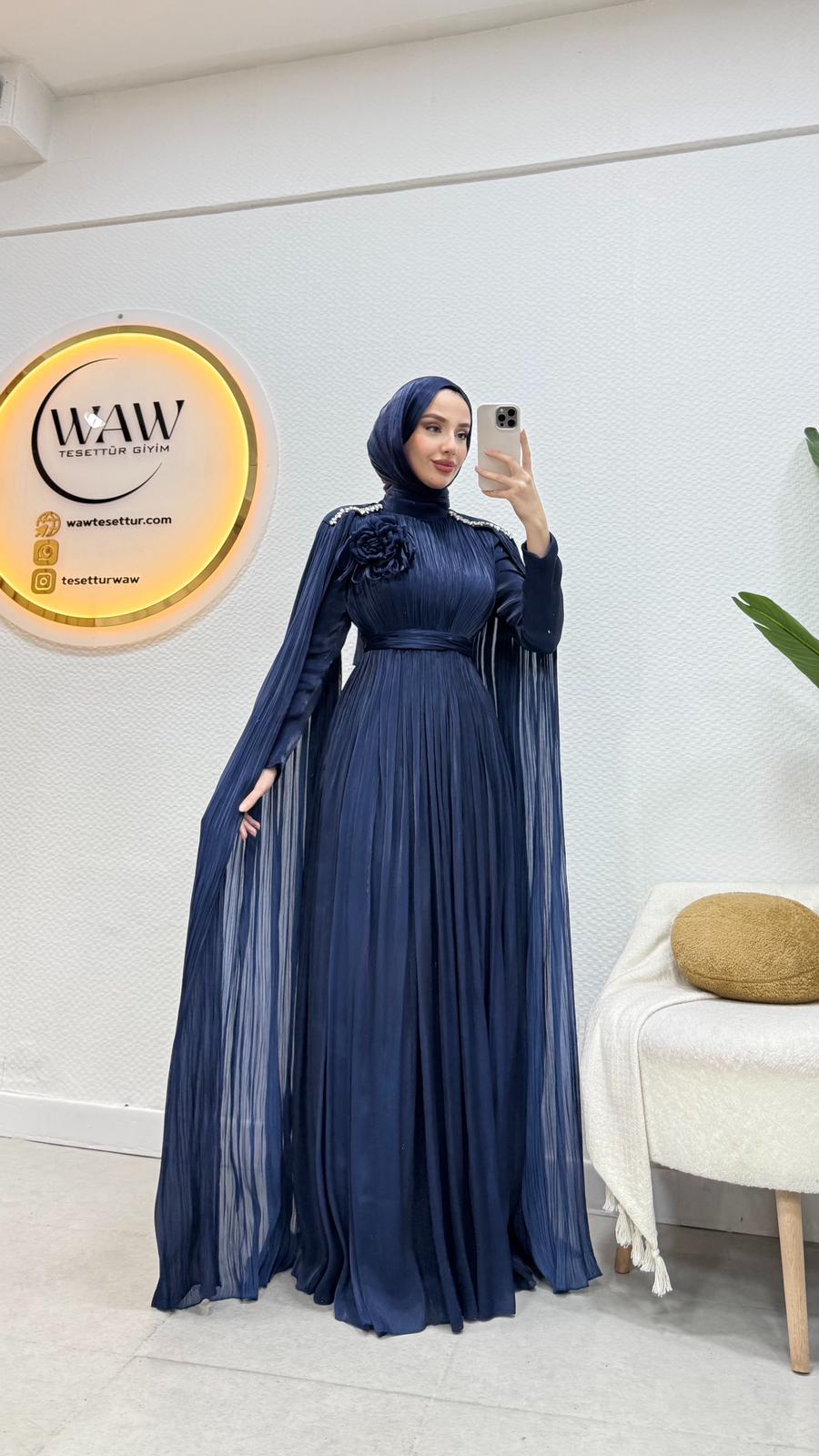Karyel abiye Janjan sofia kumaştan üretilmiştir.Omuz taş işlemelidir.Tam kalıptır.Arka orta gizli fermuarlıdır. Boy: 145cmBedenler: 36/38/40/42/44