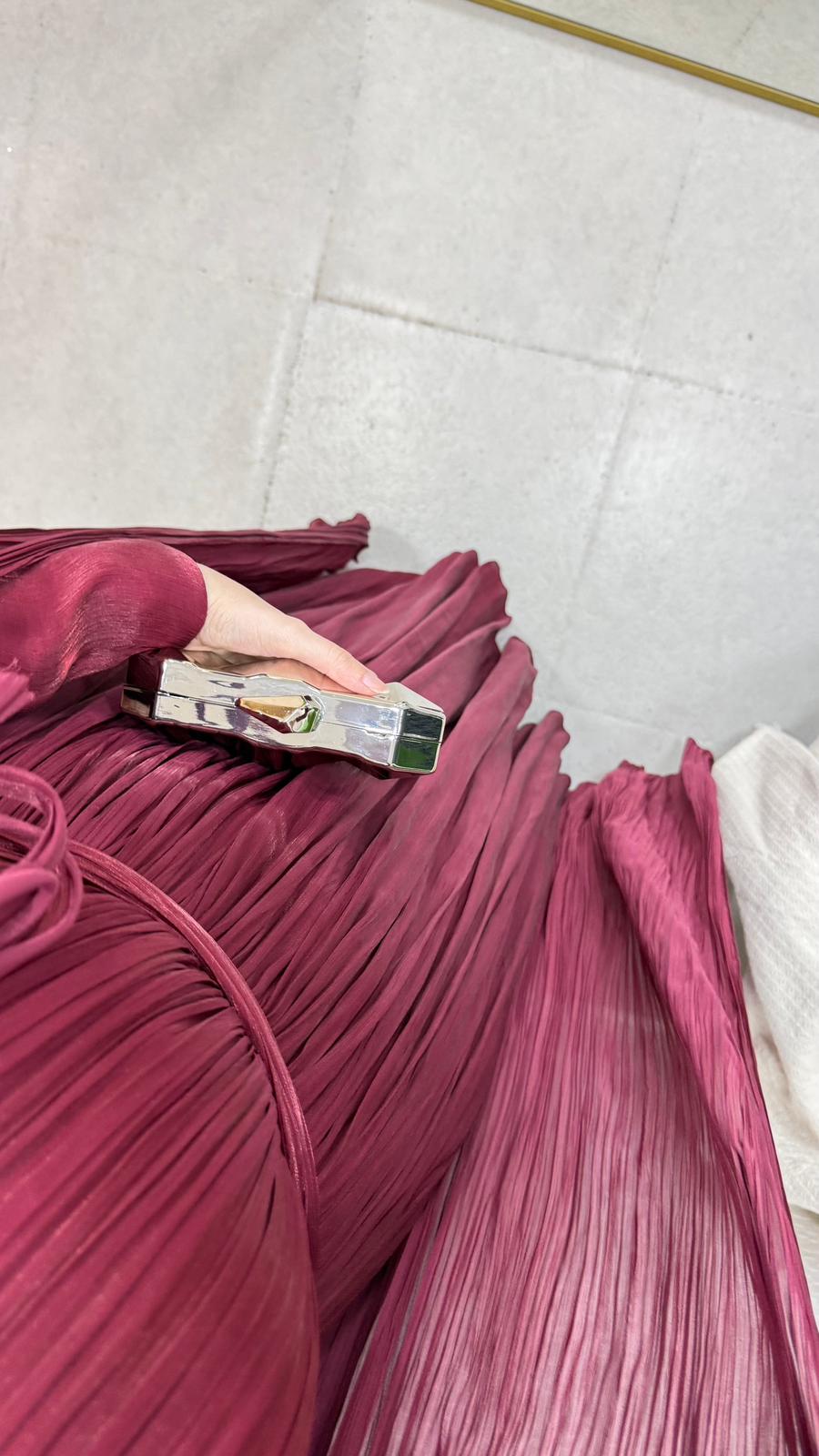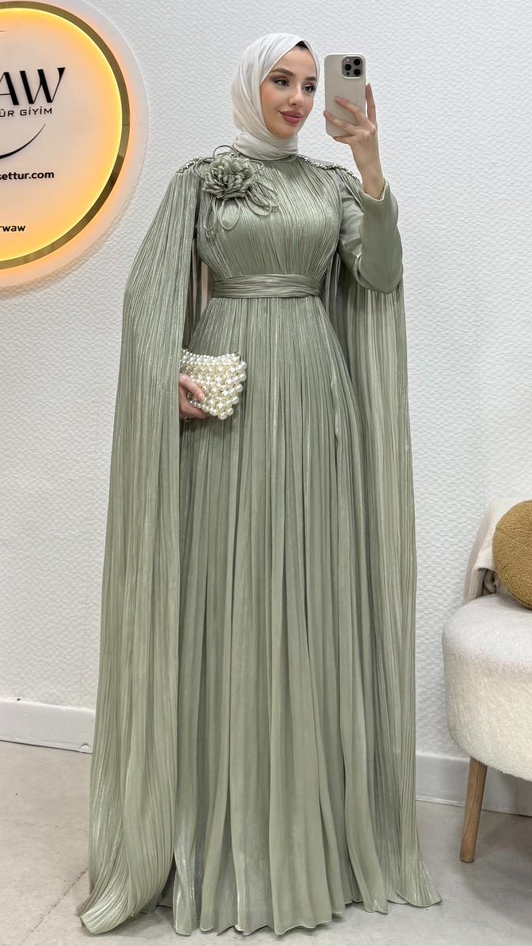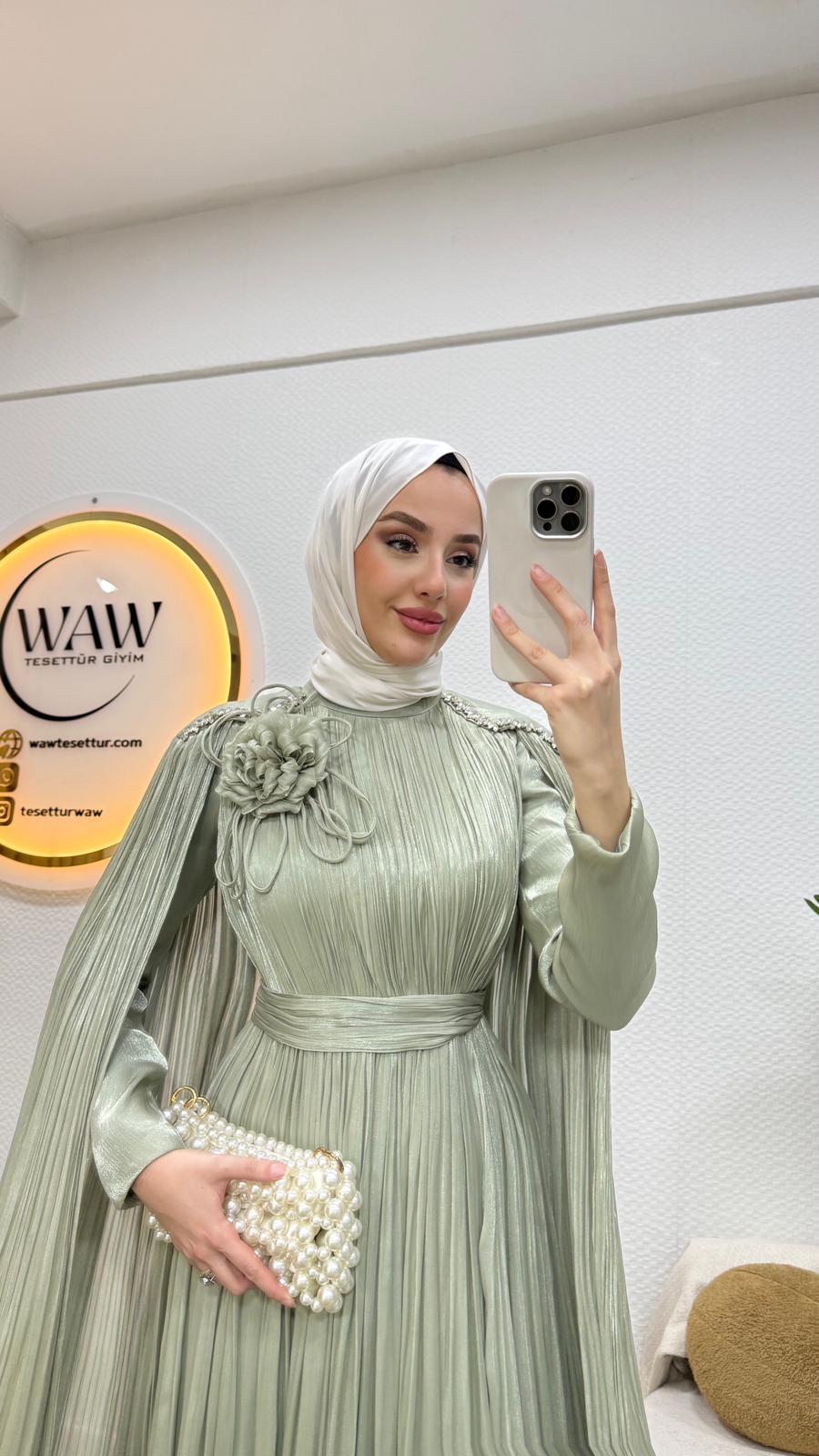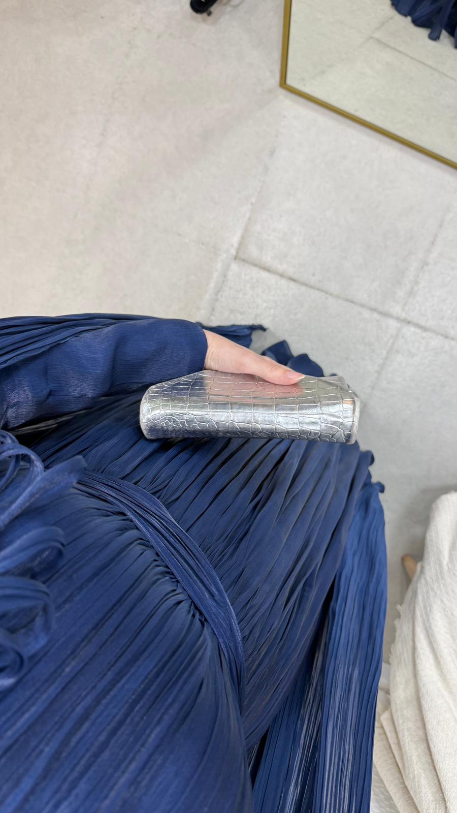 Karyel abiye Janjan sofia kumaştan üretilmiştir.Omuz taş işlemelidir.Tam kalıptır.Arka orta gizli fermuarlıdır. Boy: 145cmBedenler: 36/38/40/42/44