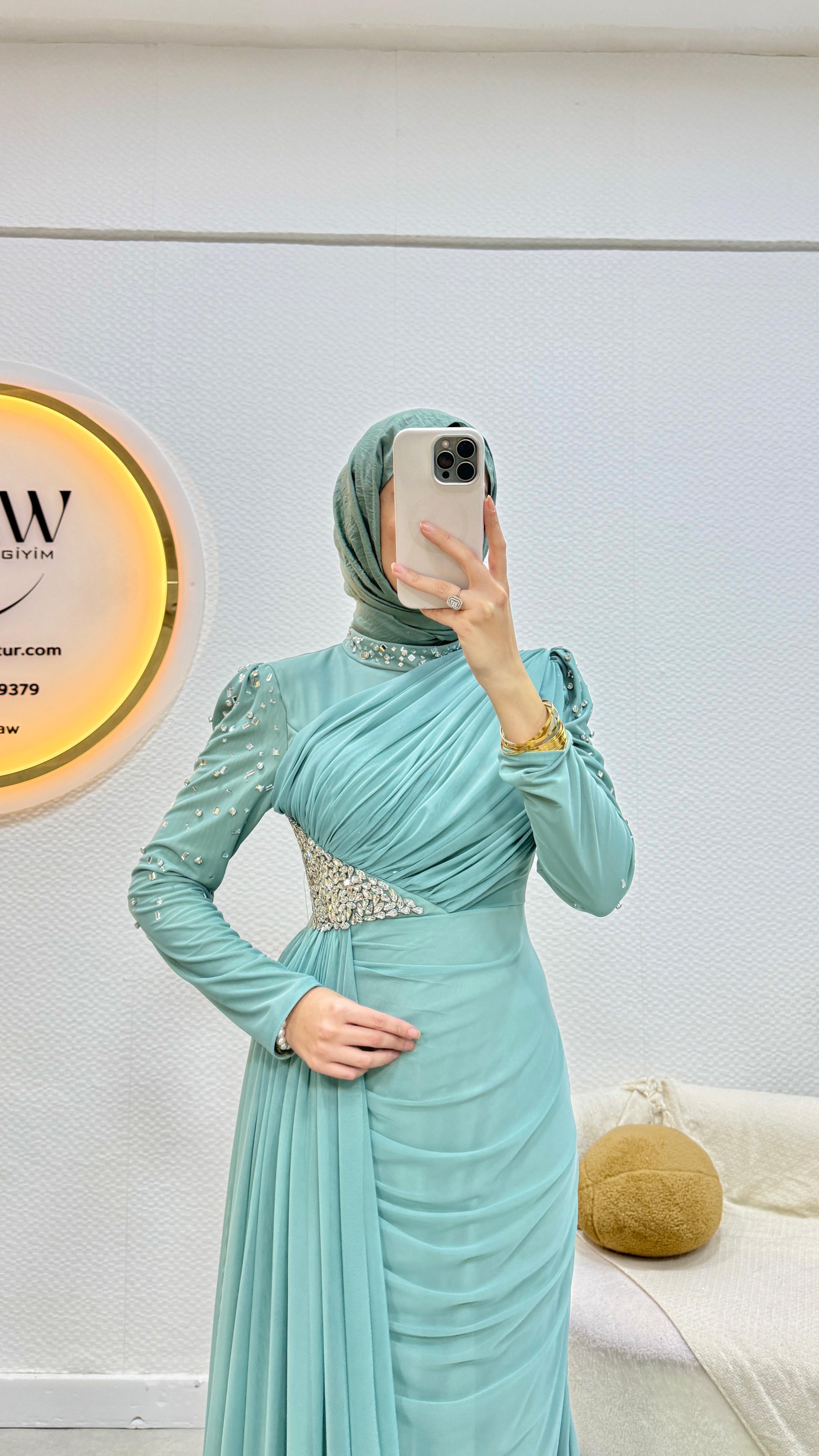 Ürünümüz birinci kalite tül kumaştan üretilmiştir. taş detaylıdır. Hakim yakadır. arka orta gizli fermuarlıdır. Kuyruk detaylıdır. 36/38/40/42/44 bedenler mevcuttur. astarlıdır iç göstermez. Manken 170:60kg 38 giymektedir.