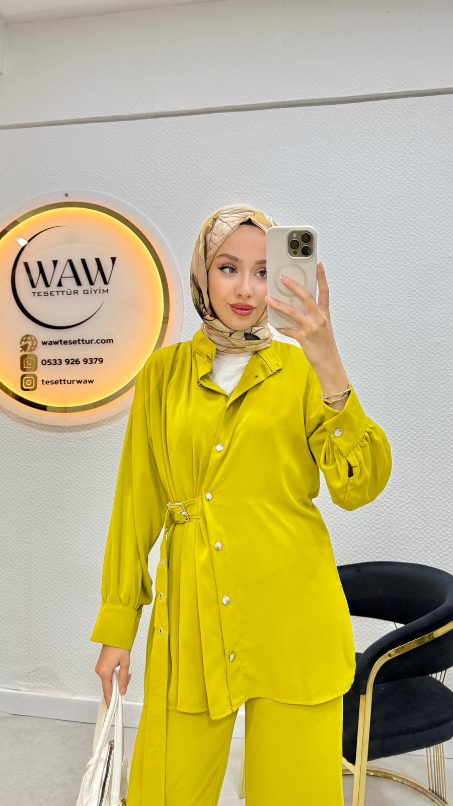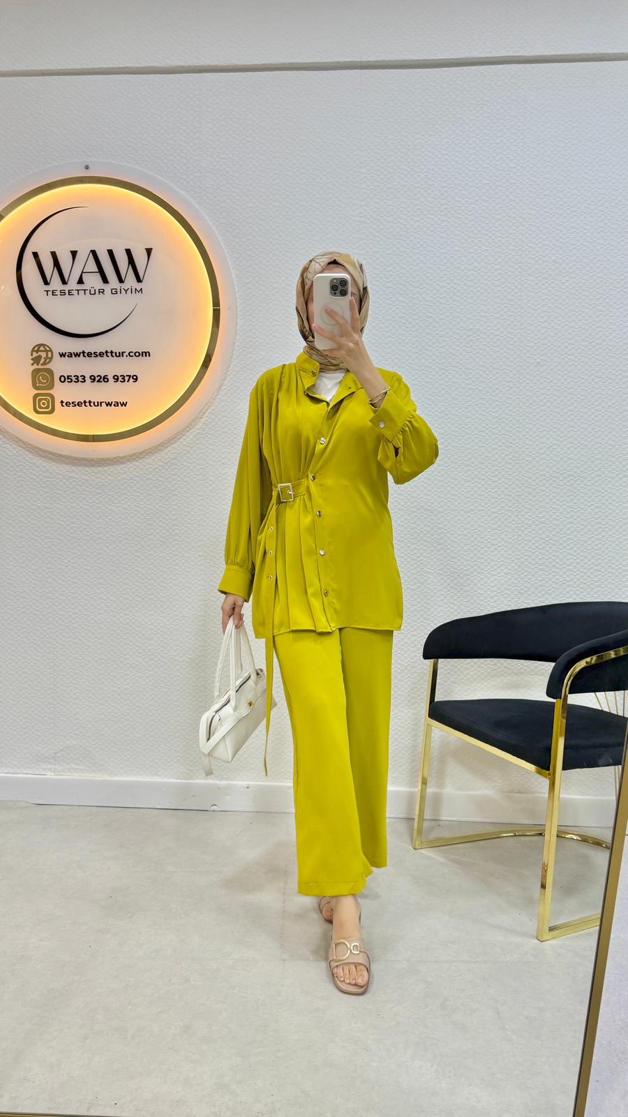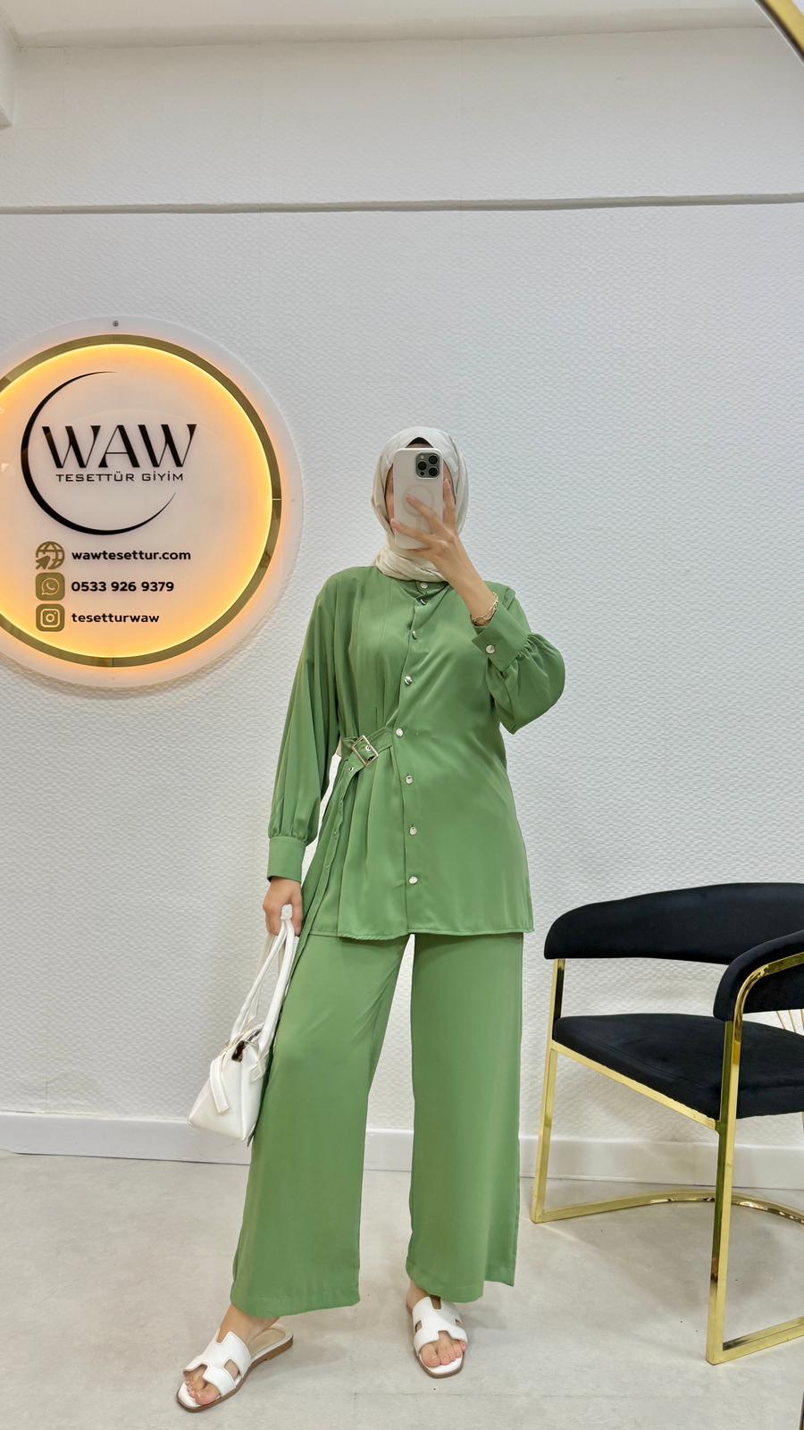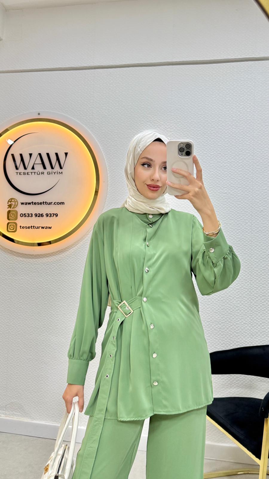 Kumaşı 1. kalite dubai kumaştır.Belinde kemer detayı mevcuttur.36/38/40/42/44 bedenlerimiz mevcuttur Üst 76cm, alt 105cm'dir.Çekim mankeni 170/60kg 38 beden tercih etmektedir