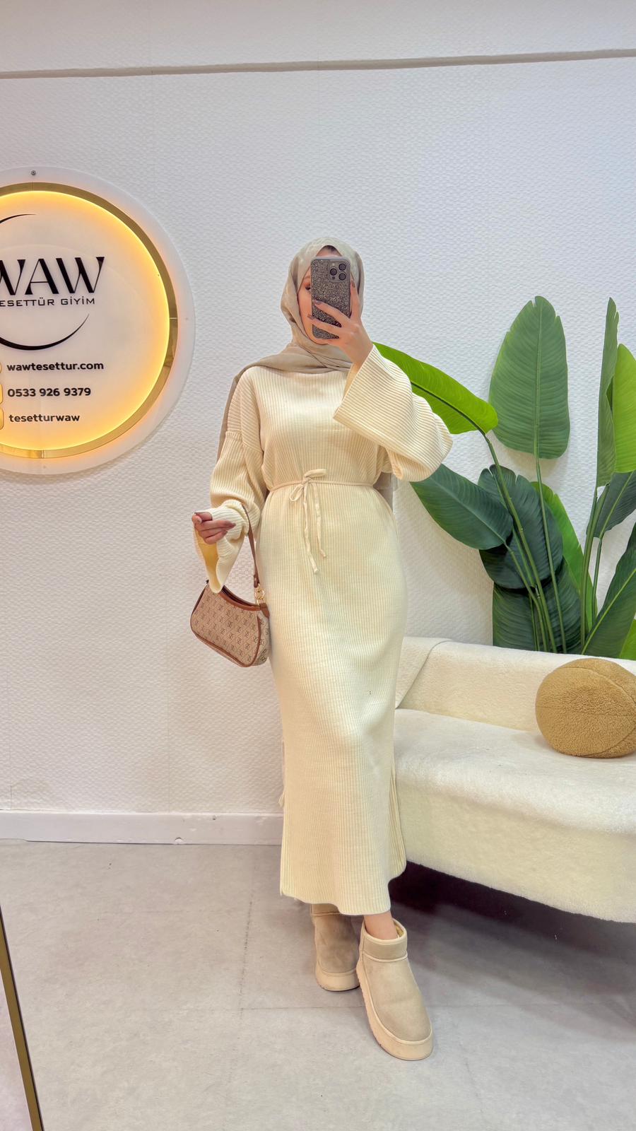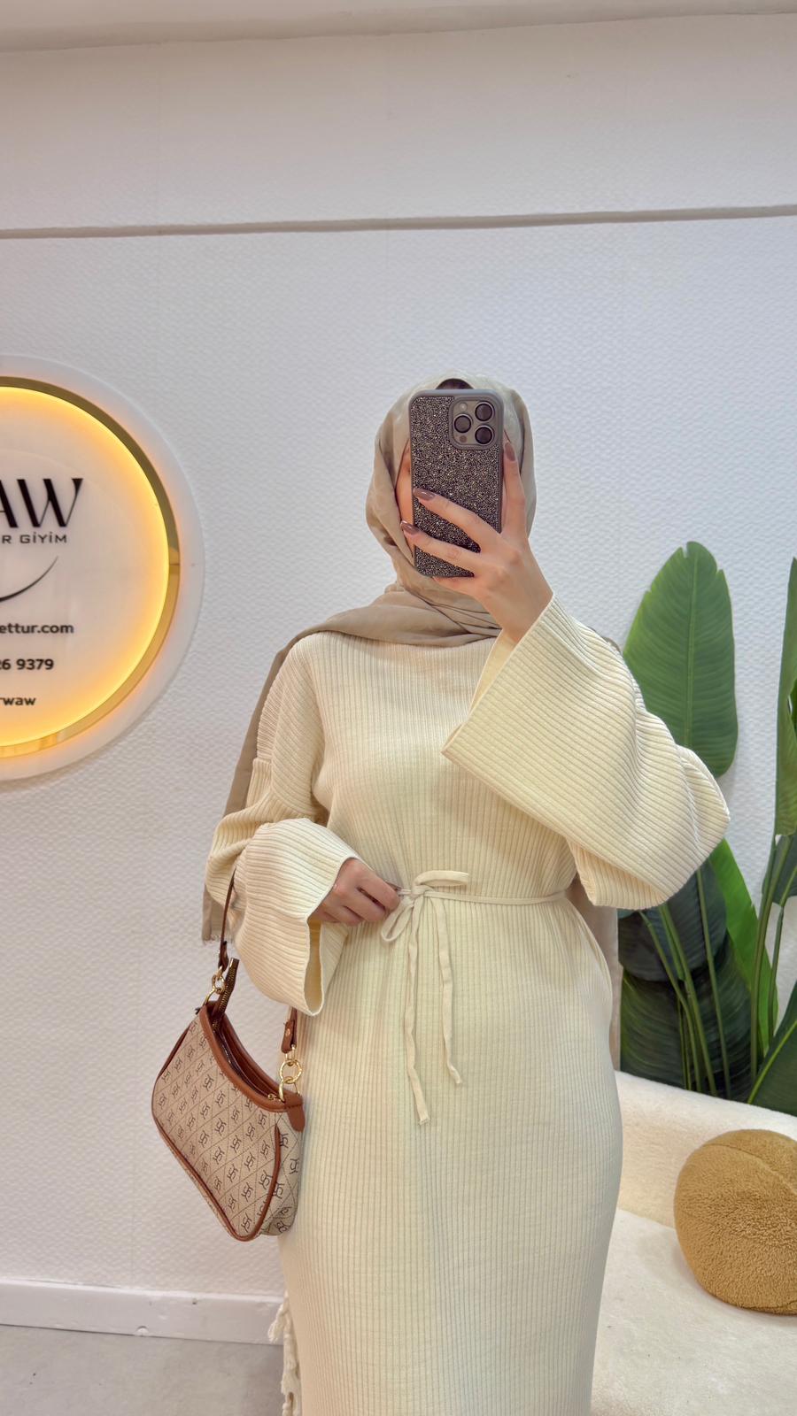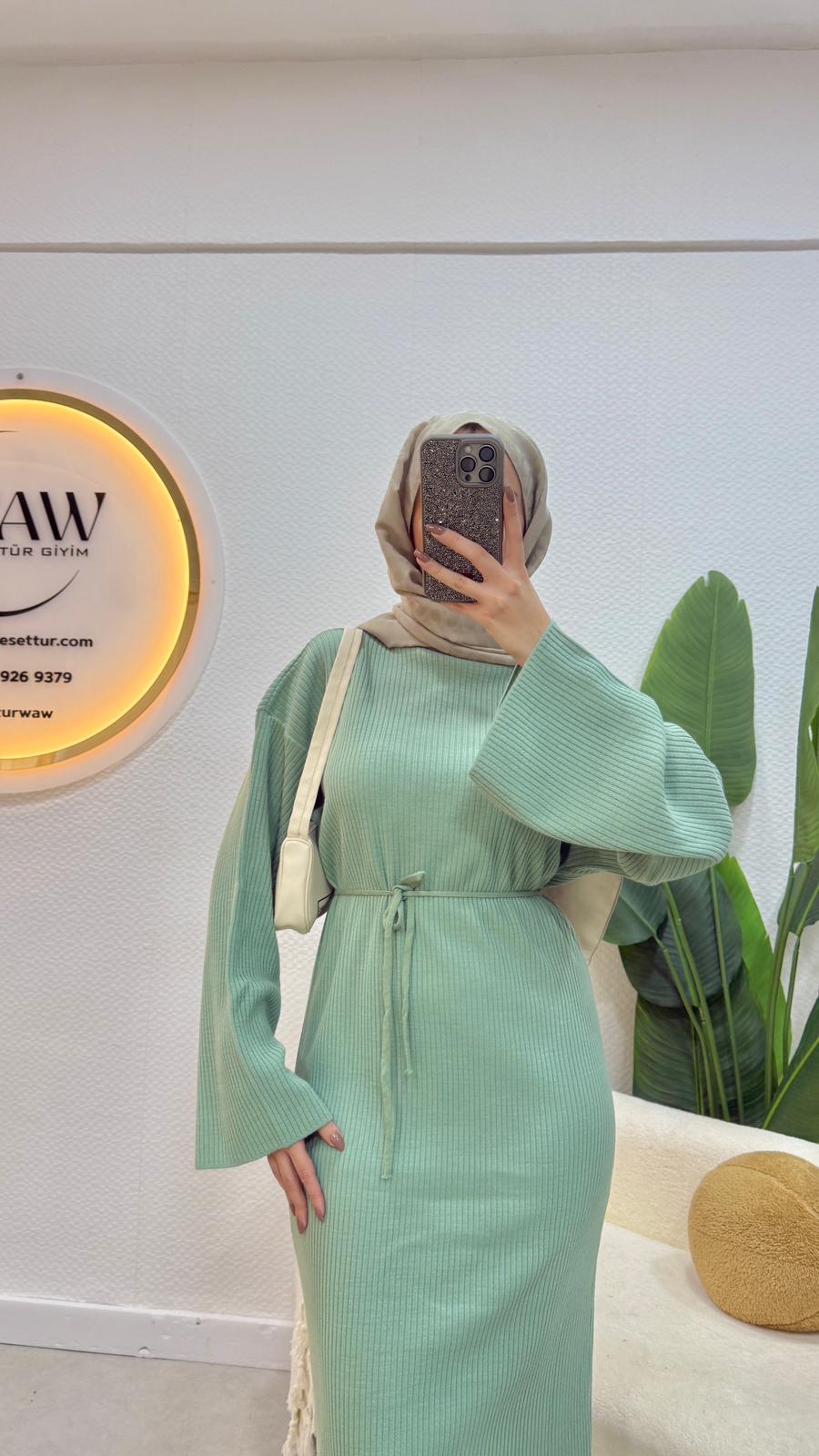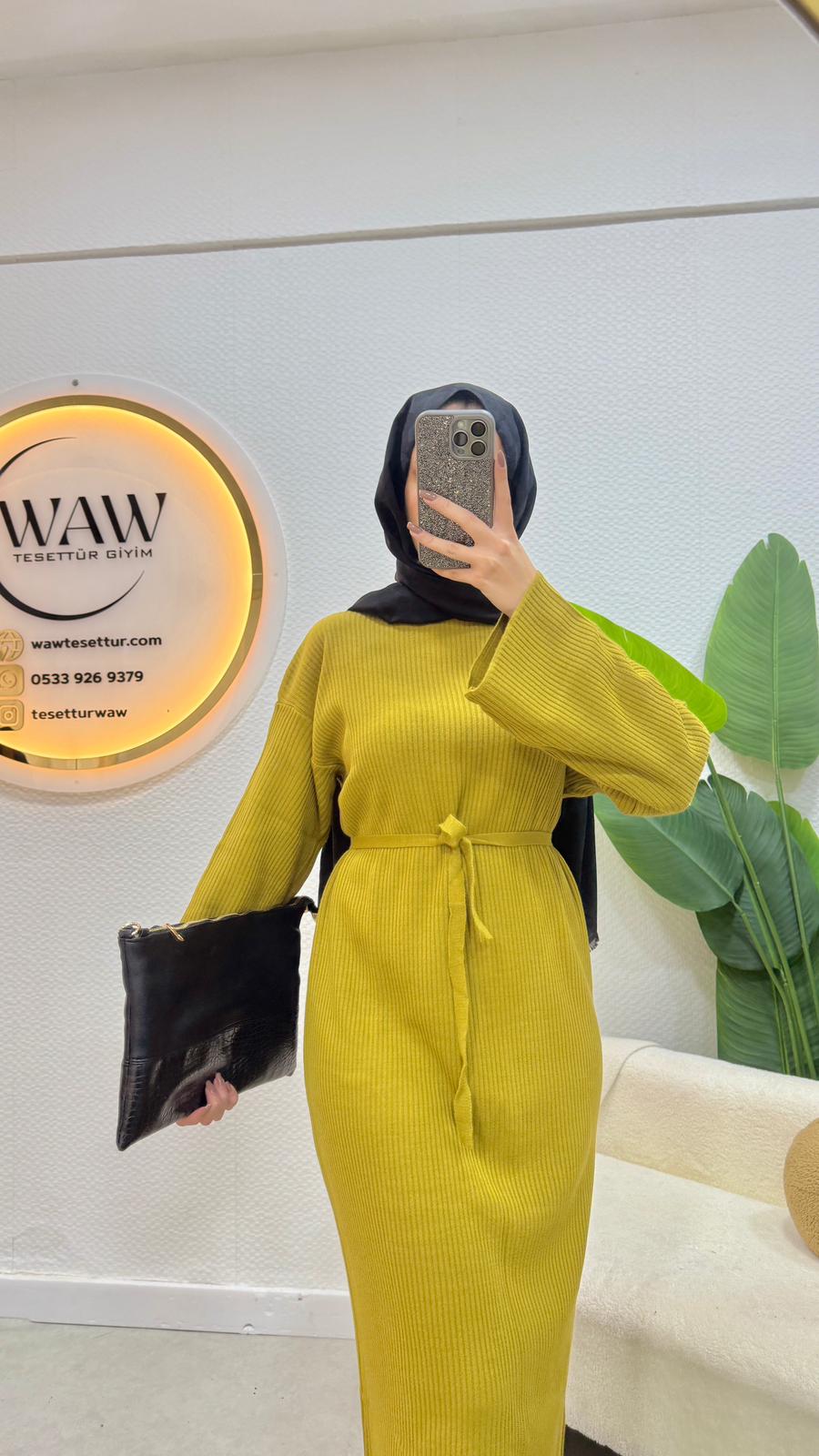 Triko kumaştan üretilmiştir Seyyar kemerlidir Boyu 135cm’dir İspanyol kol detaylıdır Standart bedendir (36/44 uyumludur )Çekim mankeni 170/60kg’dır.