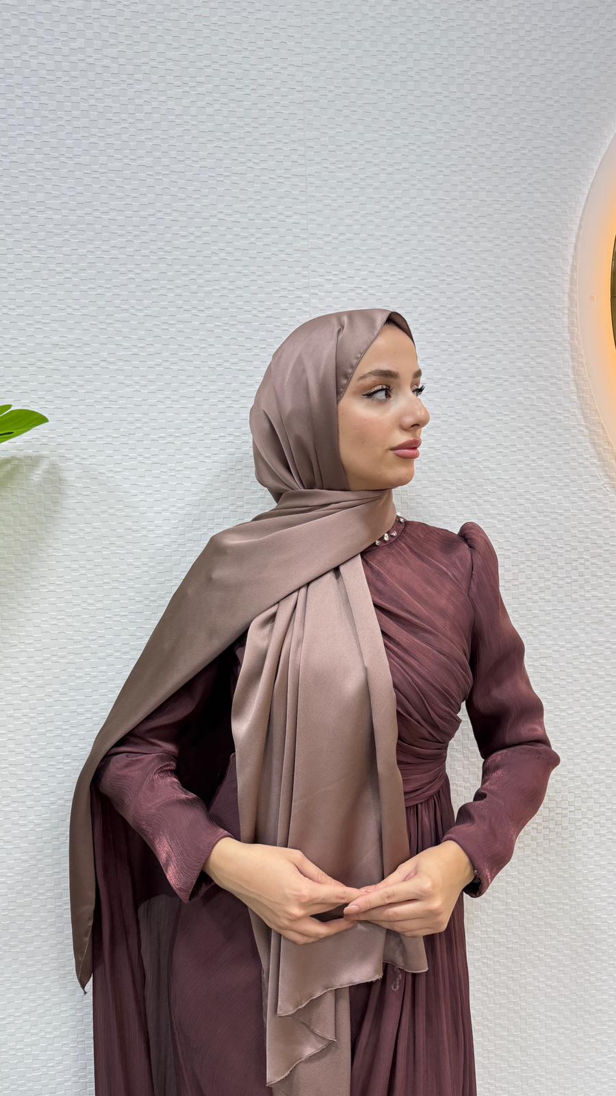 Kobe Saten Şal - Vizon