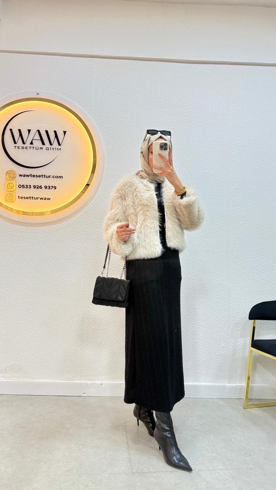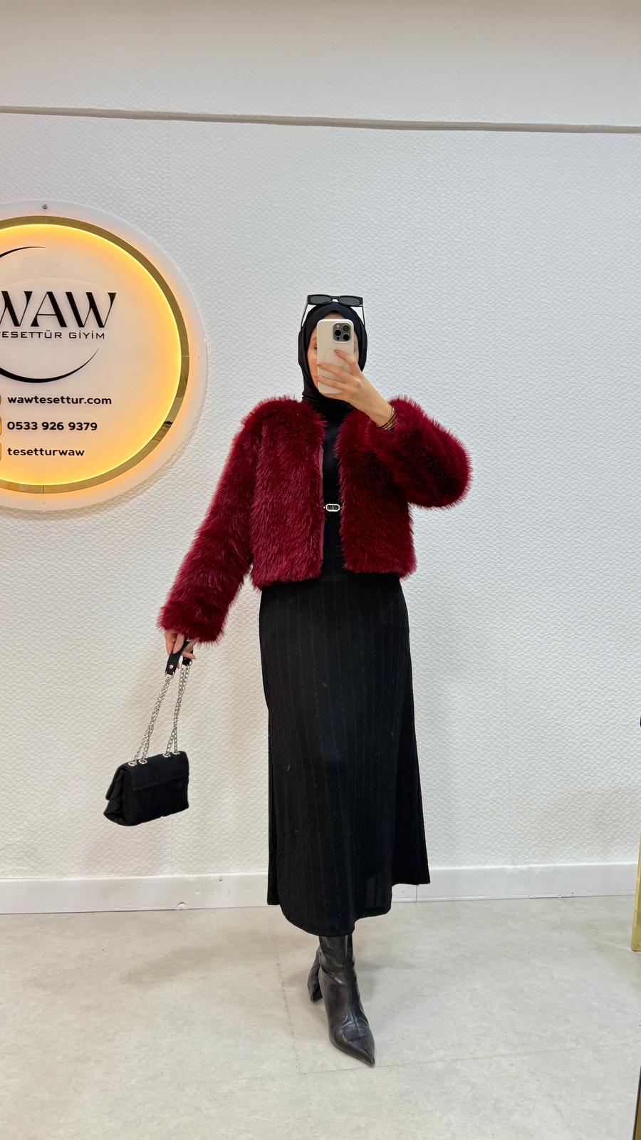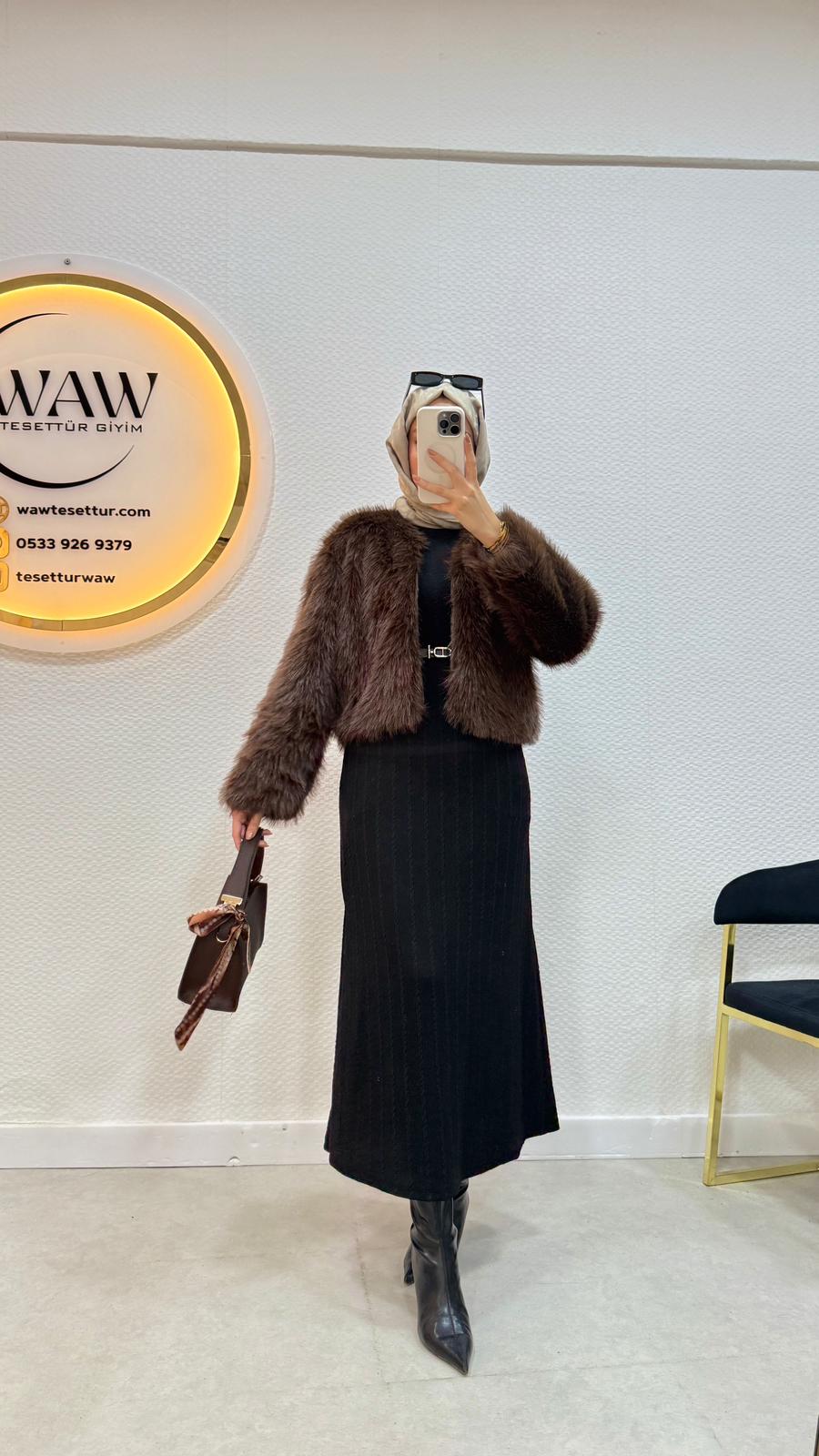 Kumaş: mako kürk kumaştan üretilmiştir.36/38/40/42/44 bedenleri mevcuttur.Çekim mankeni 170/60kg 38 bedeni tercih etmektedirÜrün boyu 50cm'dir.