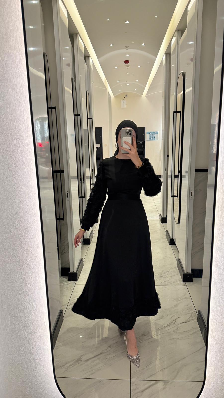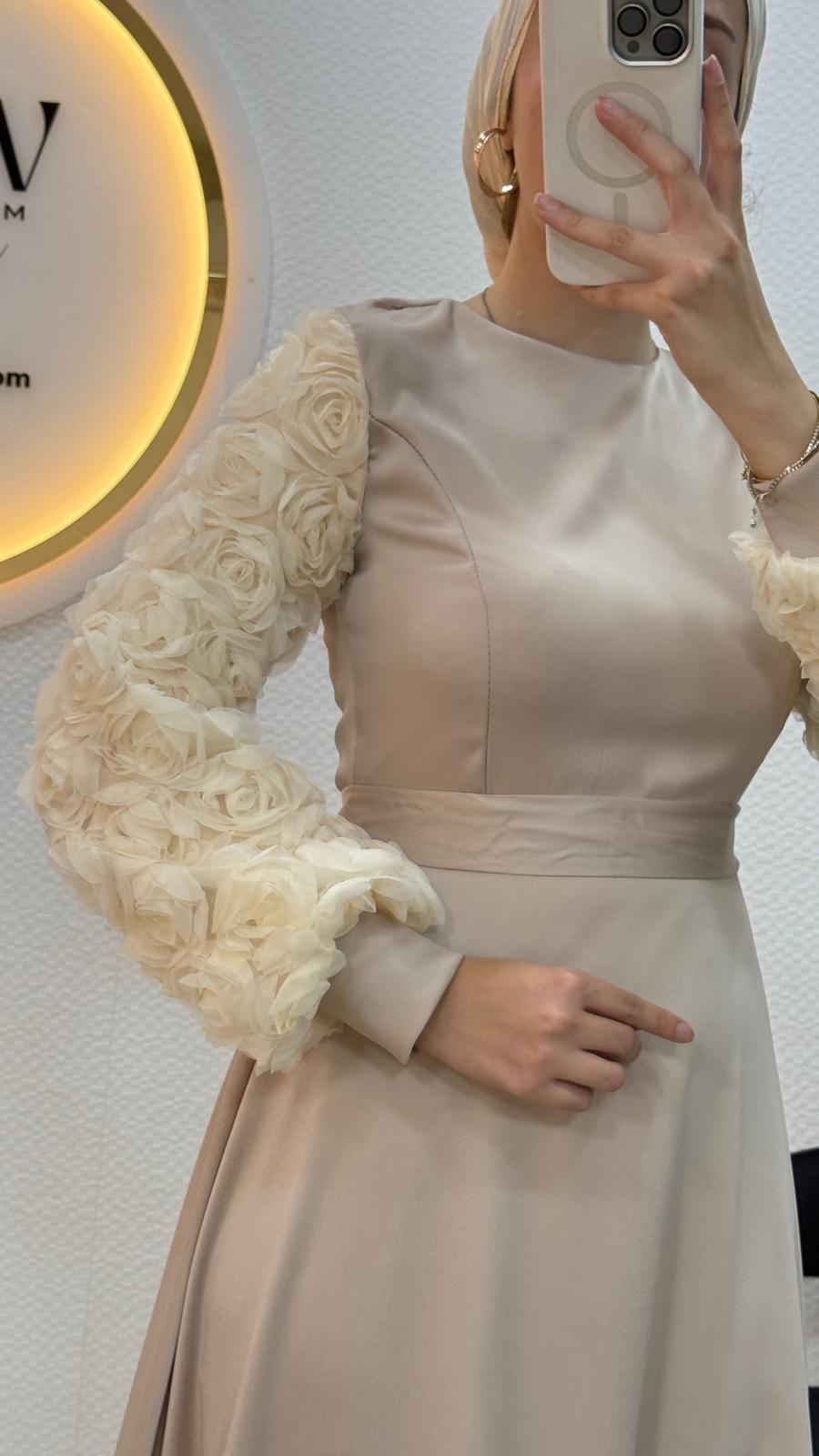 Kolları ve etek uçları çiçek detaylıdır.