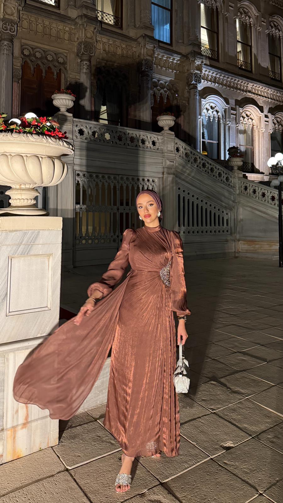 Ürün boyu :140 cm Beden seçenekleri :36/38/40/42/44/46 Kumaş:organize hafif parlak özel dokulu kumaş tam astarlıdır iç göstermez.Kalıp : tam kalıptır.Manken 38 beden tercih etmiştir. Boyu: 170cm ve kilosu : 60