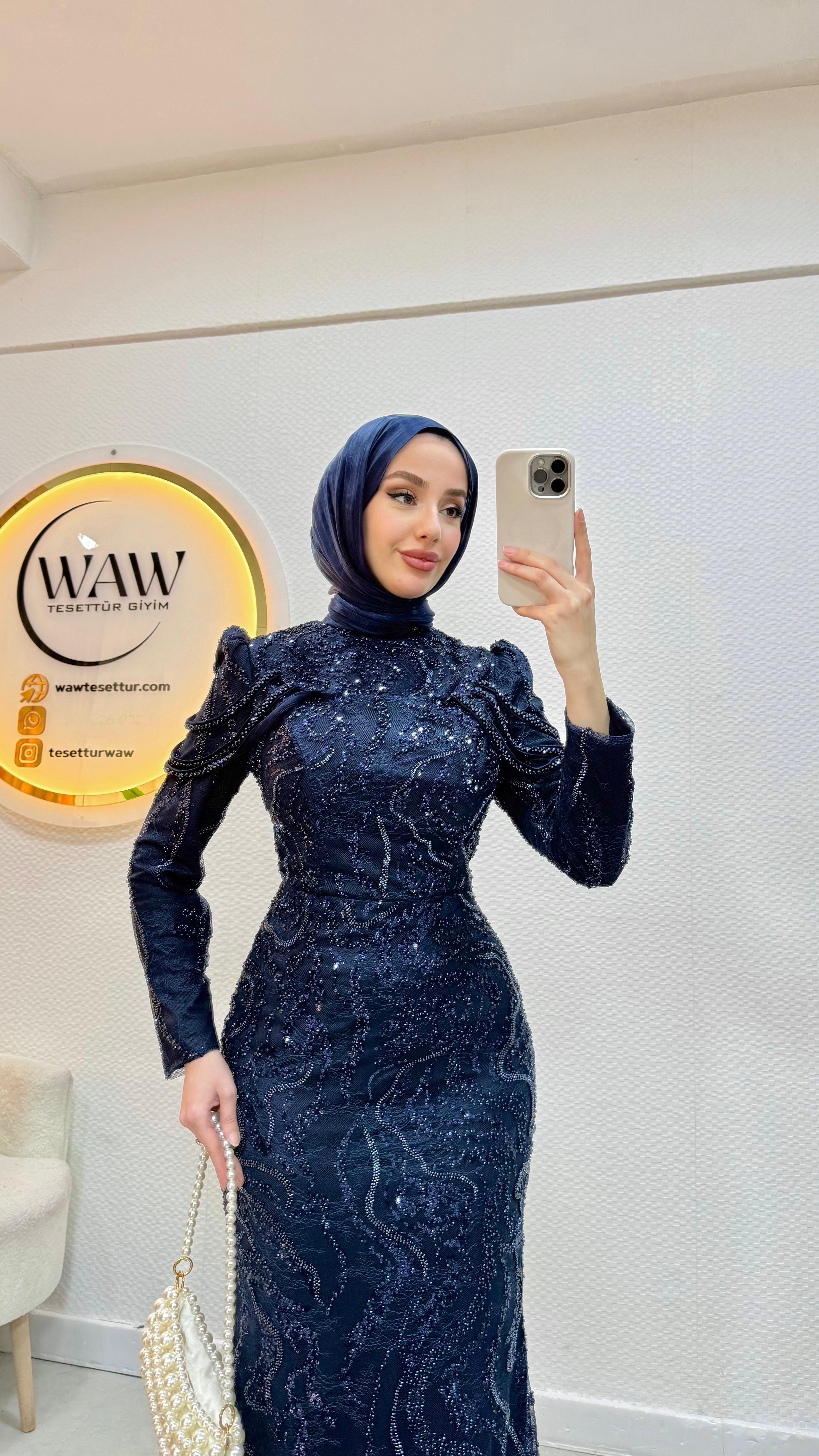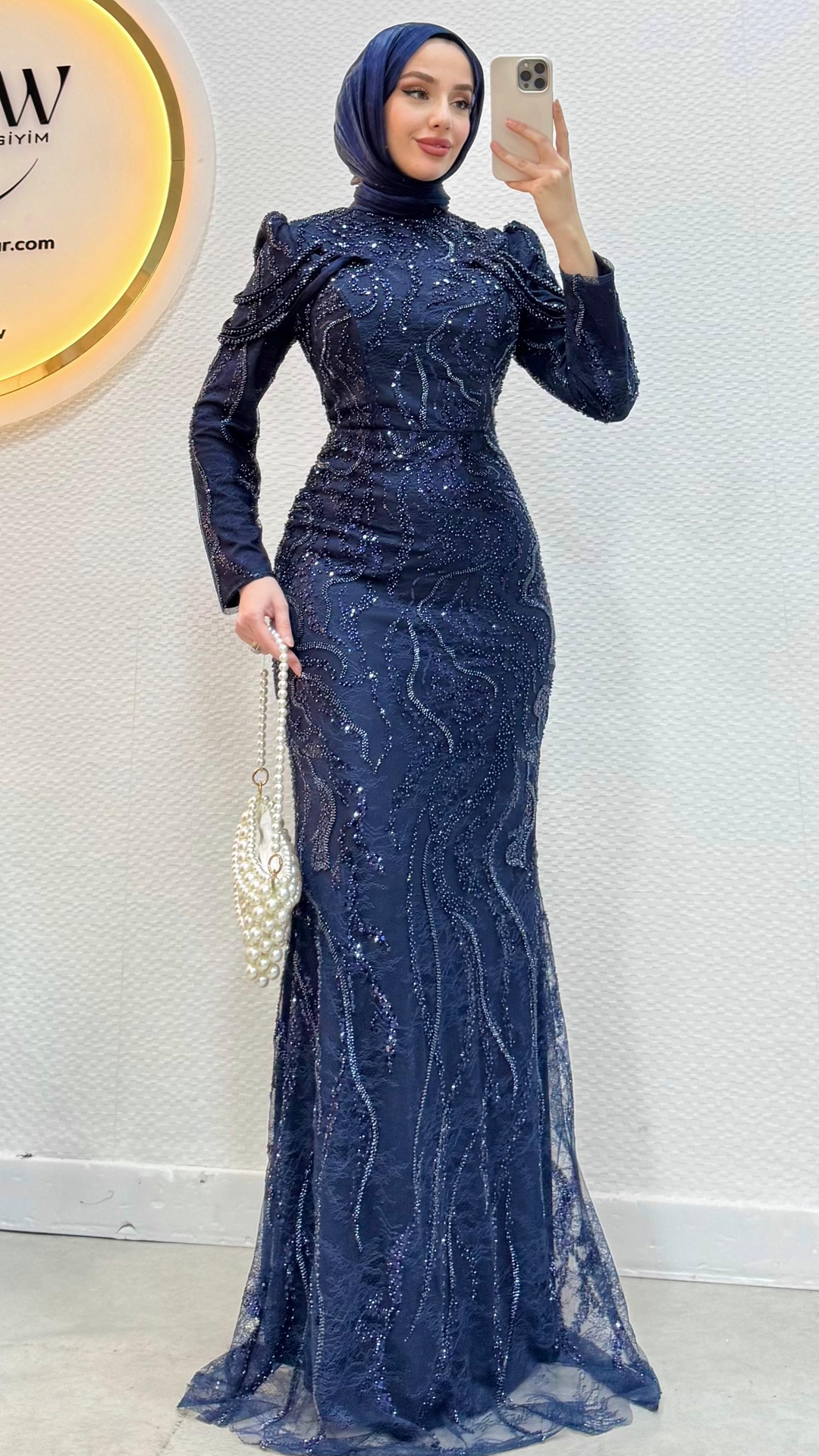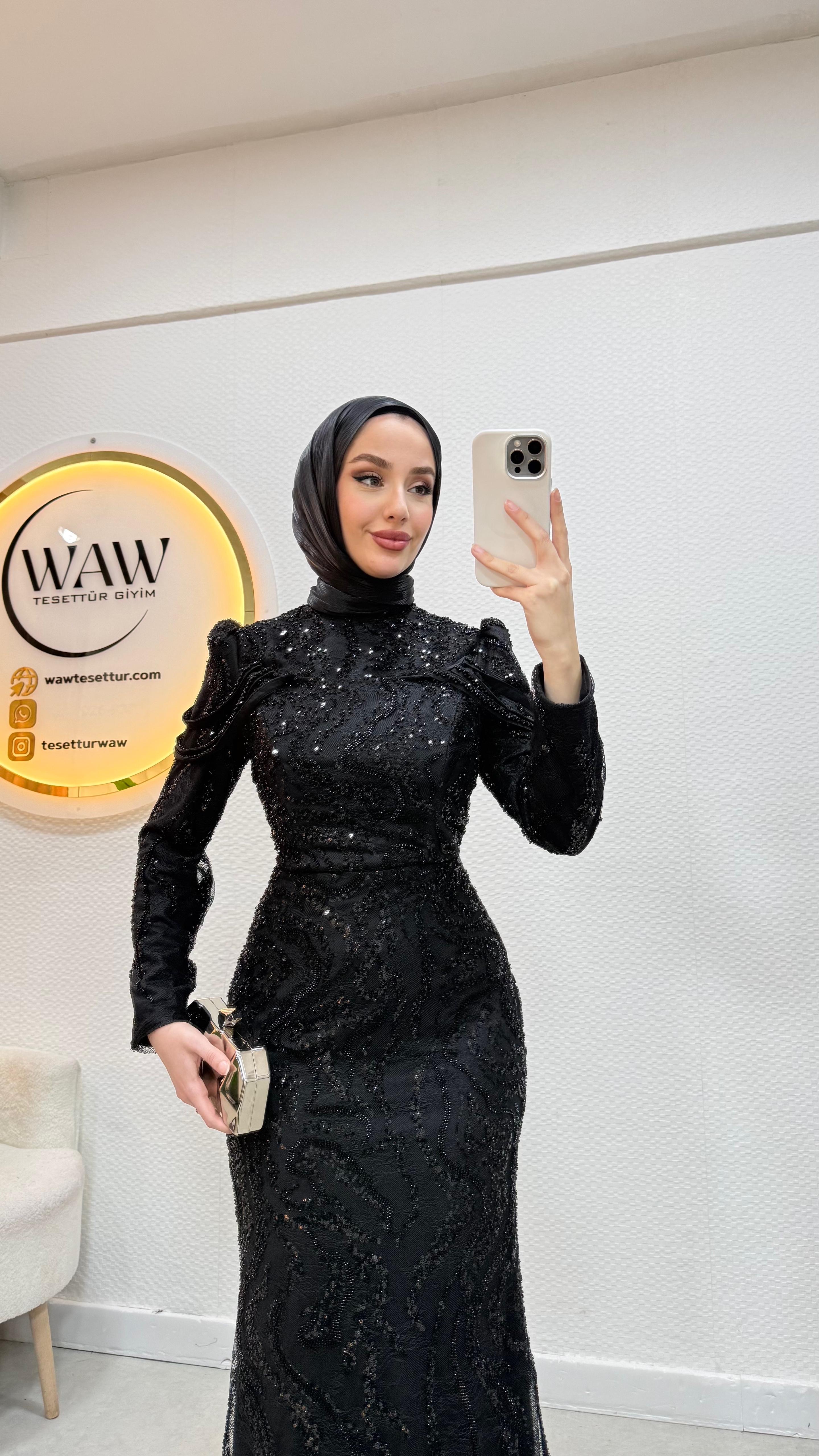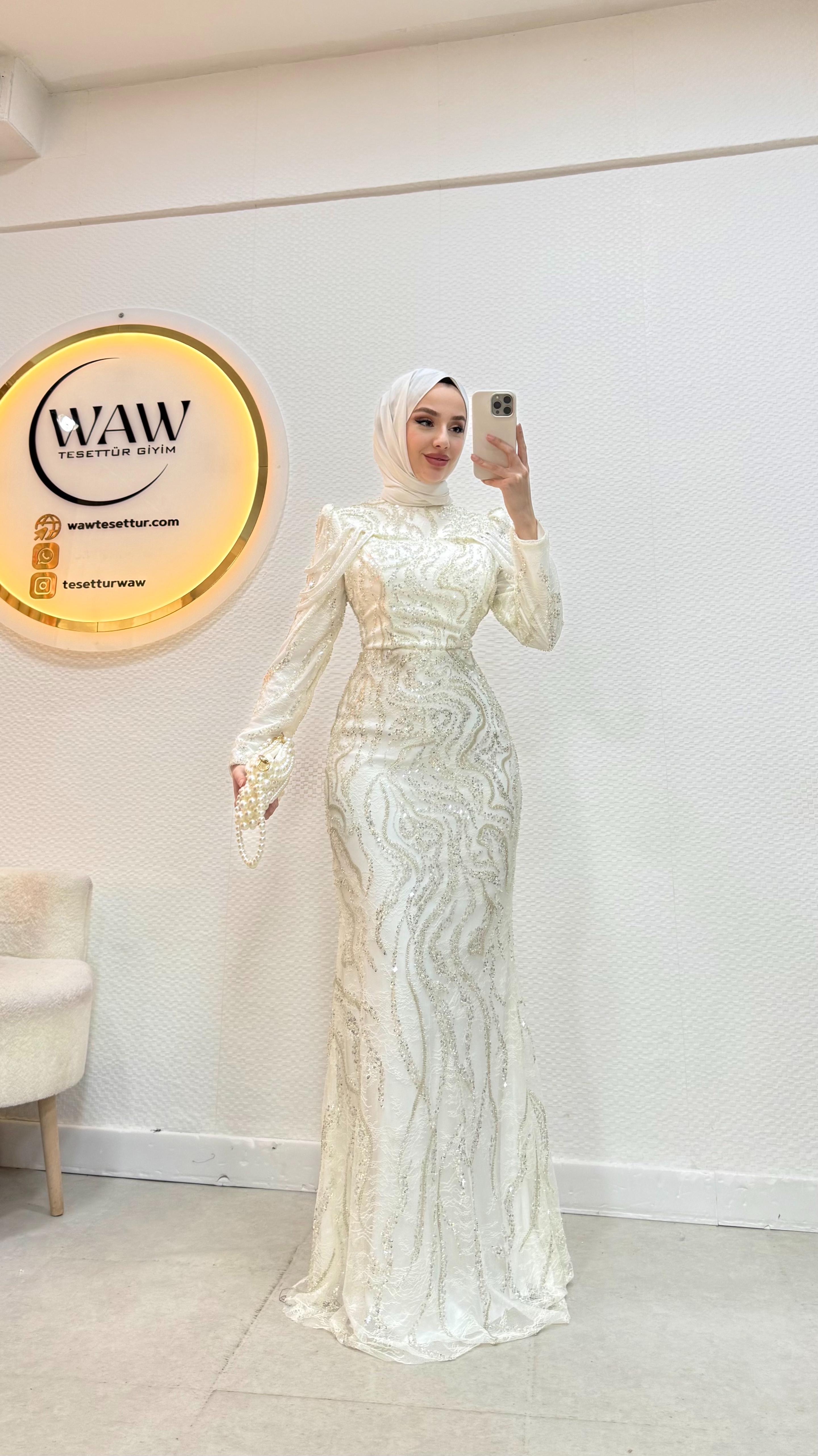 Taş işlemeli kumaştan üretilmiştir Tam kalıp Orta arka gizli fermuarlı Boy: 145 Bedenler 36/38/40/42/44/46 Manken 170/60kg 38 beden tercih etmektedir