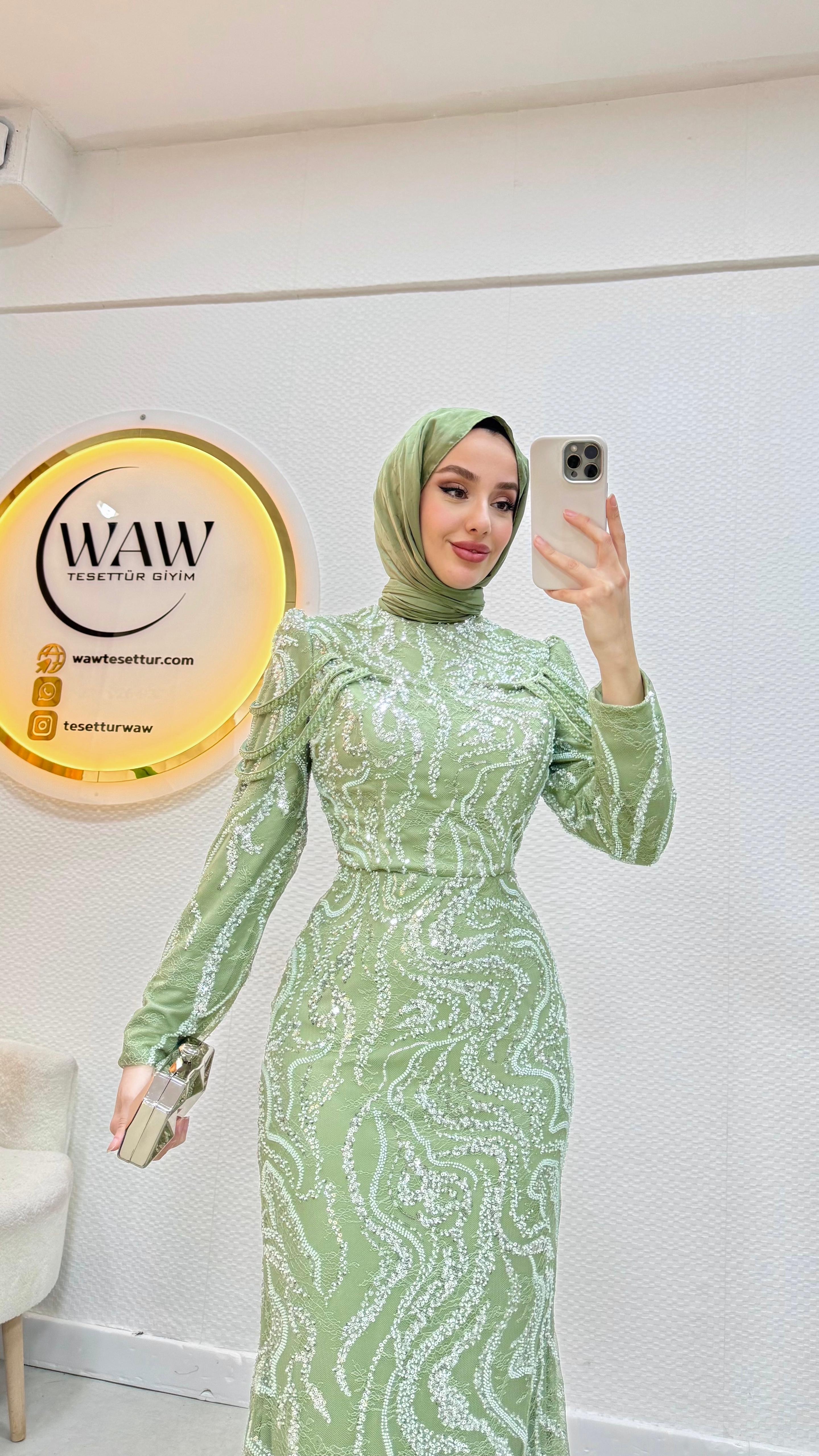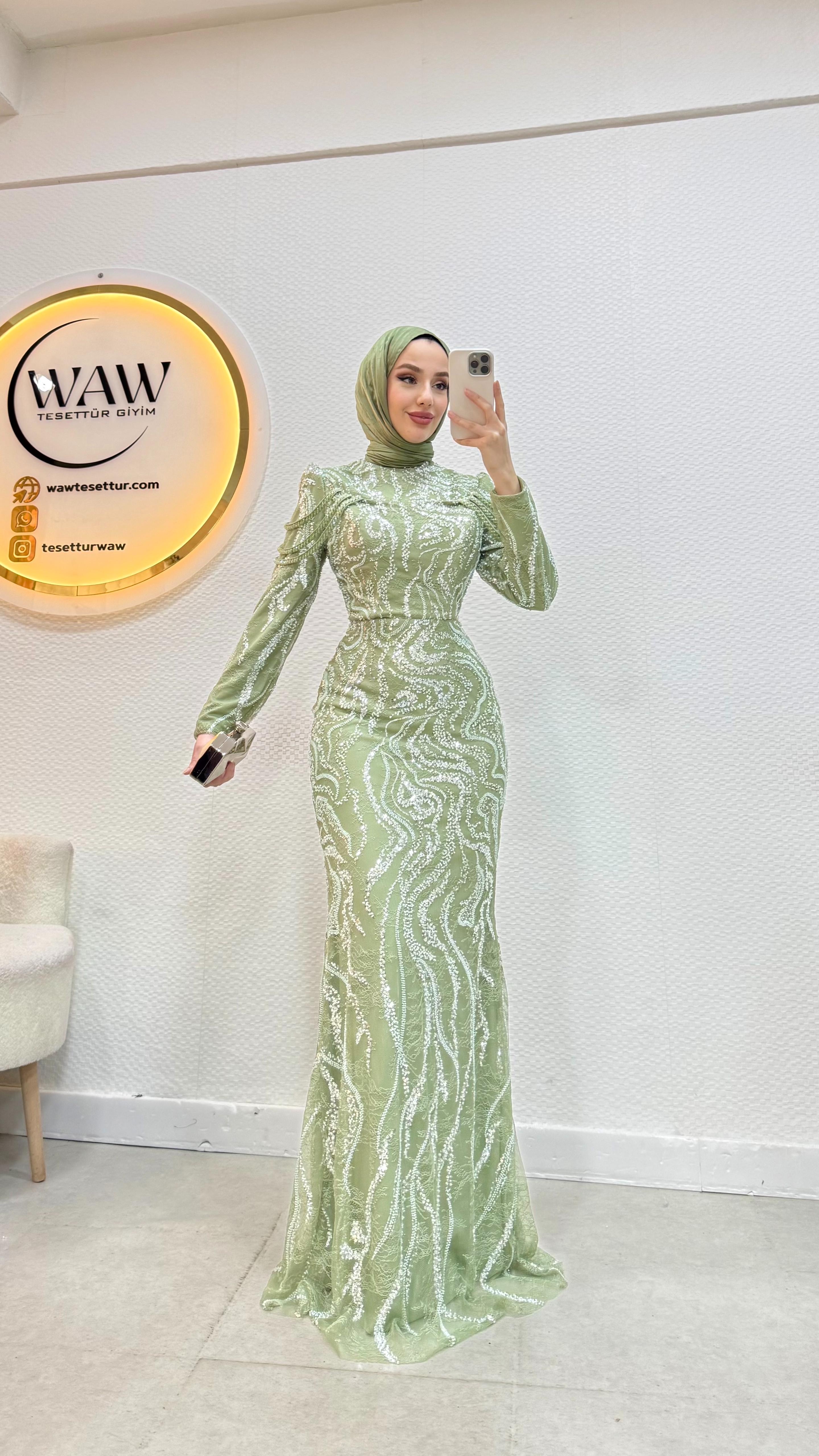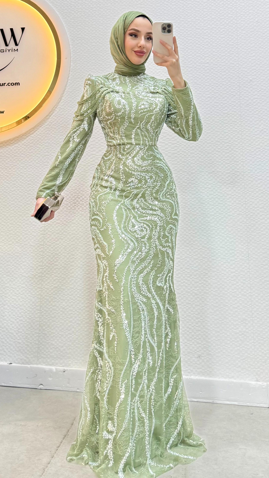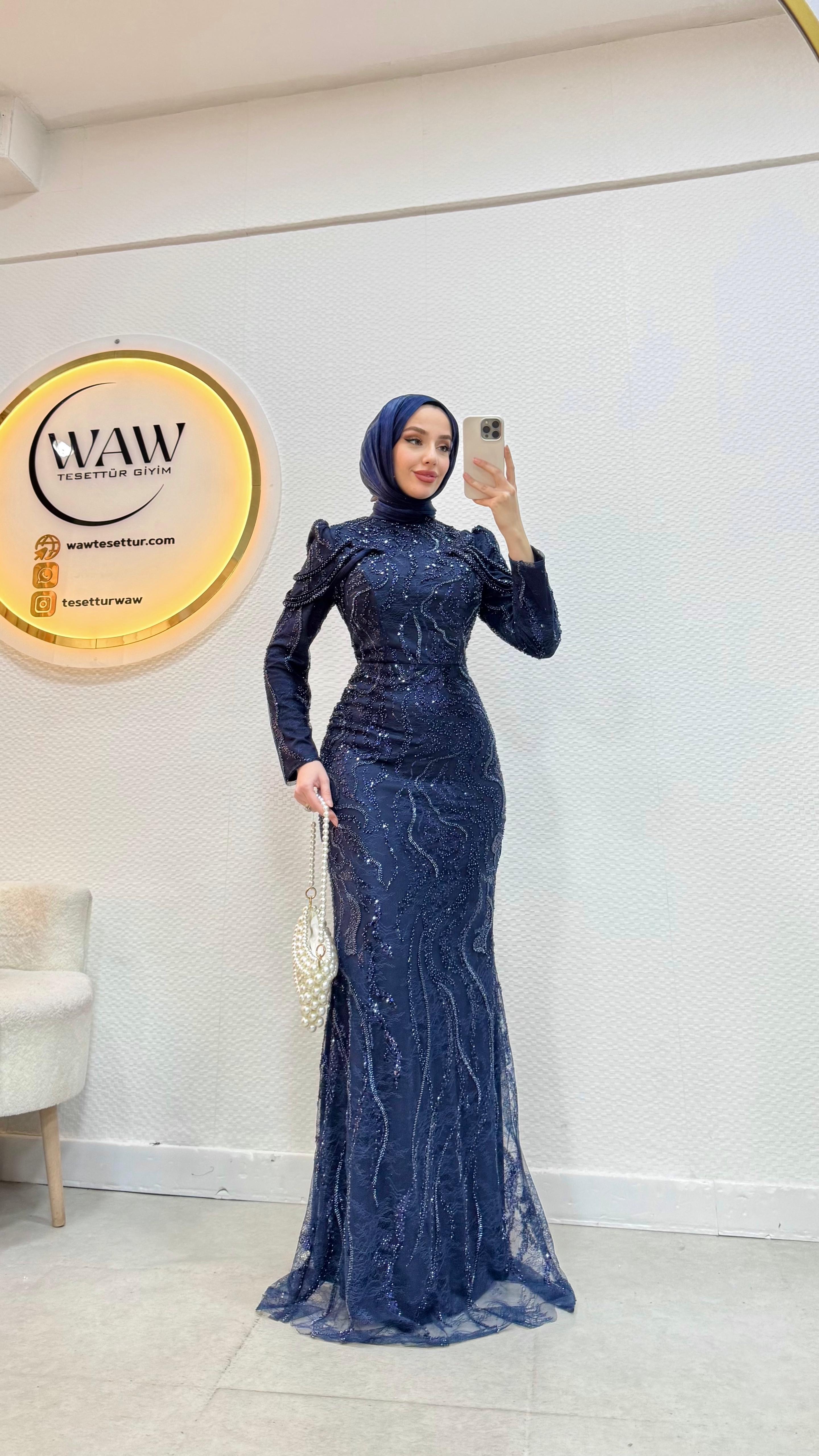 Taş işlemeli kumaştan üretilmiştir Tam kalıp Orta arka gizli fermuarlı Boy: 145 Bedenler 36/38/40/42/44/46 Manken 170/60kg 38 beden tercih etmektedir