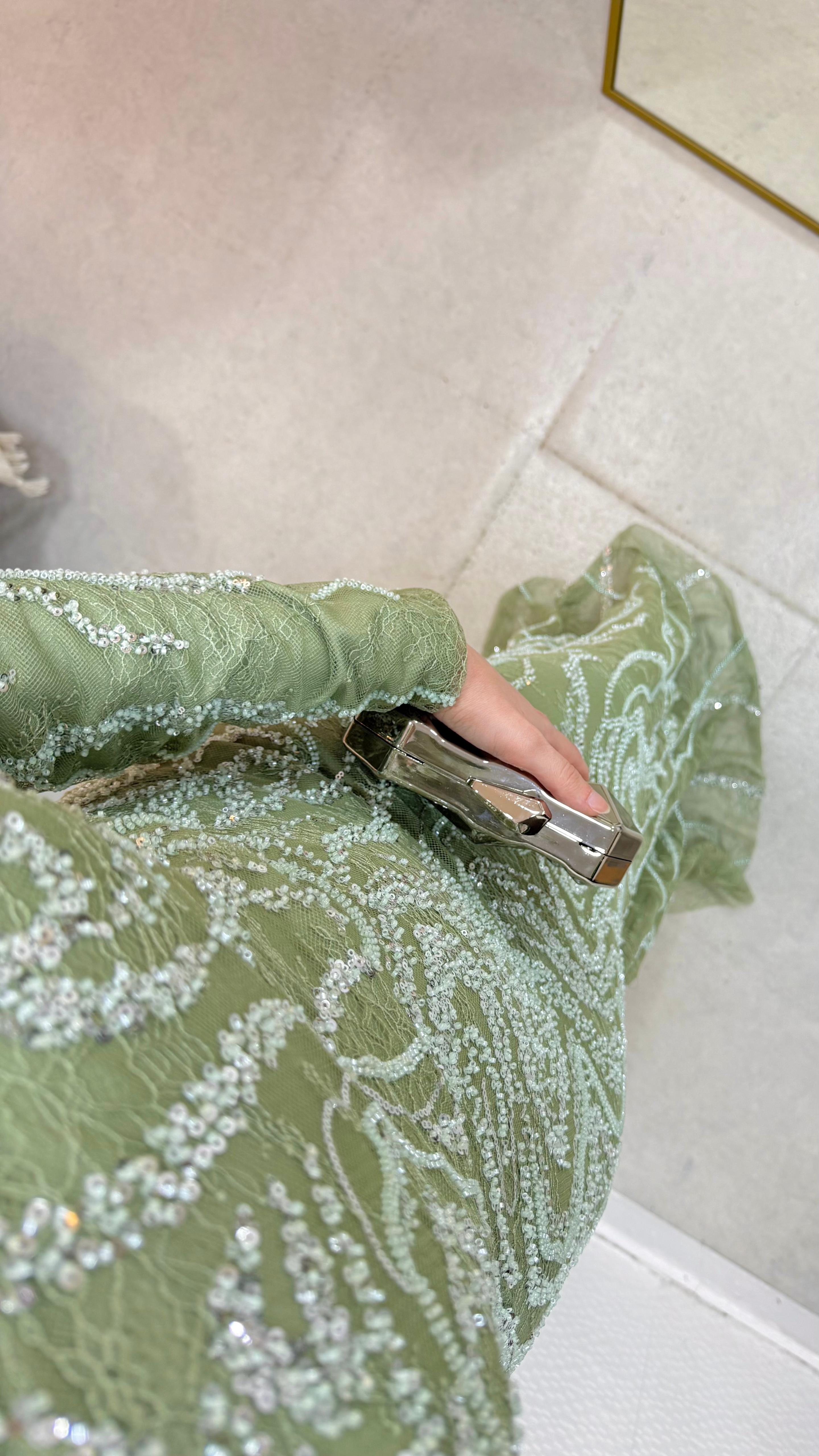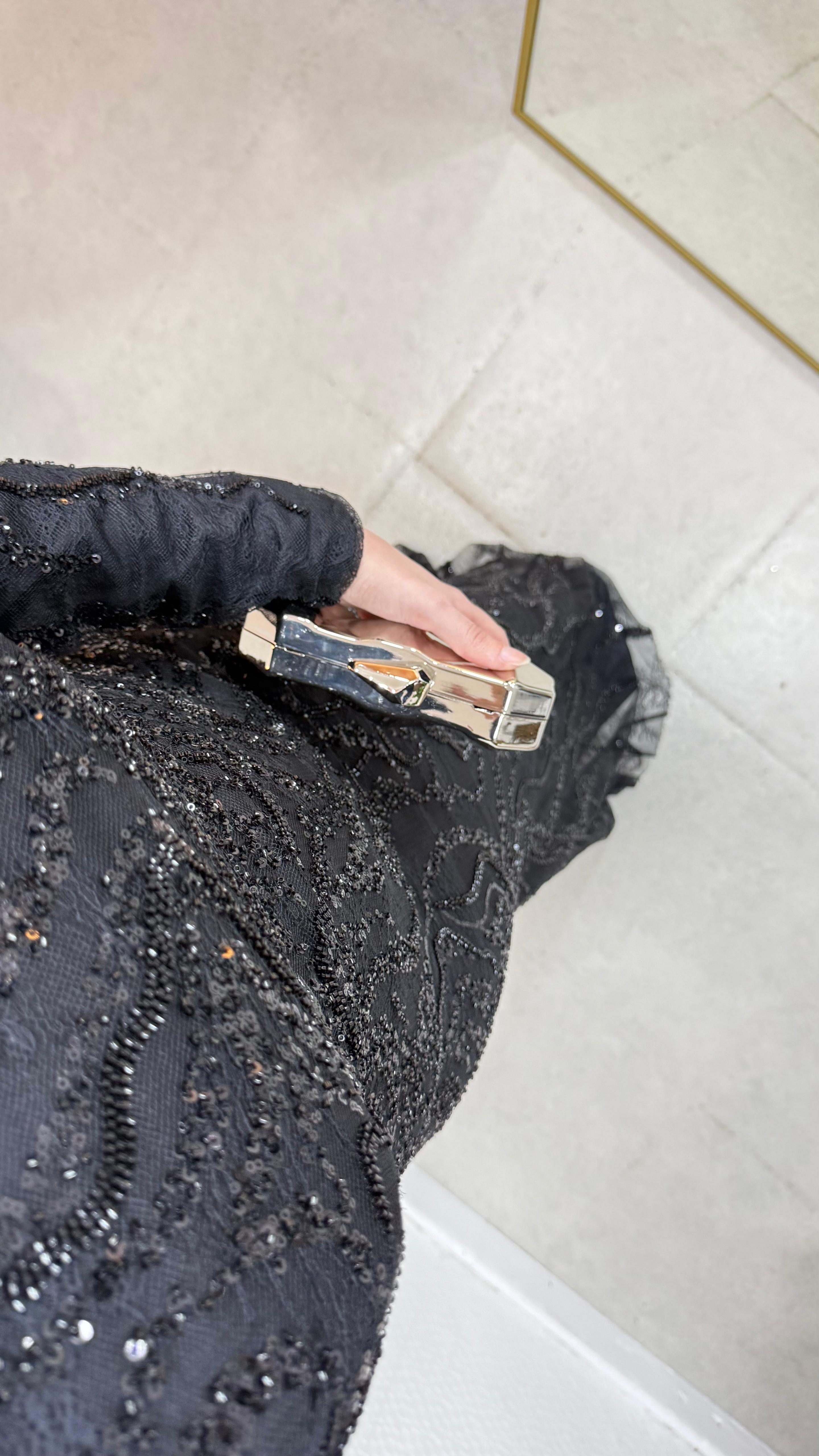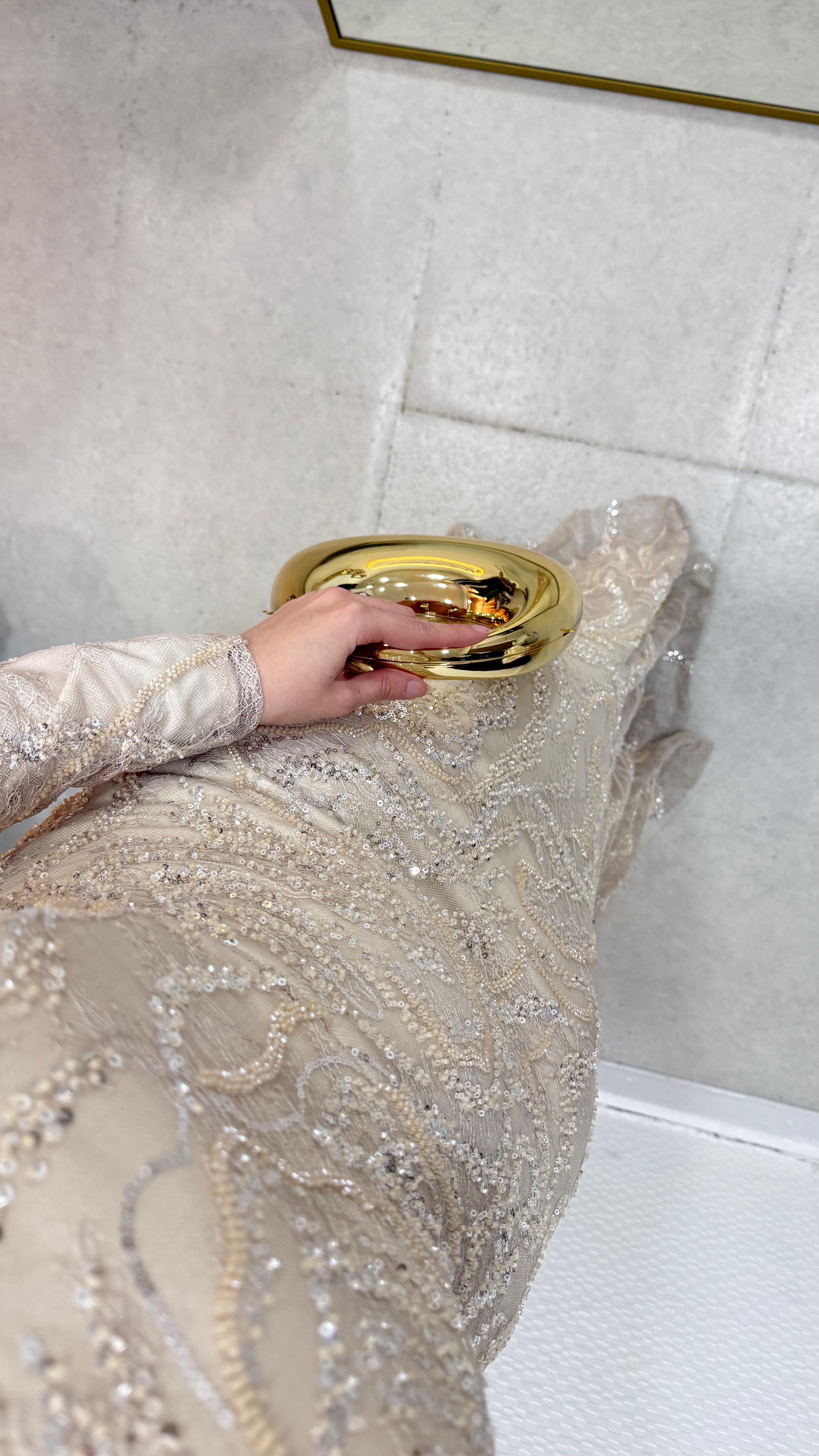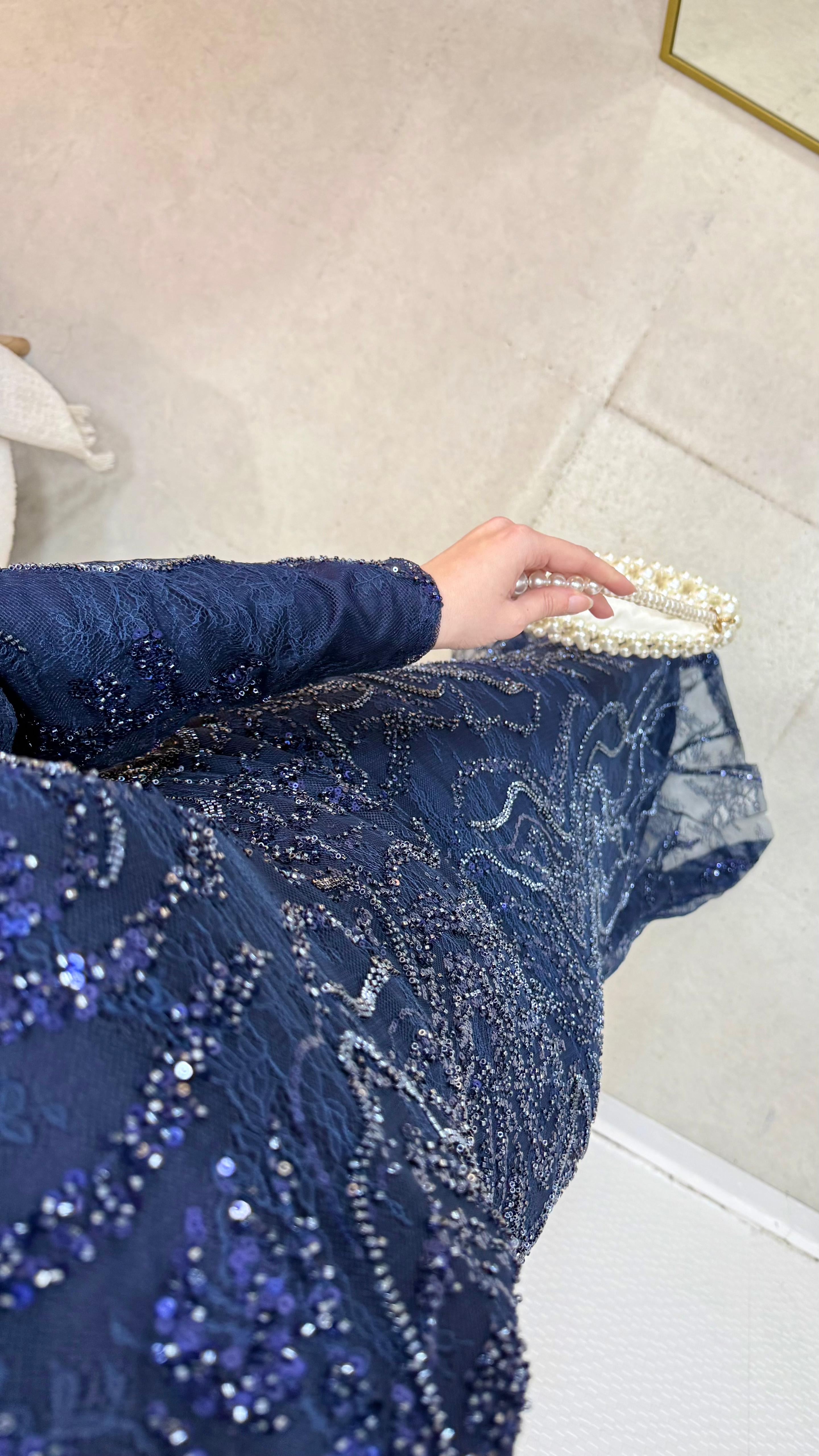 Taş işlemeli kumaştan üretilmiştir Tam kalıp Orta arka gizli fermuarlı Boy: 145 Bedenler 36/38/40/42/44/46 Manken 170/60kg 38 beden tercih etmektedir
