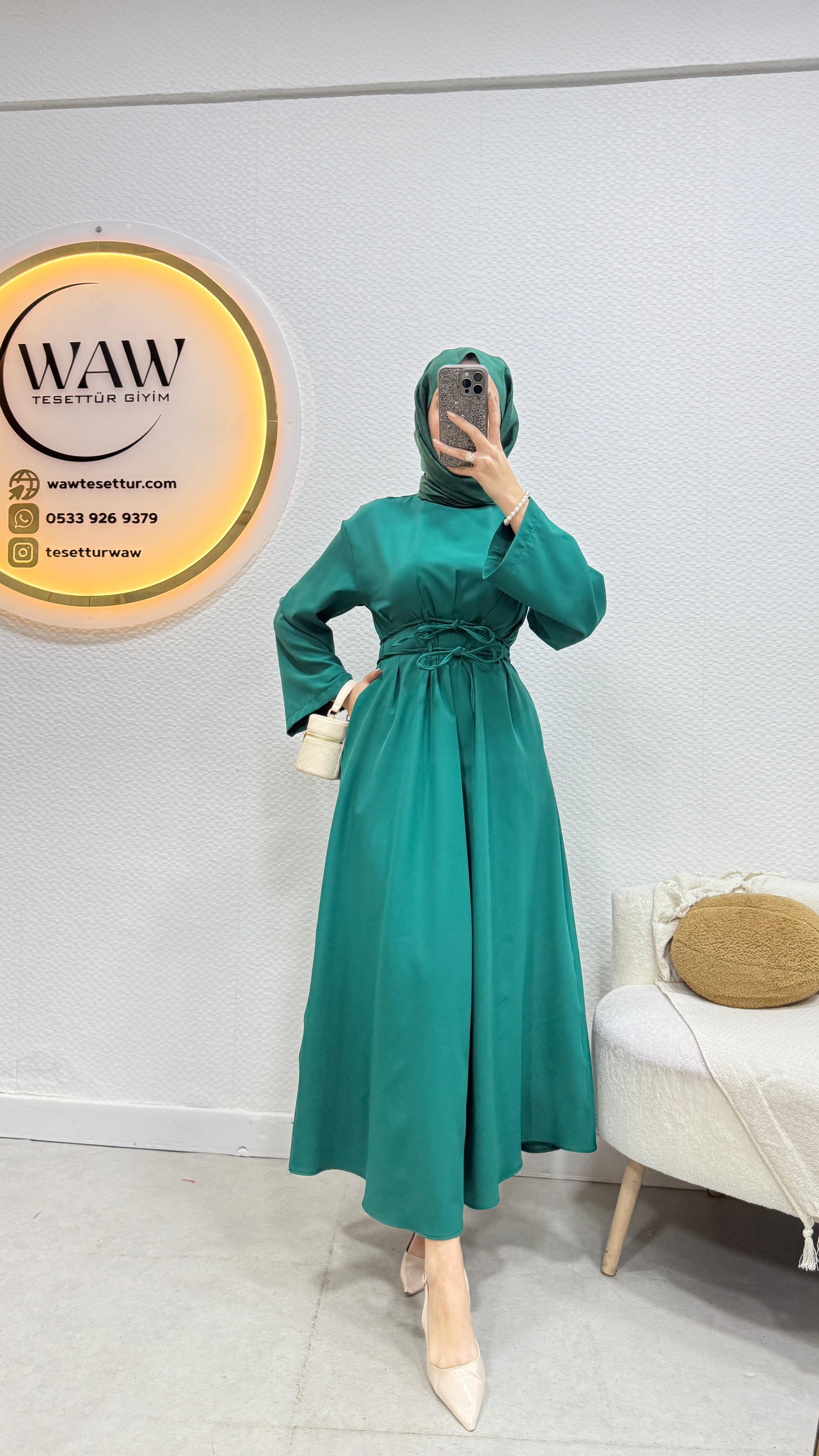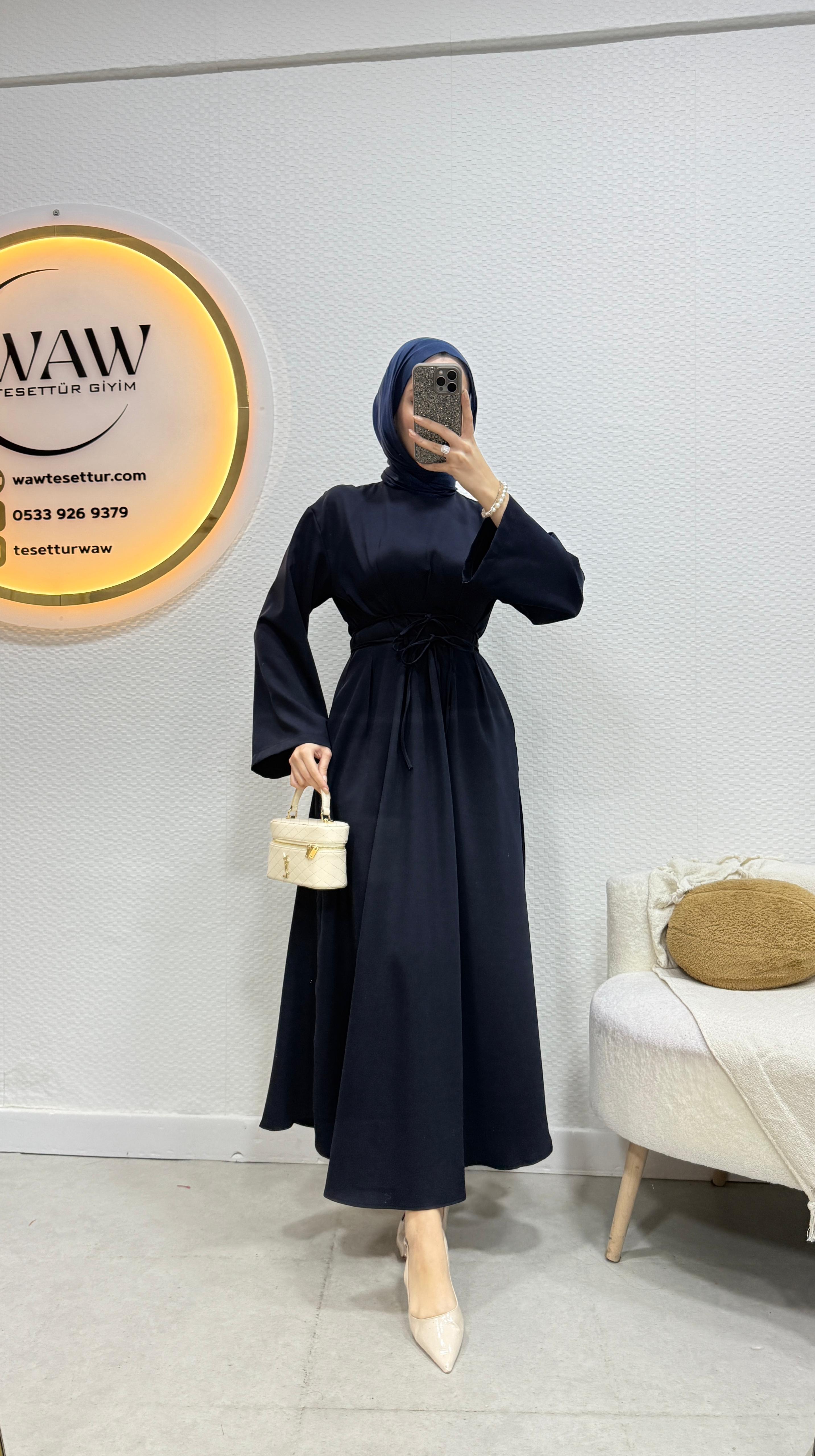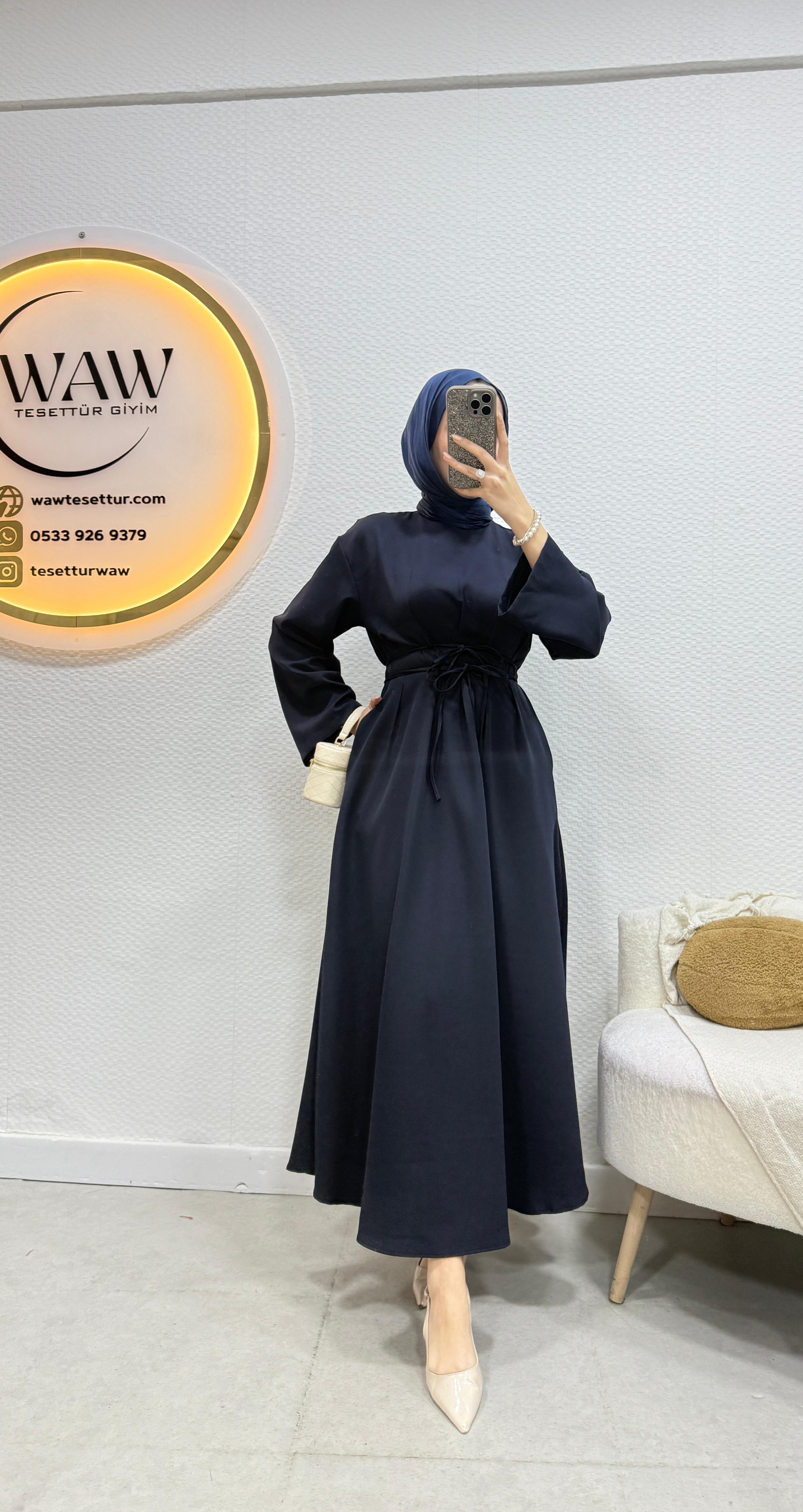 Gelince Haber VerÜrünümüz birinci kalite dabıl krep Kumaştan üretilmiştir.Bel bağlama detaylıdır.Kol İspanyol kesimdir .Kalem formdadır.Ürün boyu 135cm’dir.Ürünümüz tam kalıptır.Asimetrik kesimdir.36/38/40/42/44 bedenler mevcuttur.Manken 170/60kg 38 giymektedir.